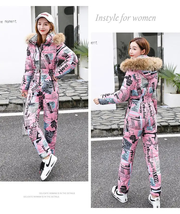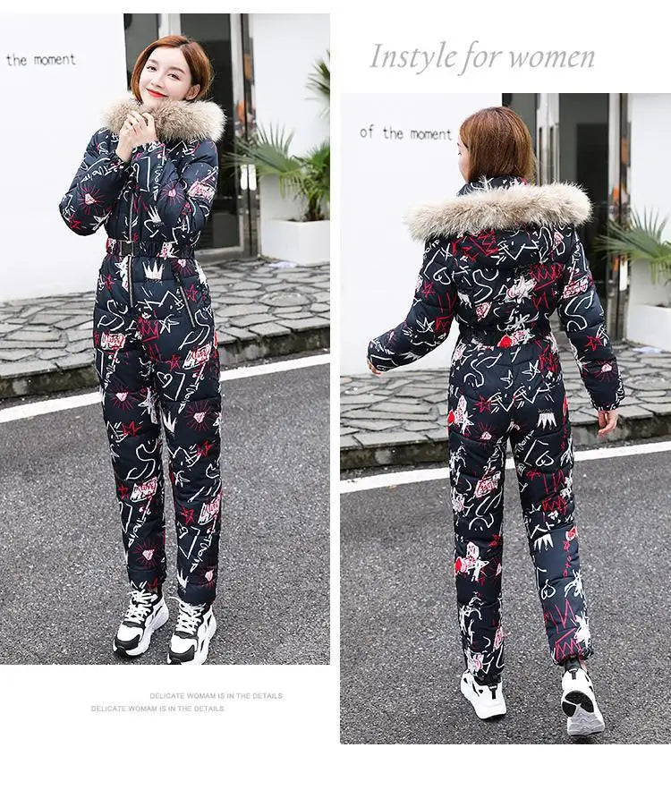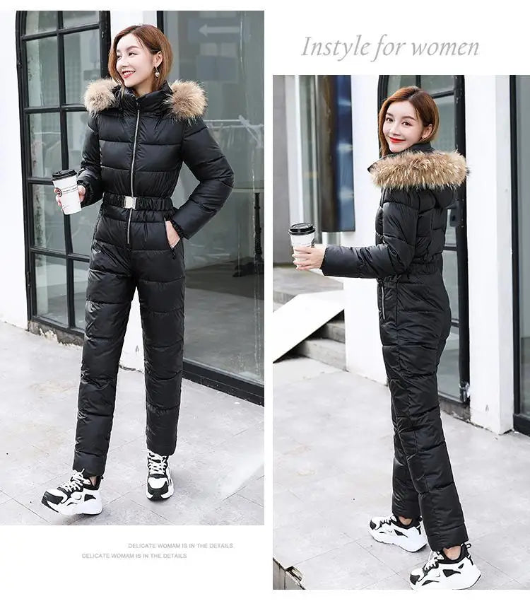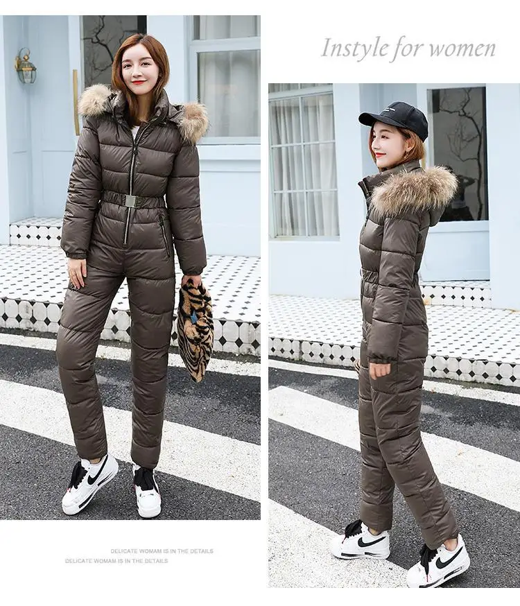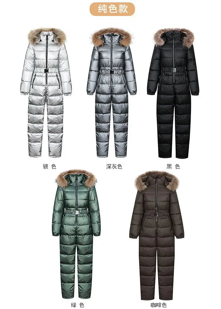 2025 Winter New Women Cotton Jumpsuit Women Thick Warm Slimming Bright Padded Coat And Pants Two-Piece En...