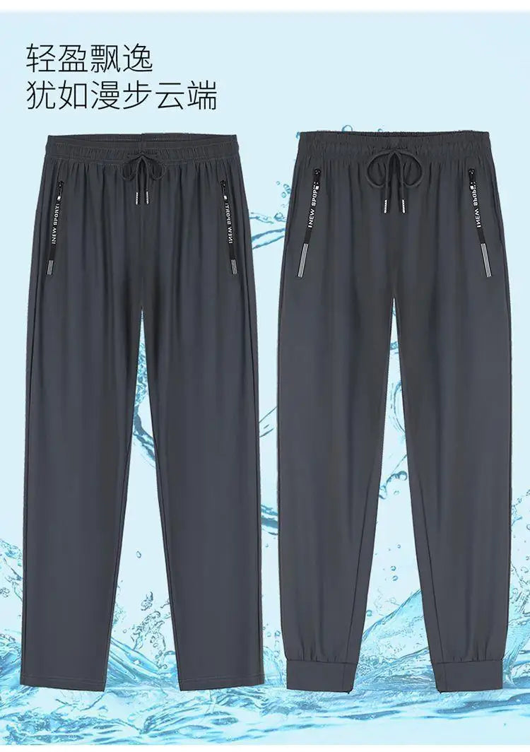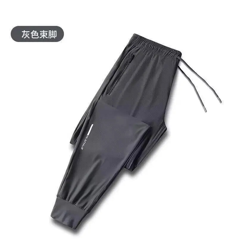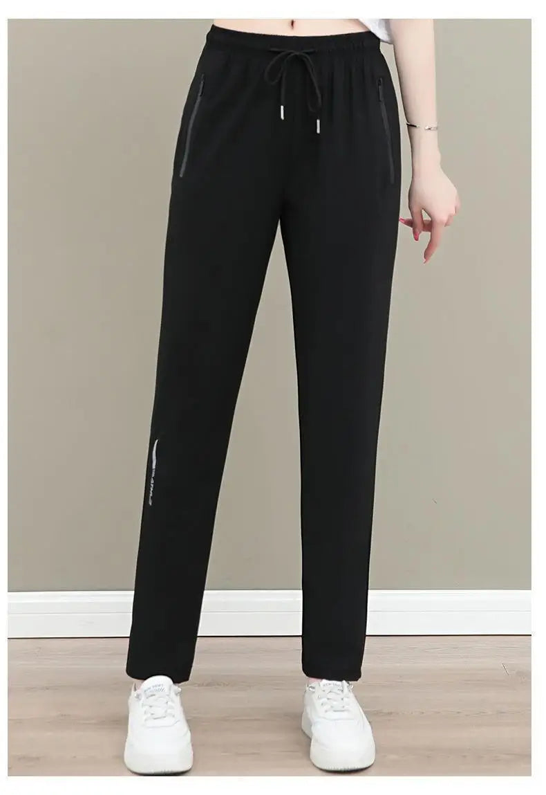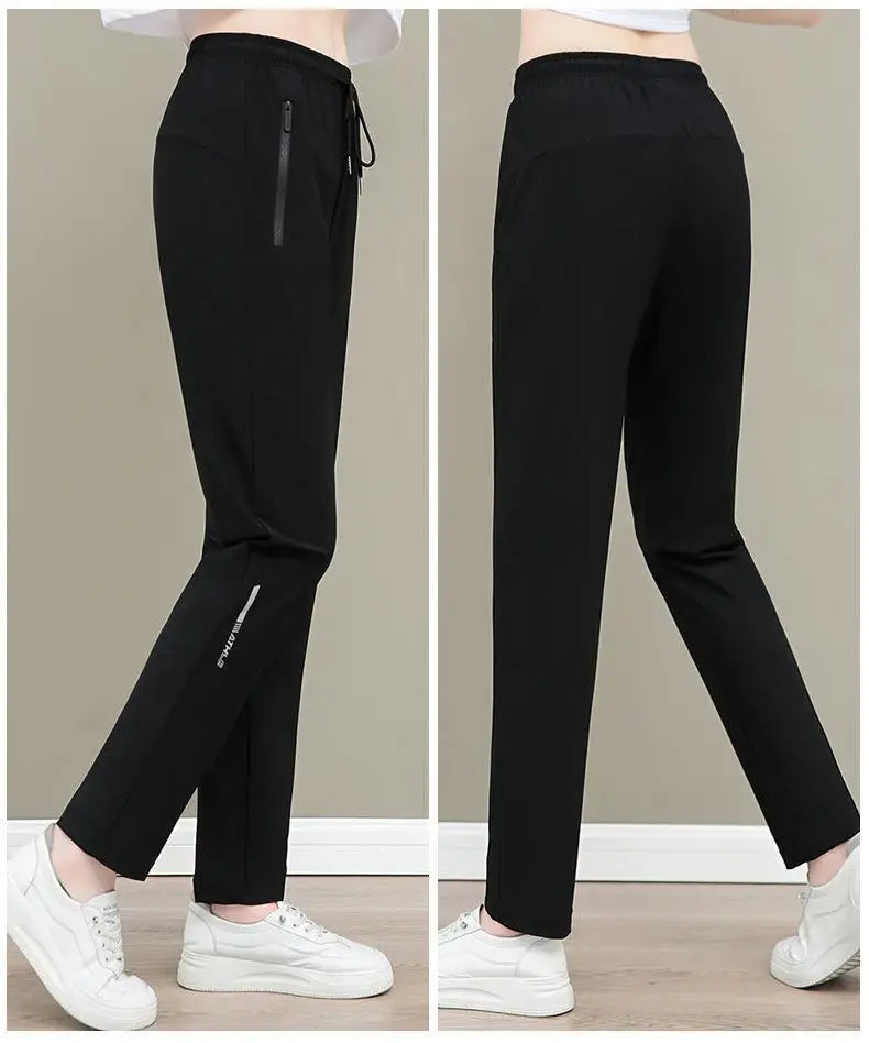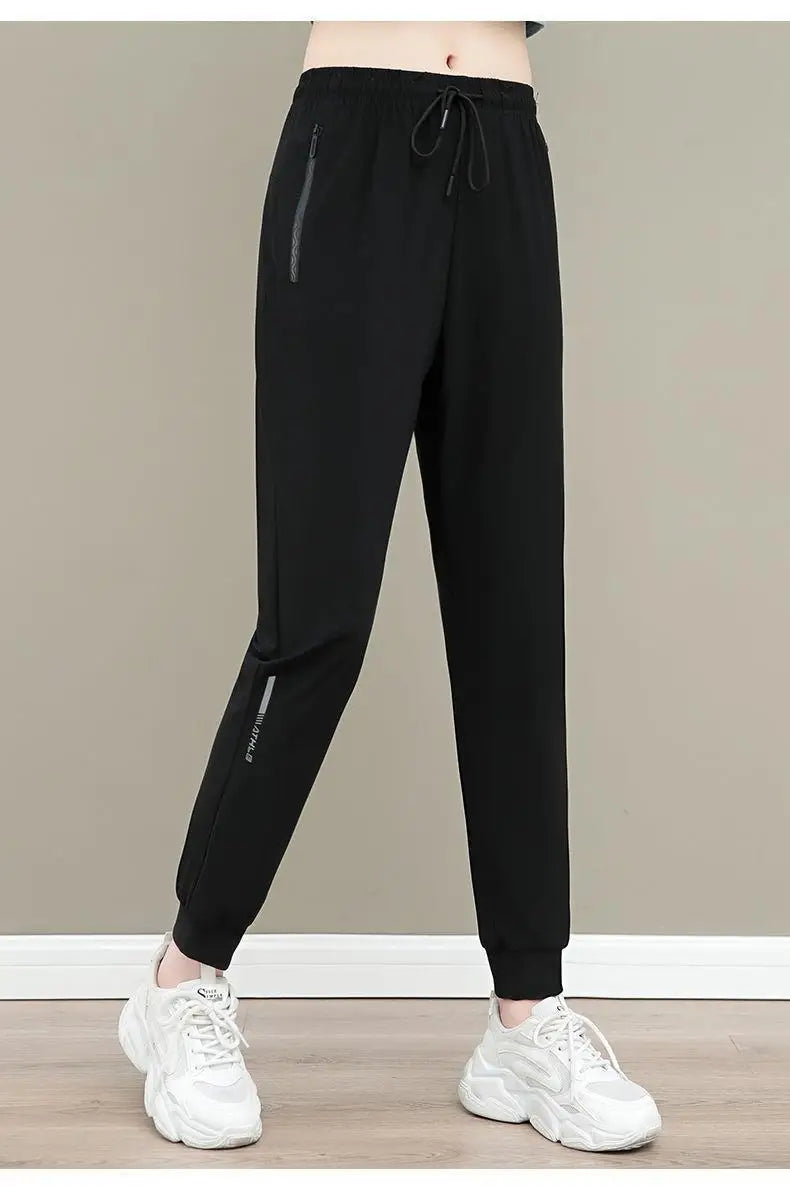 Women's Spring Summer Thin Ice Silk Pants Comfortable Breathable Casual Elastic Beam Feet Pants Slim Spor...