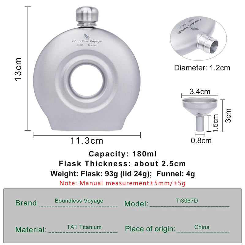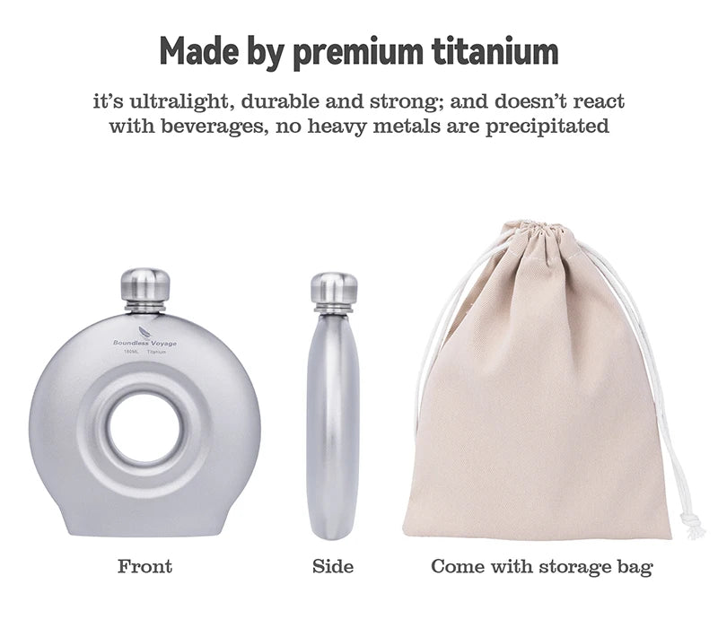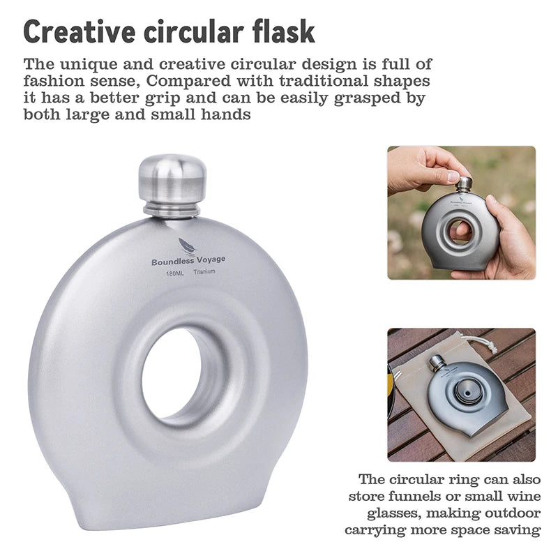 180ml Titanium Hip Flask Unique Round Special Shaped Liquor Flask for Men & W...