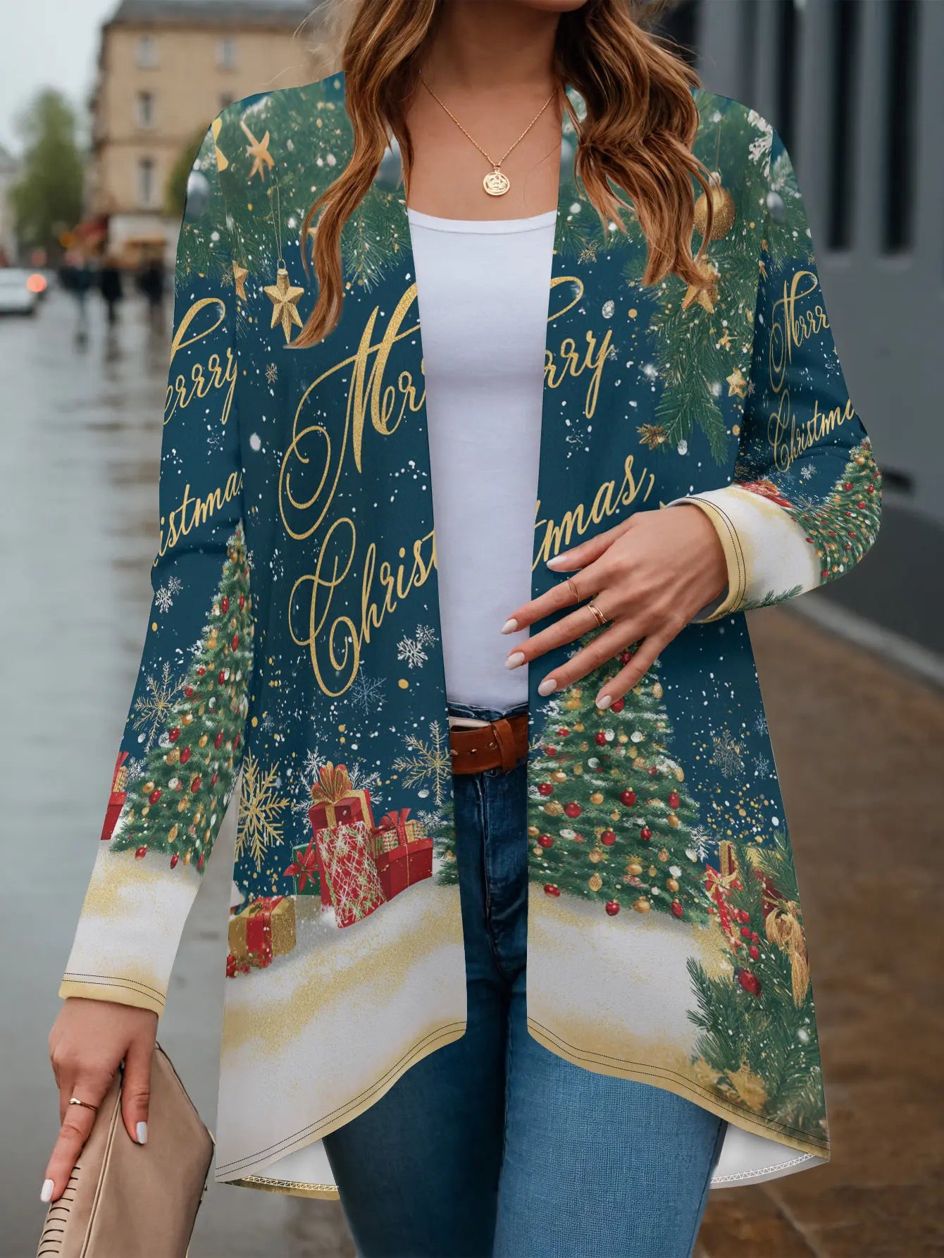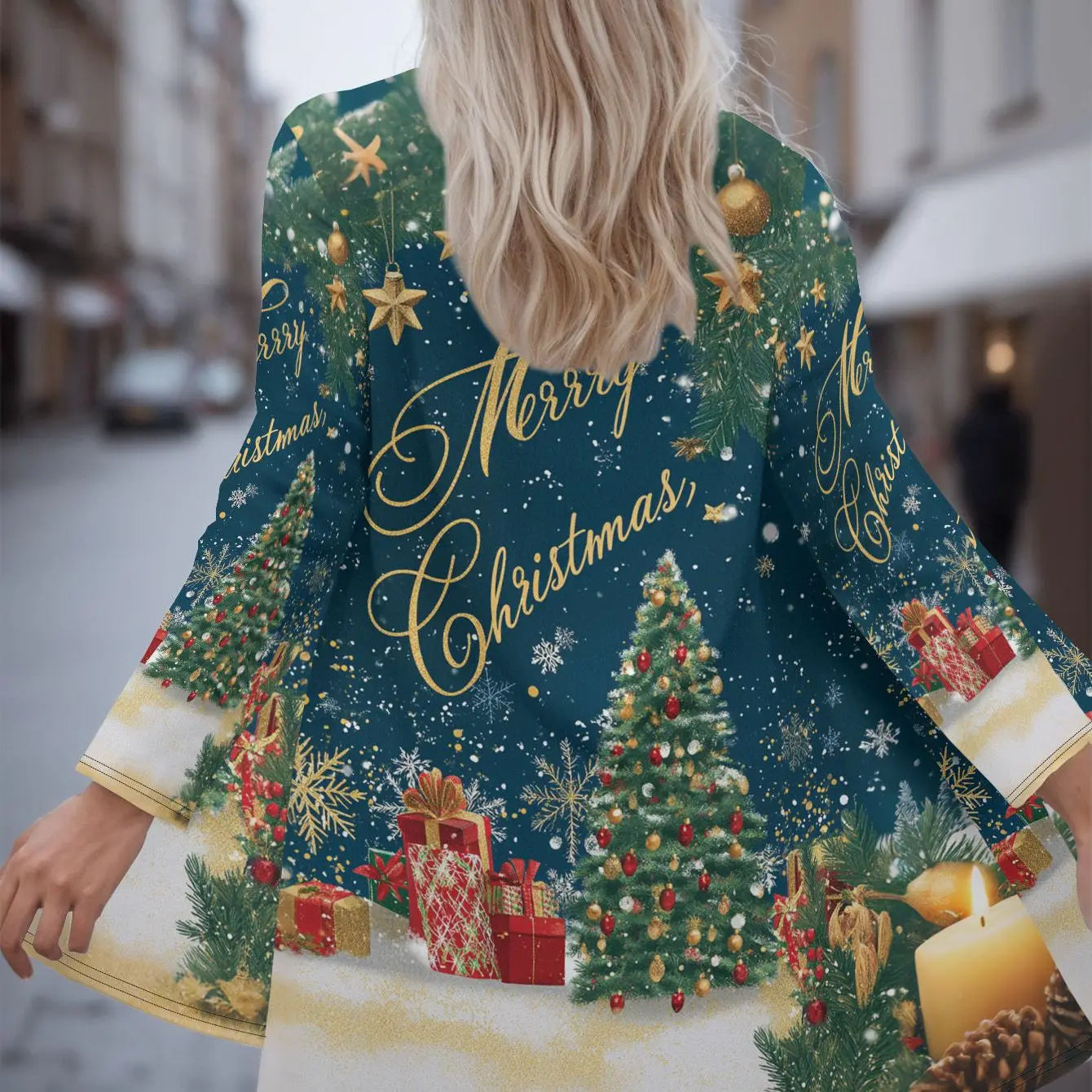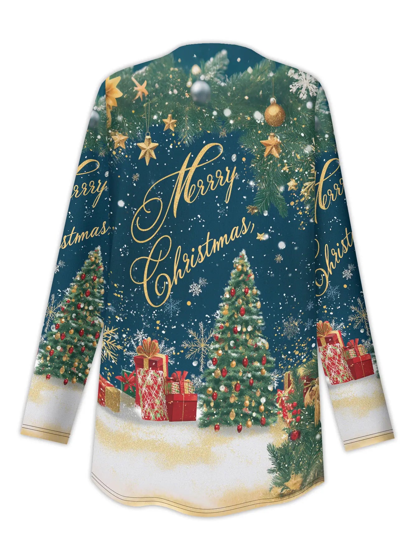 Christmas Theme Women s Christmas Tree Cardigan, 3D Print Long Sleeve, Lightw...