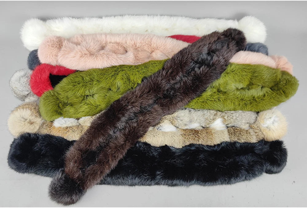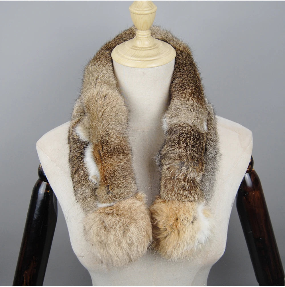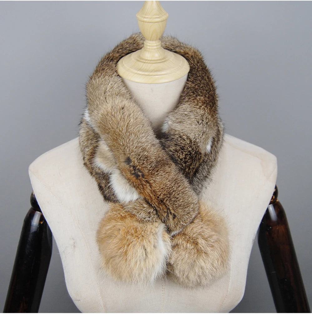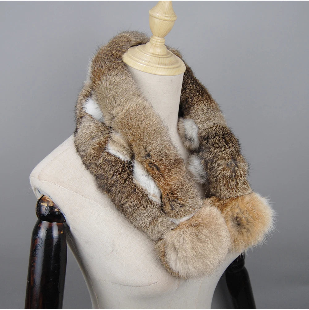 Girls Warm Real Rabbit Fur Scarf Handmade Fur Scarf Lady Real Rabbit Fur Scar...