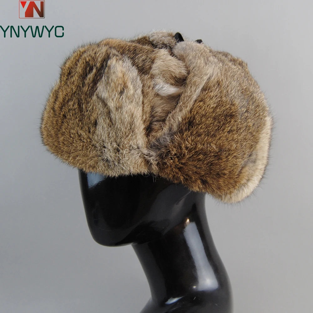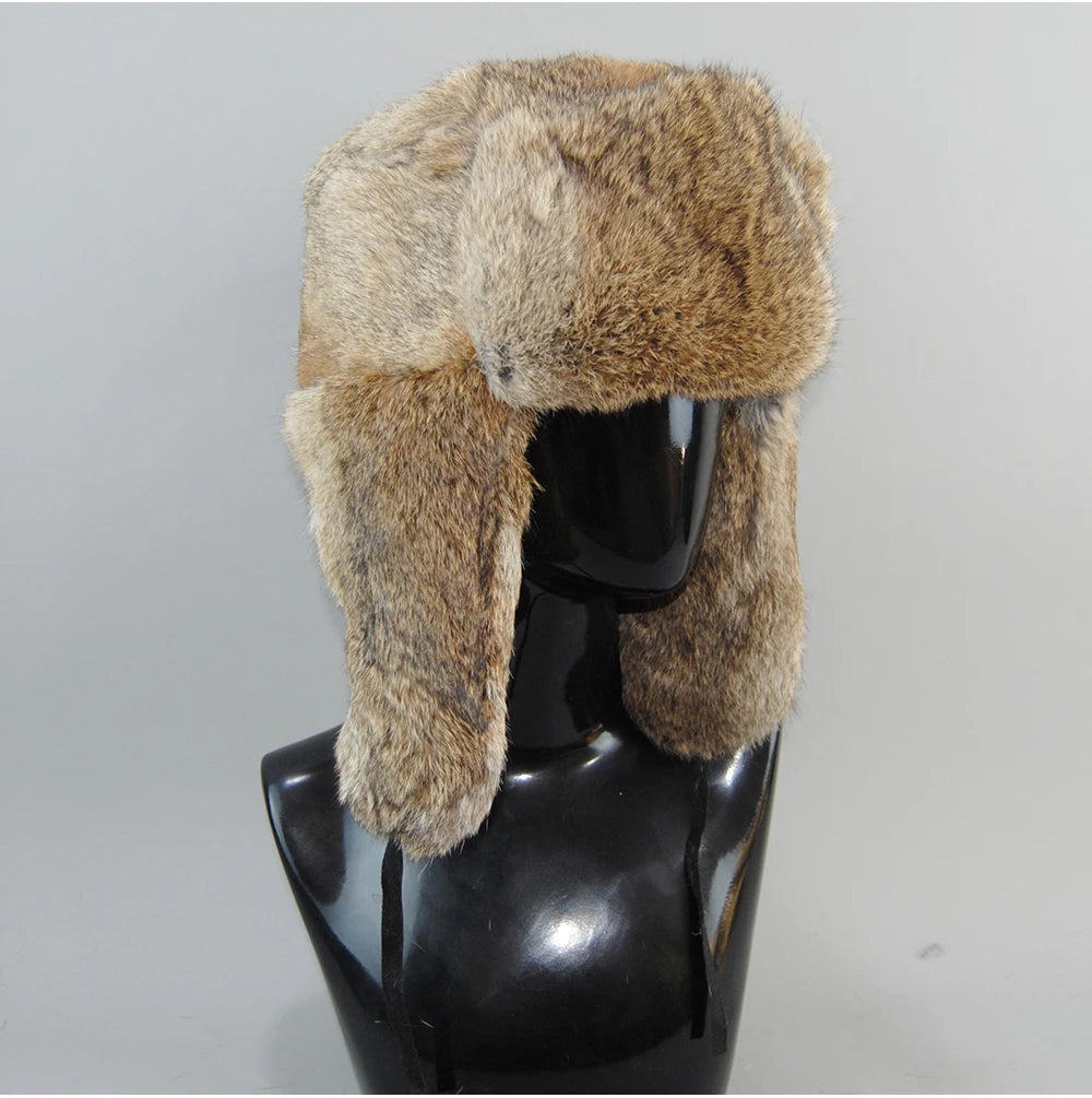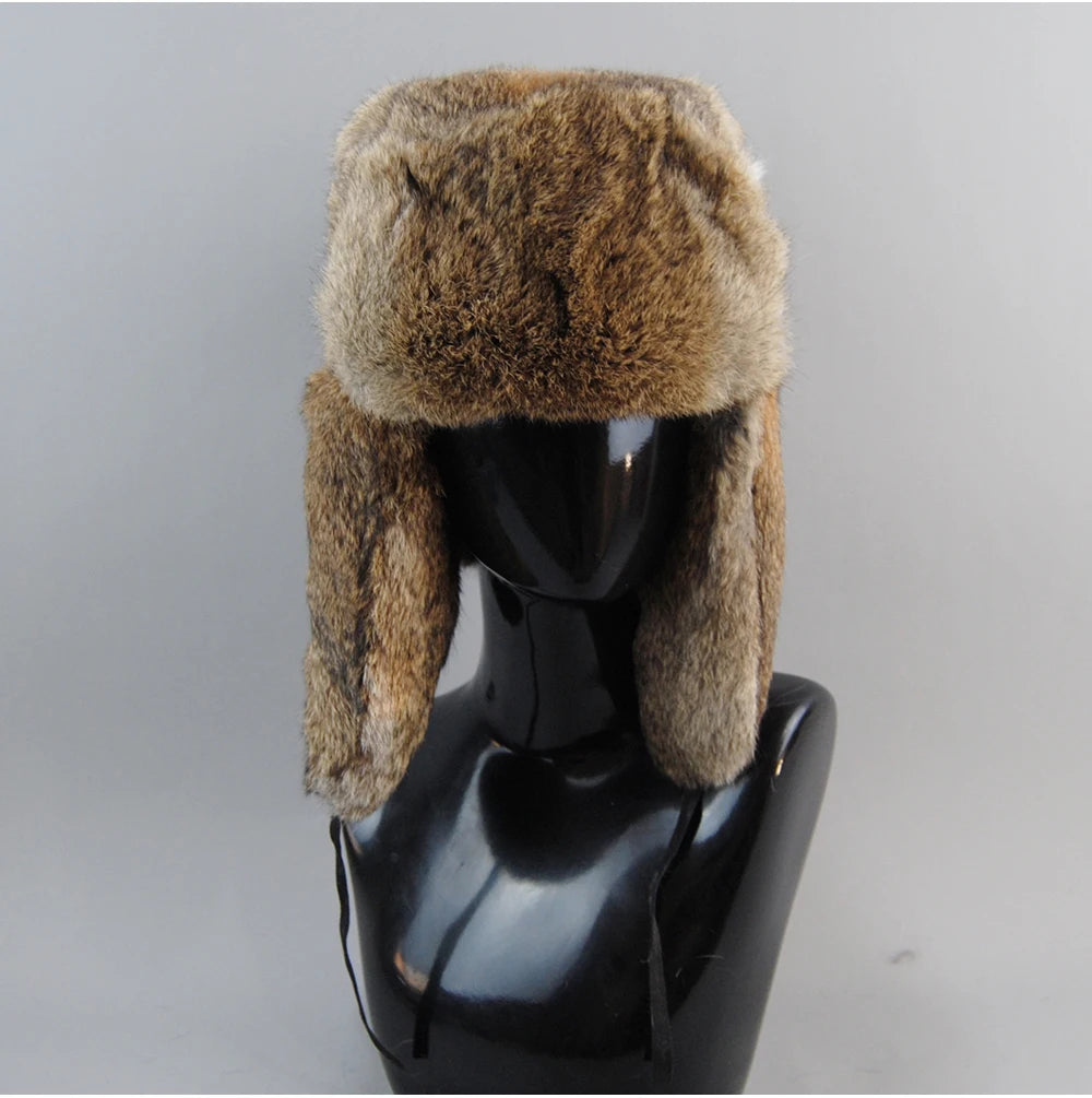 Sell Male Winter Outdoor Real Rabbit Fur Bomber Hat Men Warm Fluffy 100 Natur...