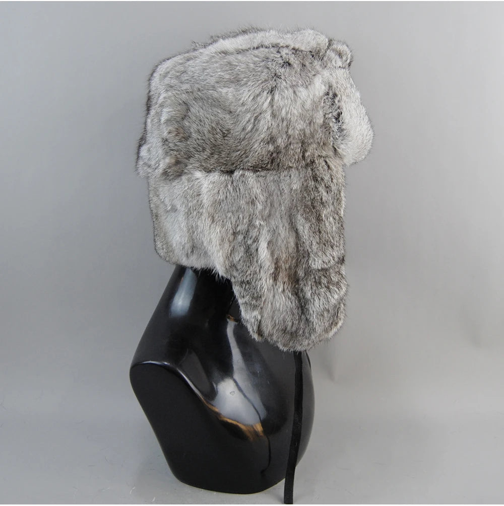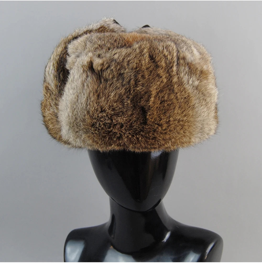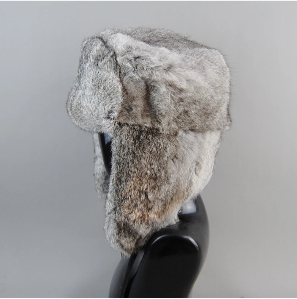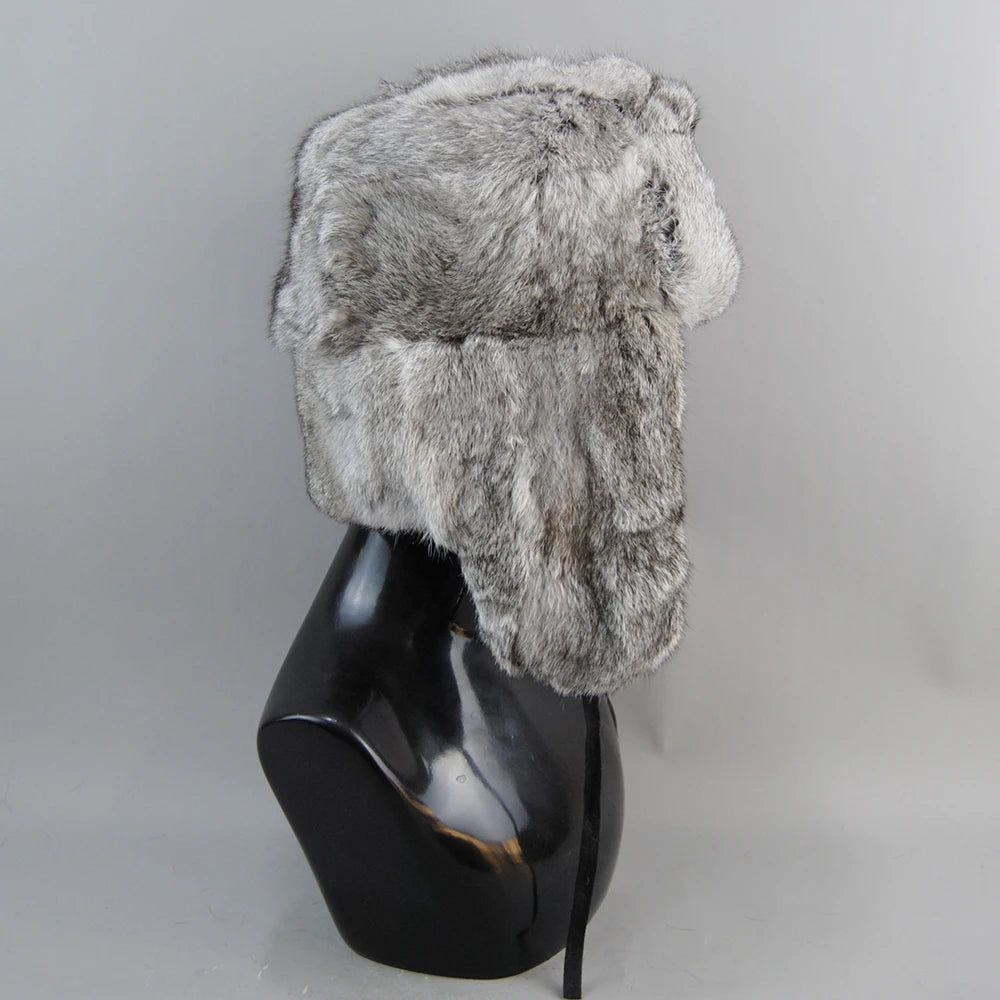 Sell Male Winter Outdoor Real Rabbit Fur Bomber Hat Men Warm Fluffy 100 Natur...