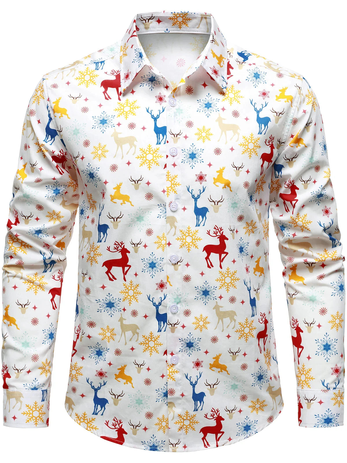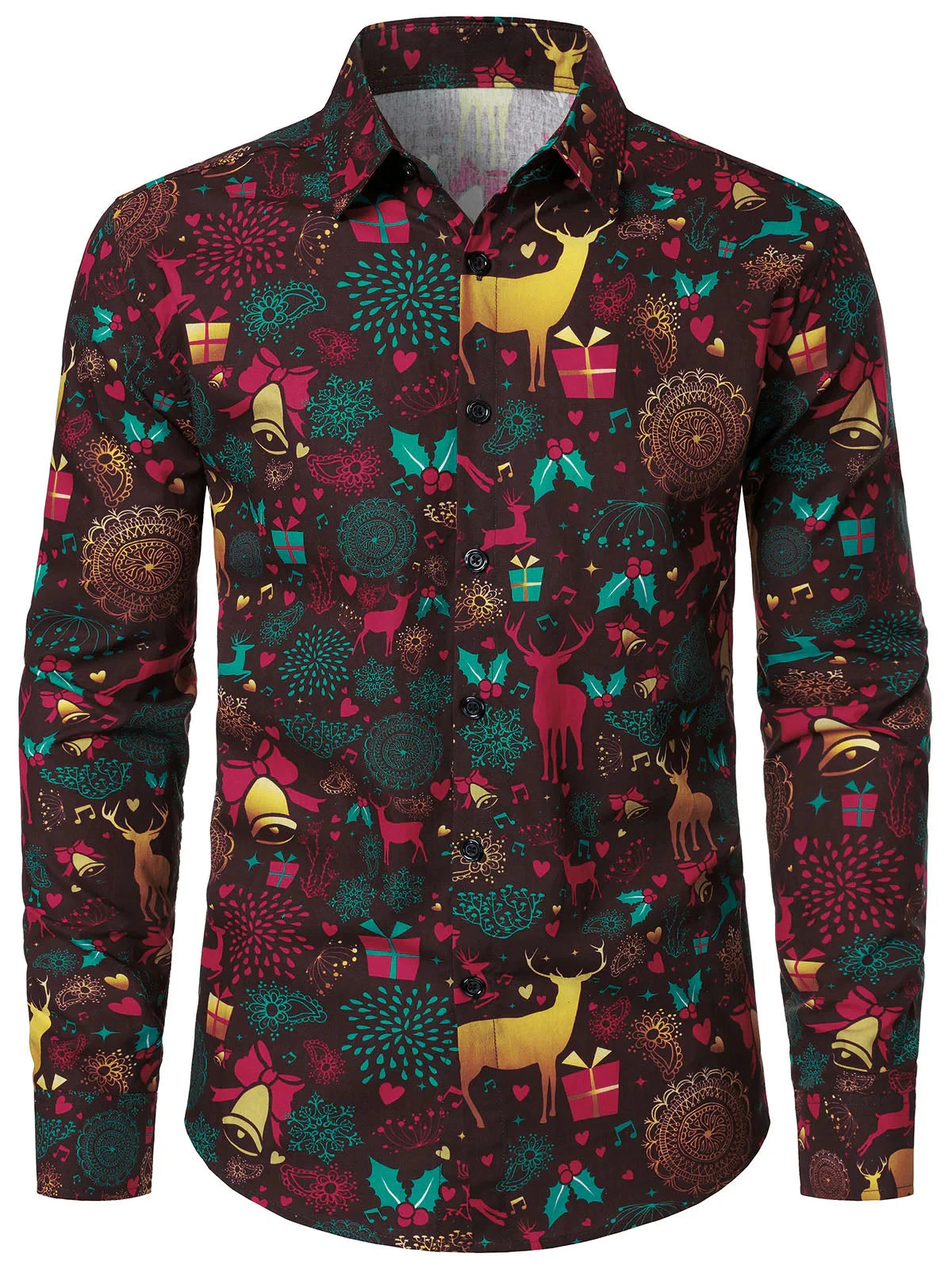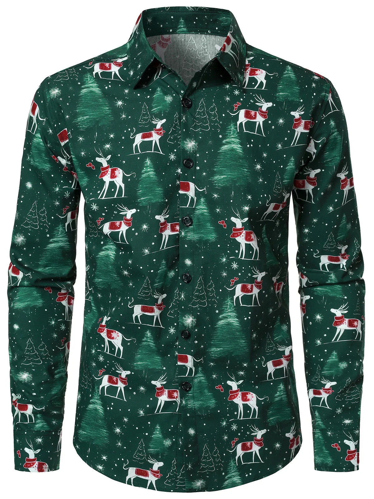 Men s Christmas Tree Funny Festive Reindeer Long Sleeve Shirt Button Up Shirt...