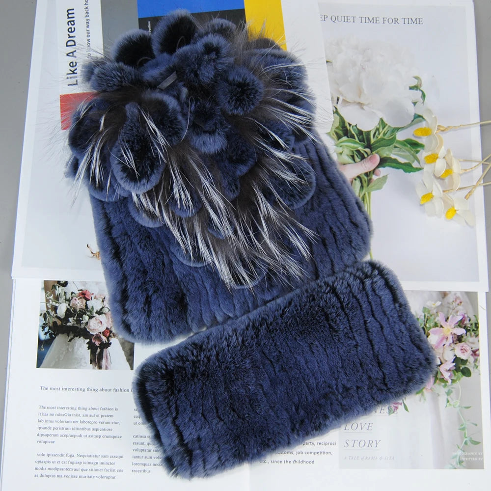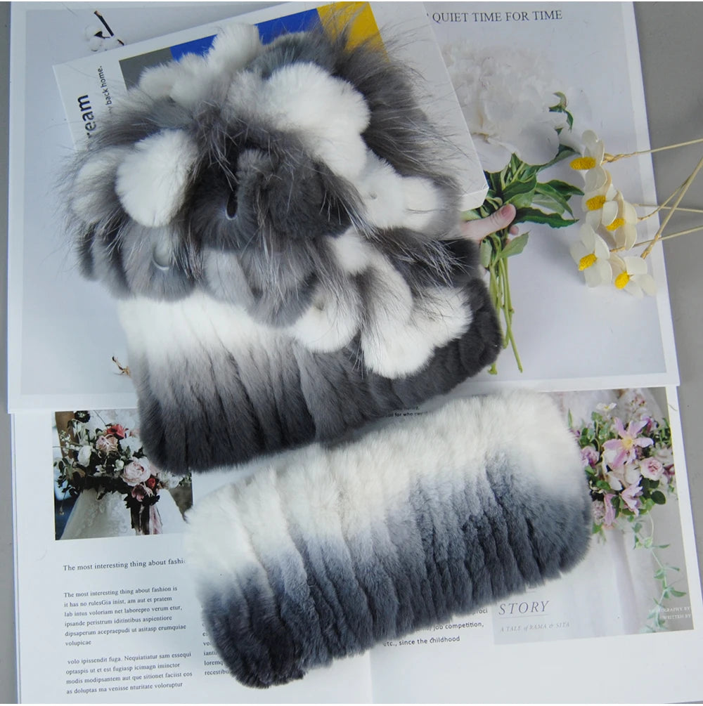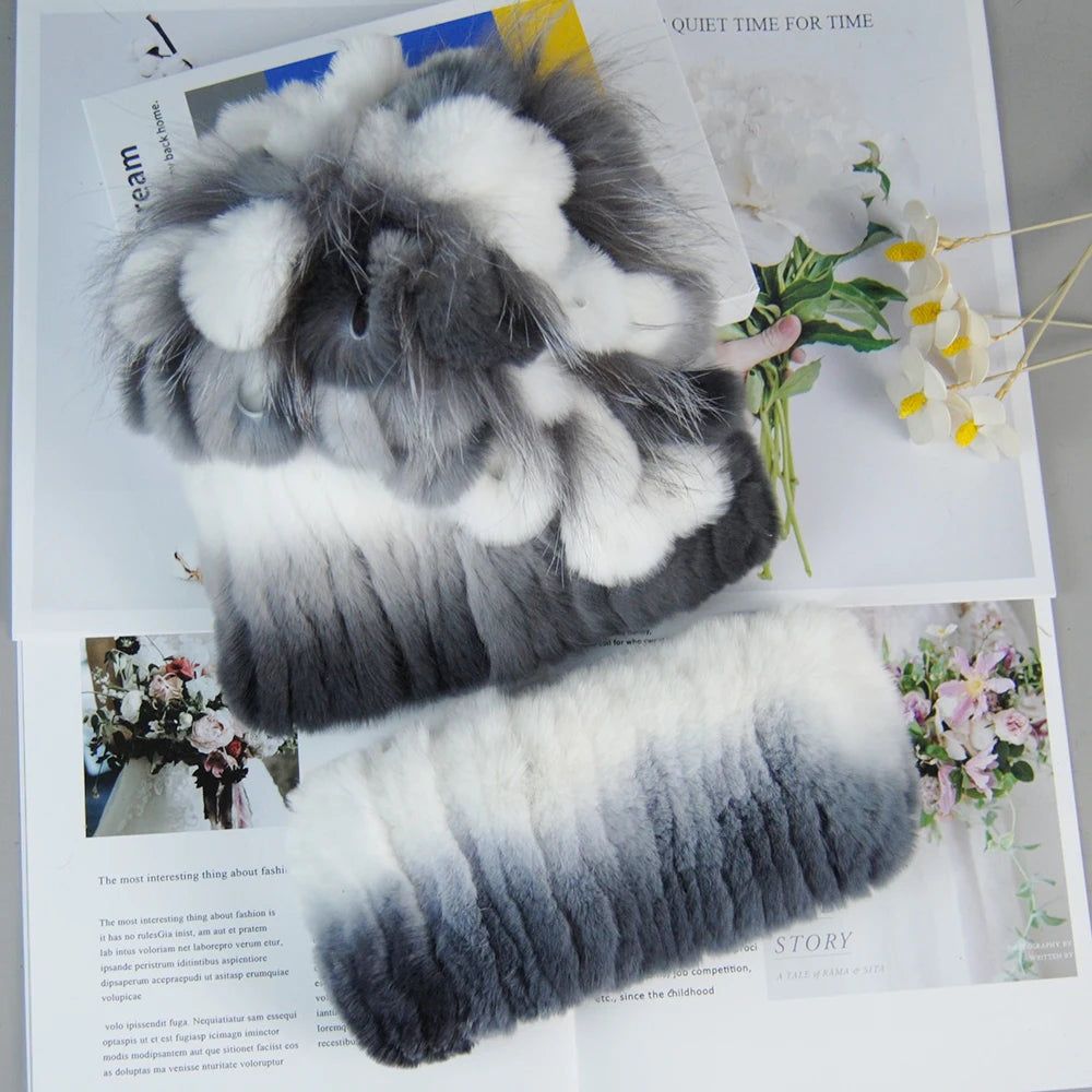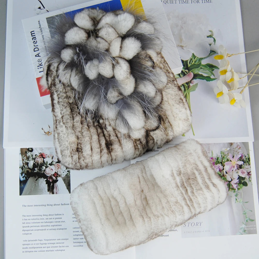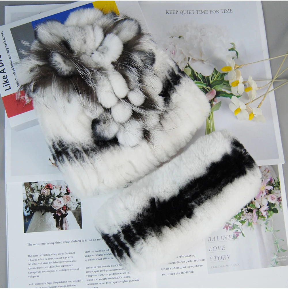 Good Elastic Ladies Real Rex Rabbit Fur Scarf Hat Set Winter Women Warm Natur...