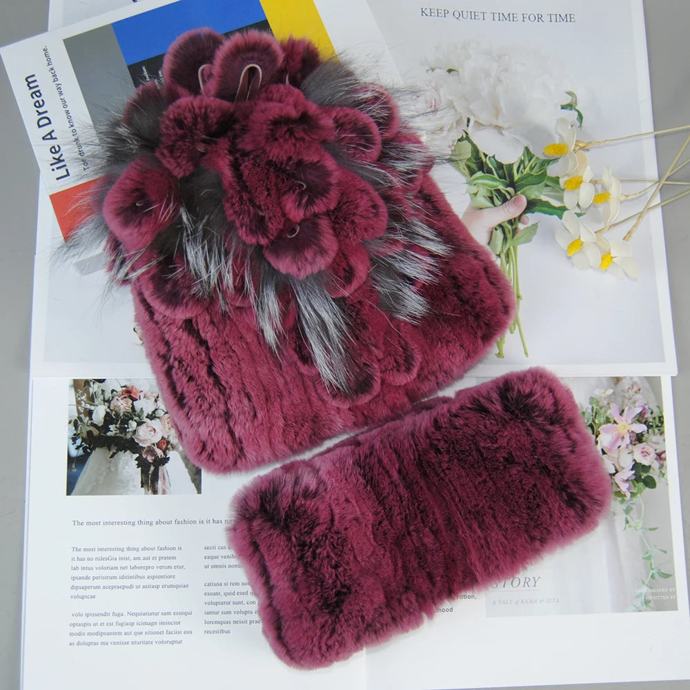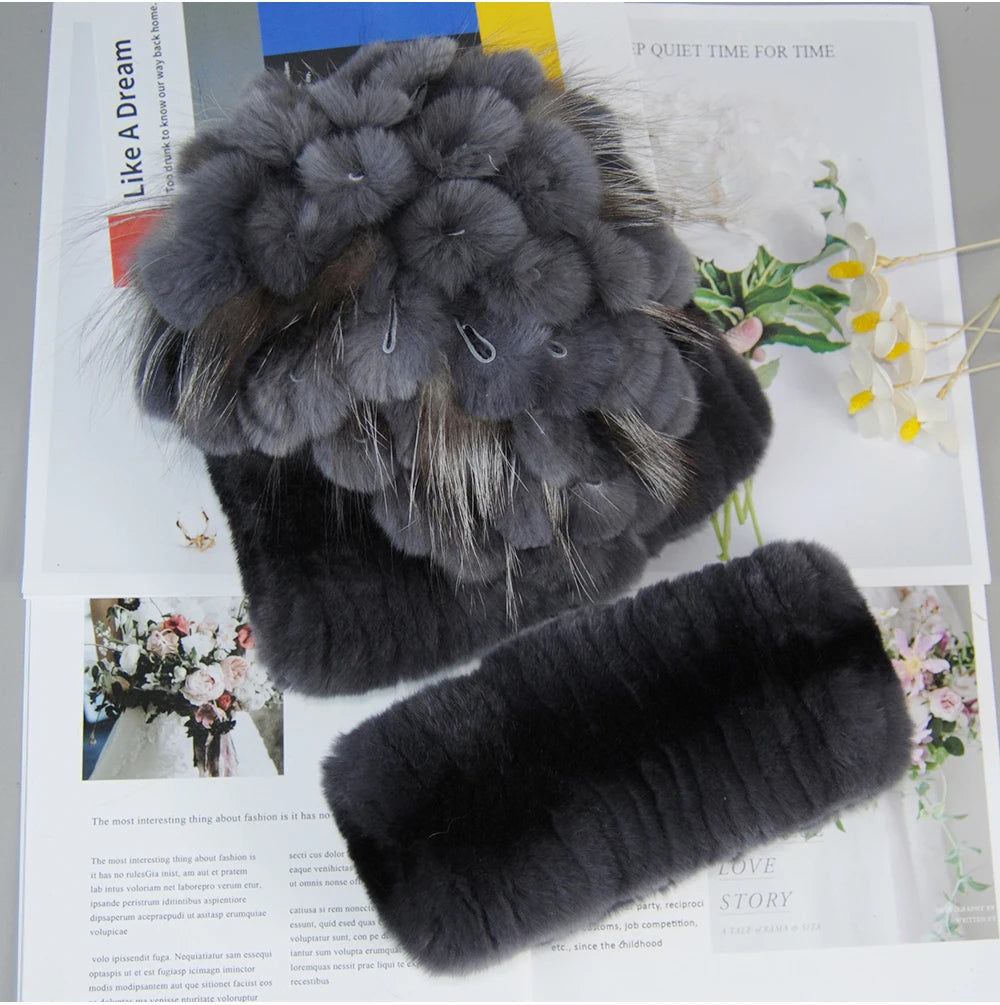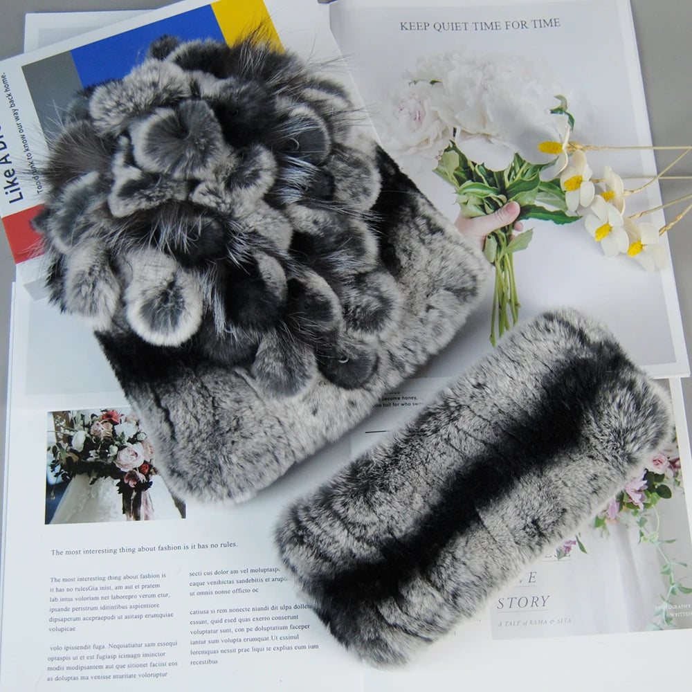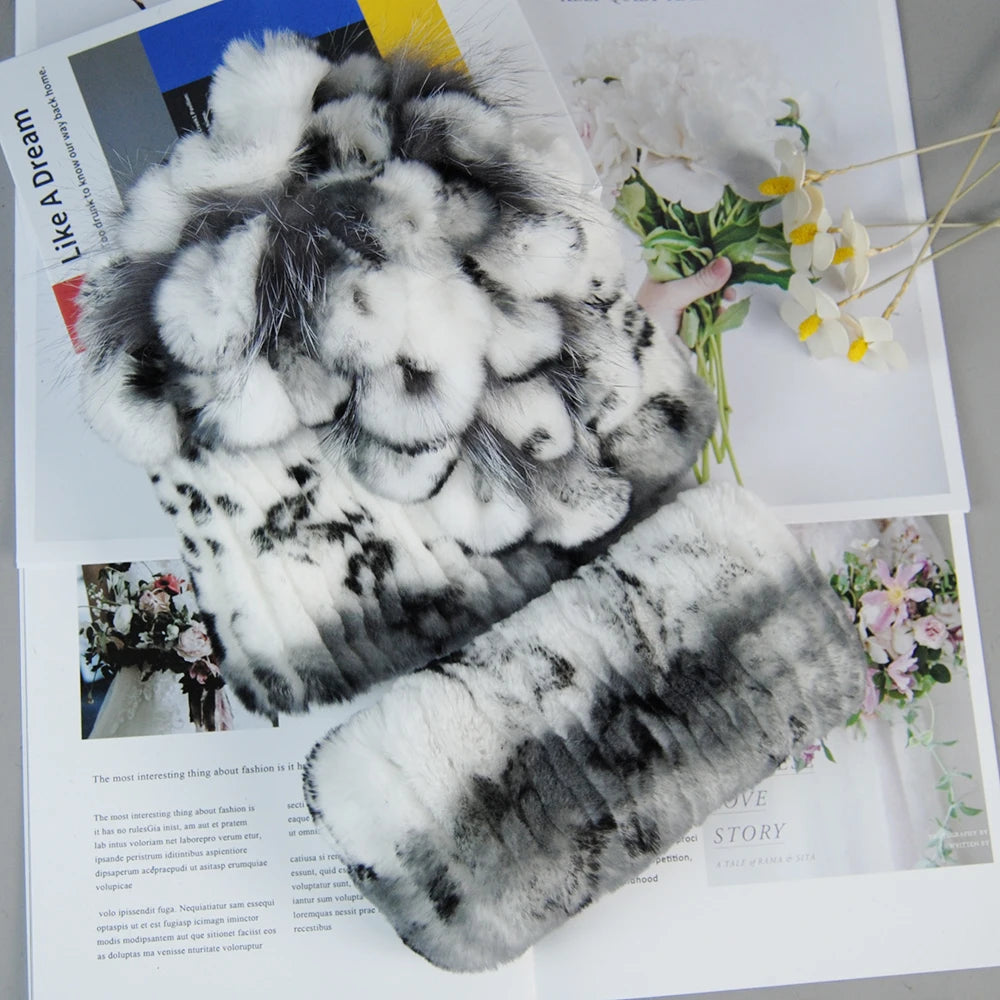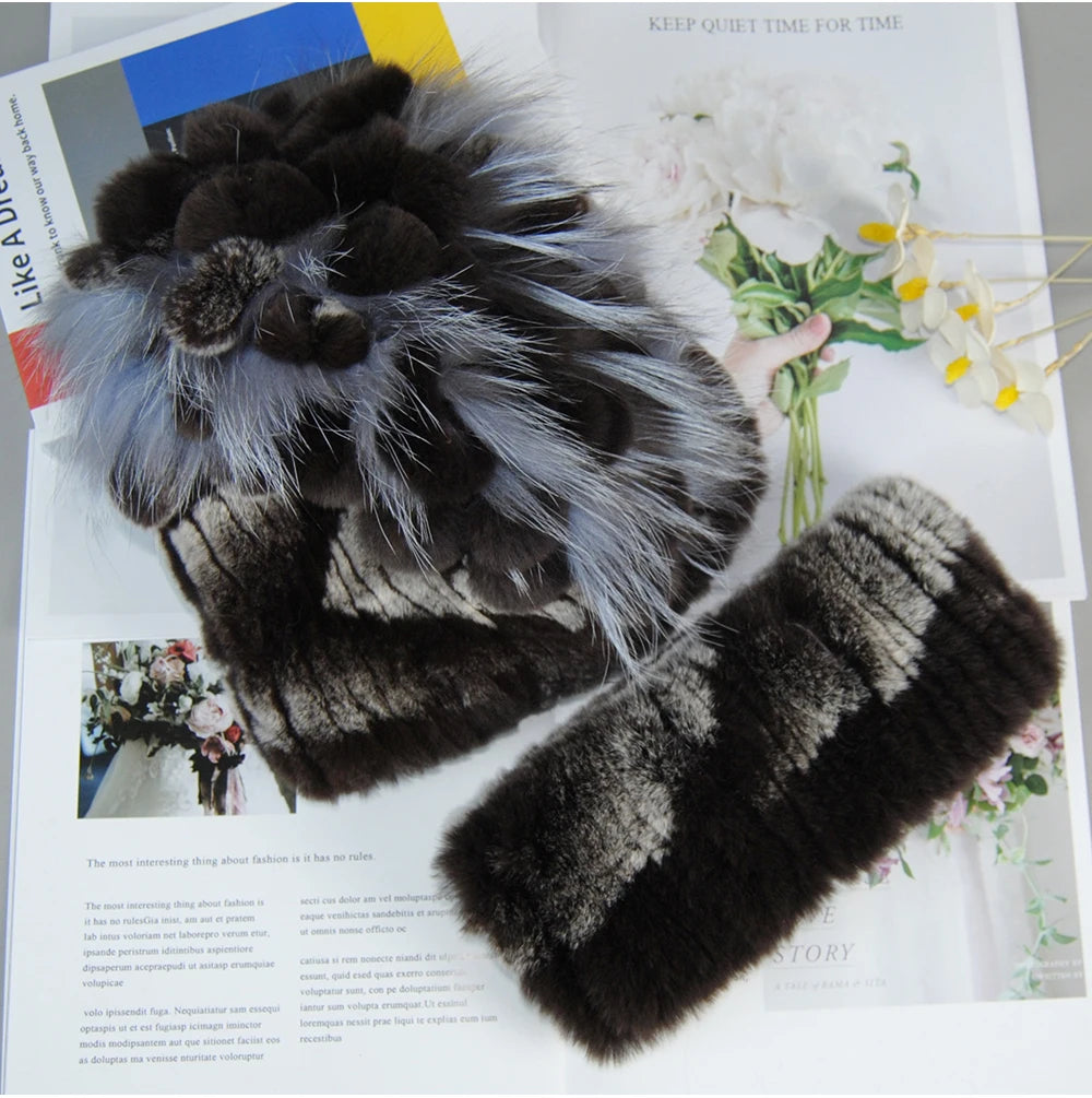 Good Elastic Ladies Real Rex Rabbit Fur Scarf Hat Set Winter Women Warm Natur...
