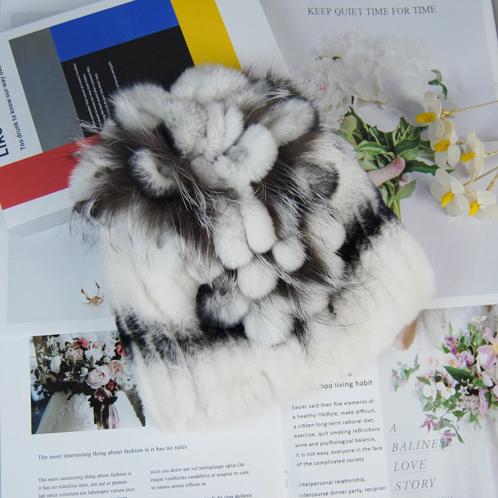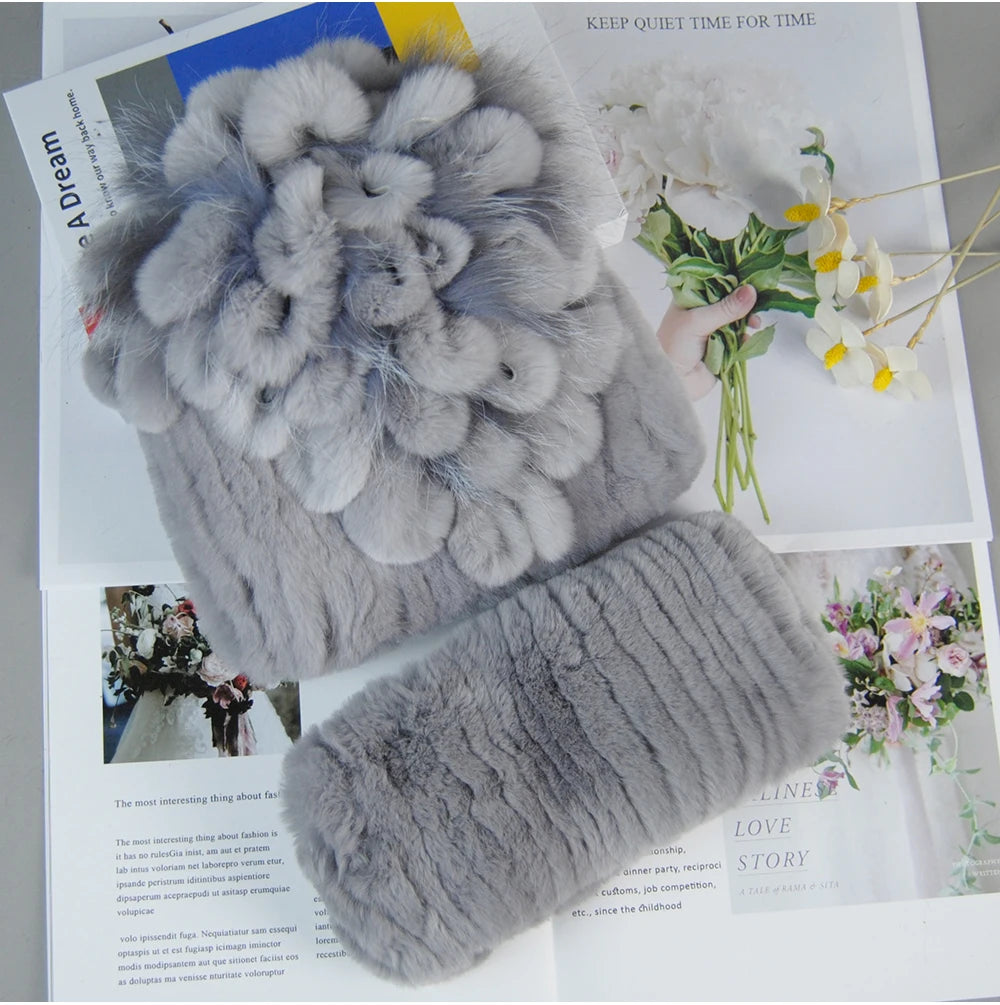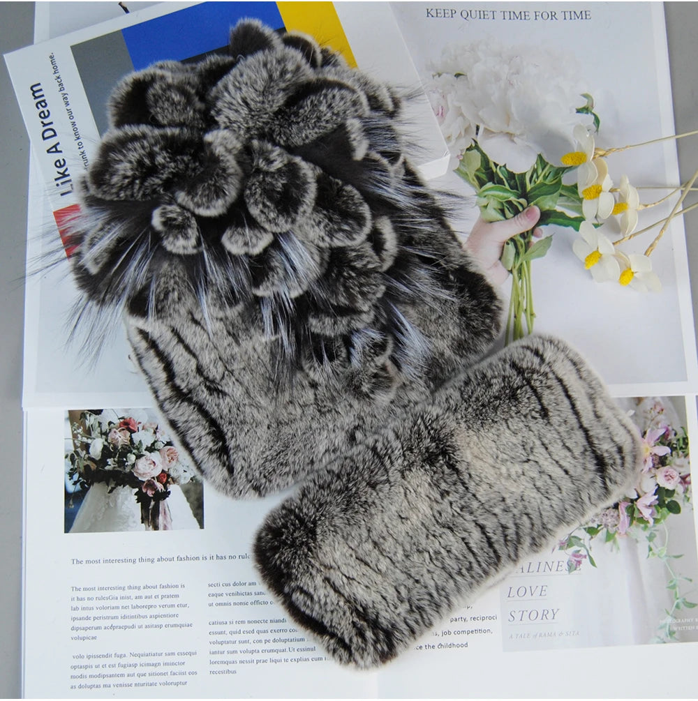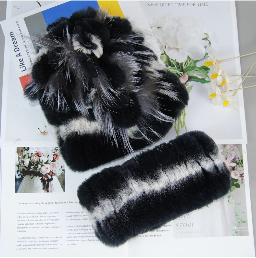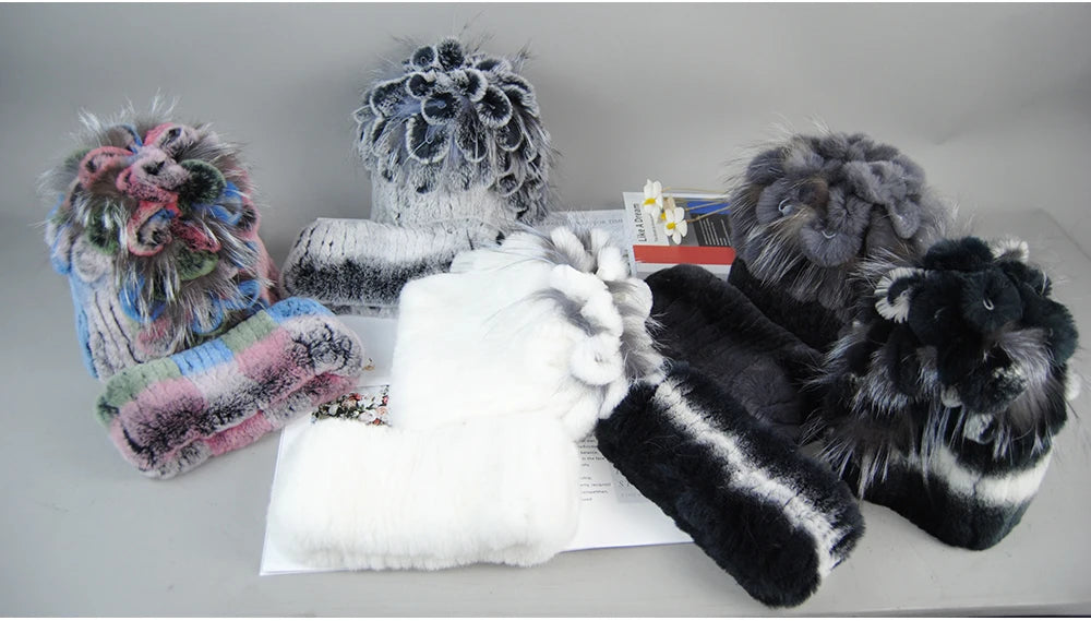 Good Elastic Ladies Real Rex Rabbit Fur Scarf Hat Set Winter Women Warm Natur...