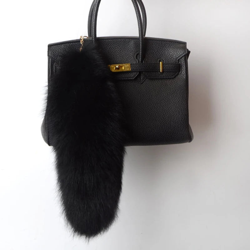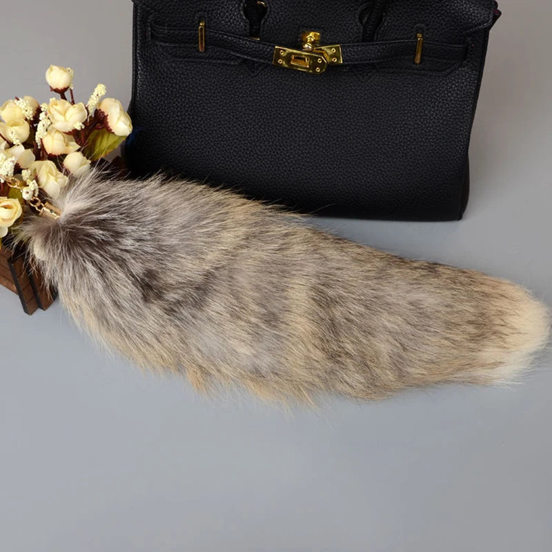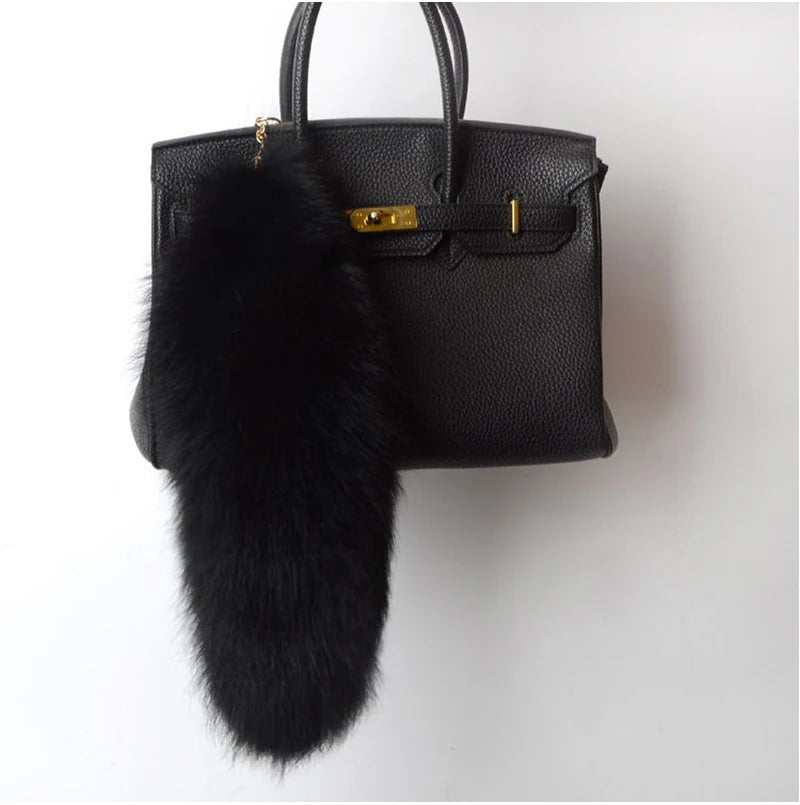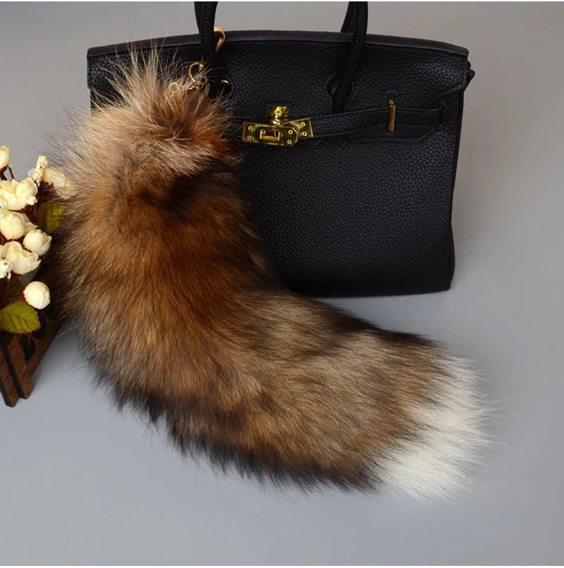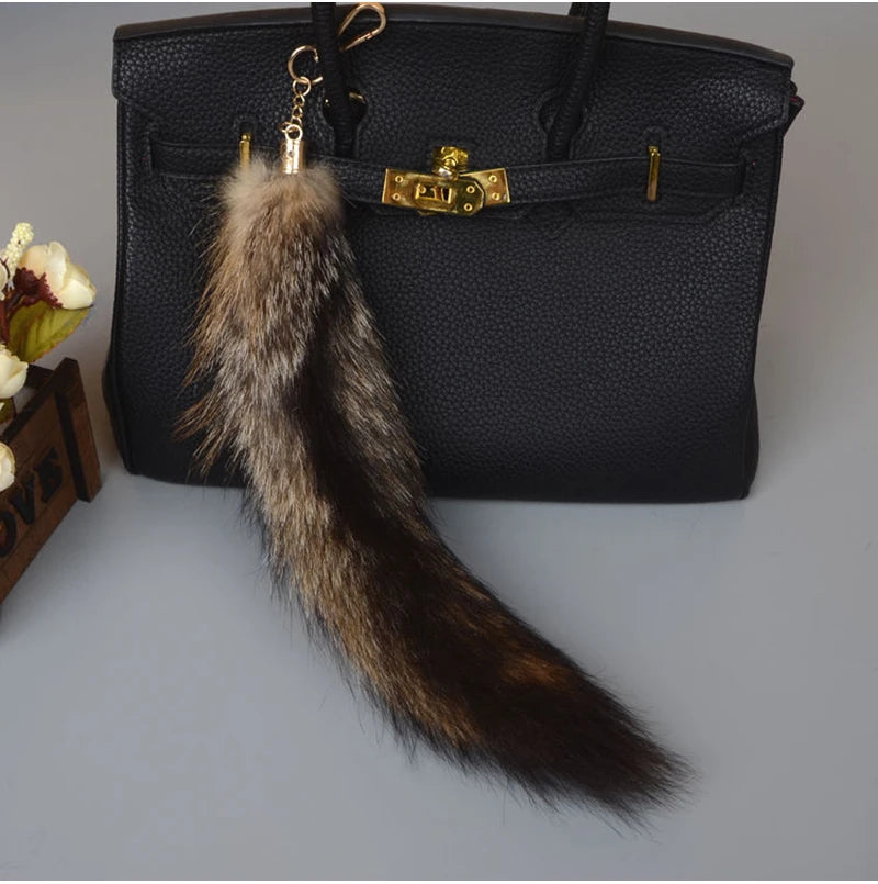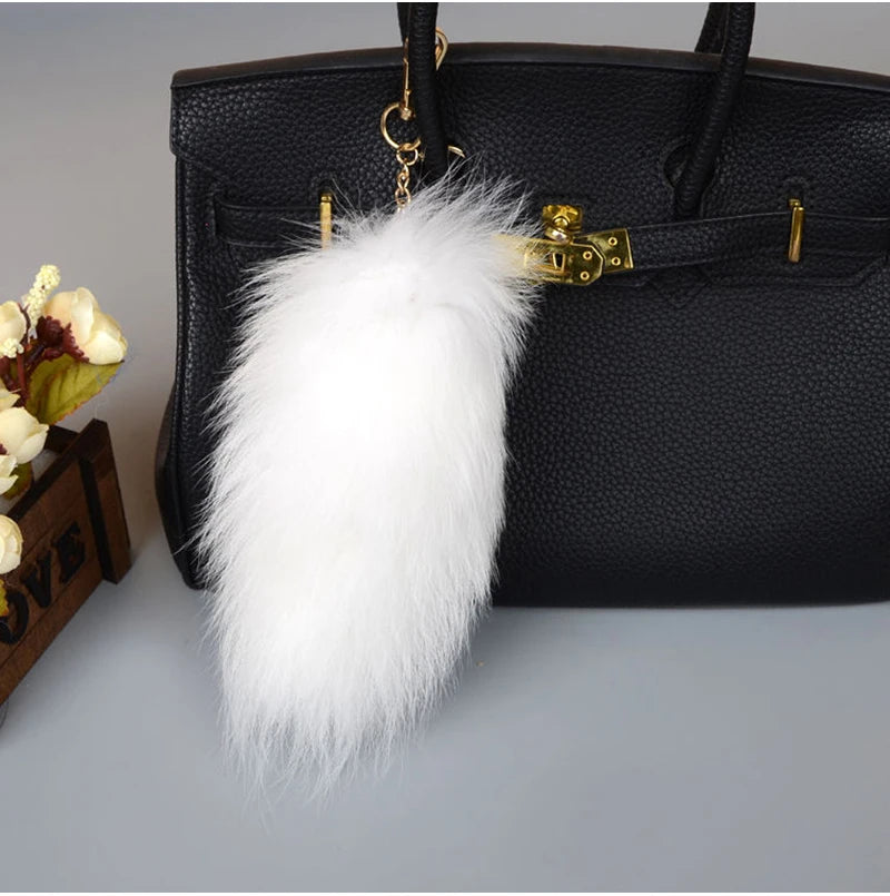 Fashion Fox Tail Keychain Wolf Tail Fur Tassel Bag Tag Black And Brown Pom Po...