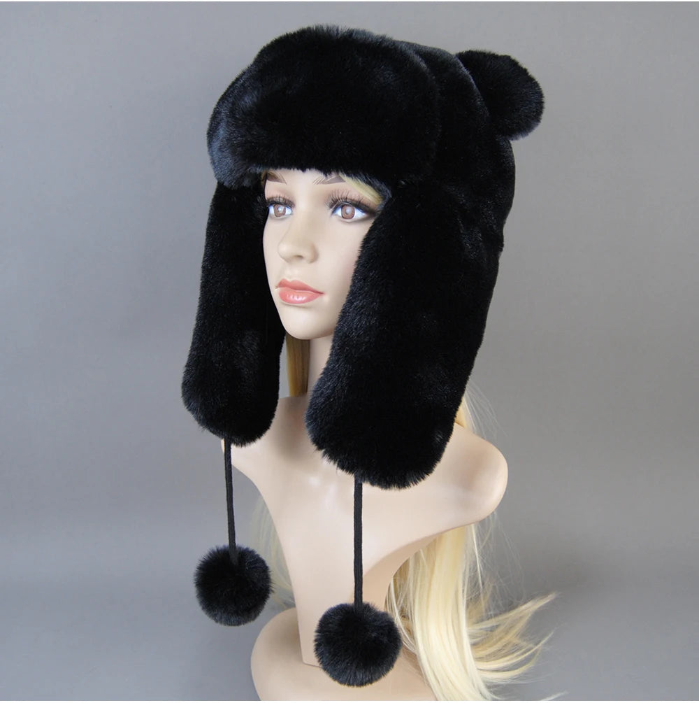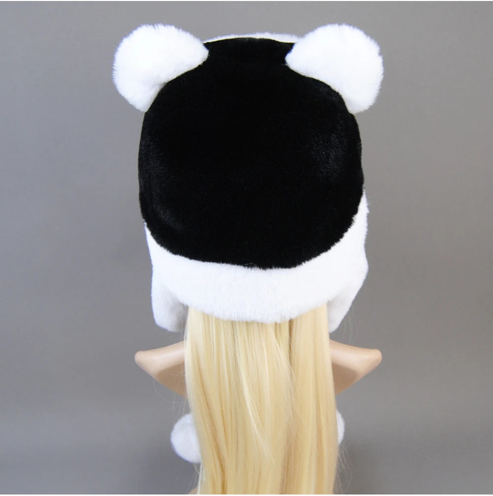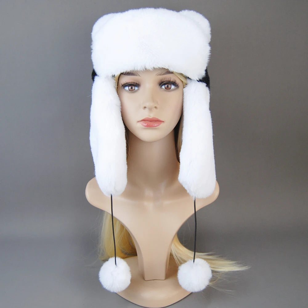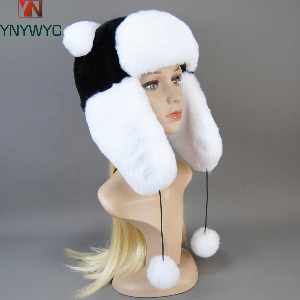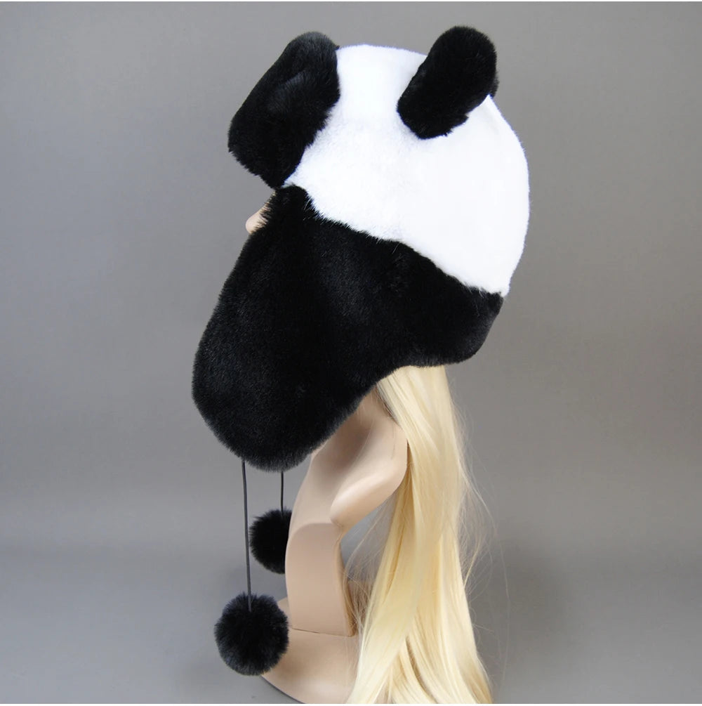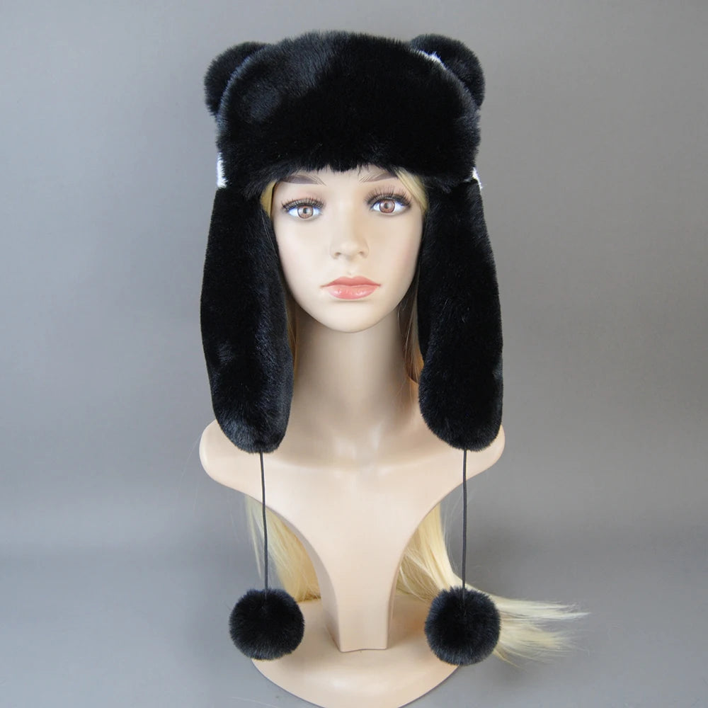 Women False Rex Rabbit False Fur Hat Winter Warm Fur Hat Black and White Pand...