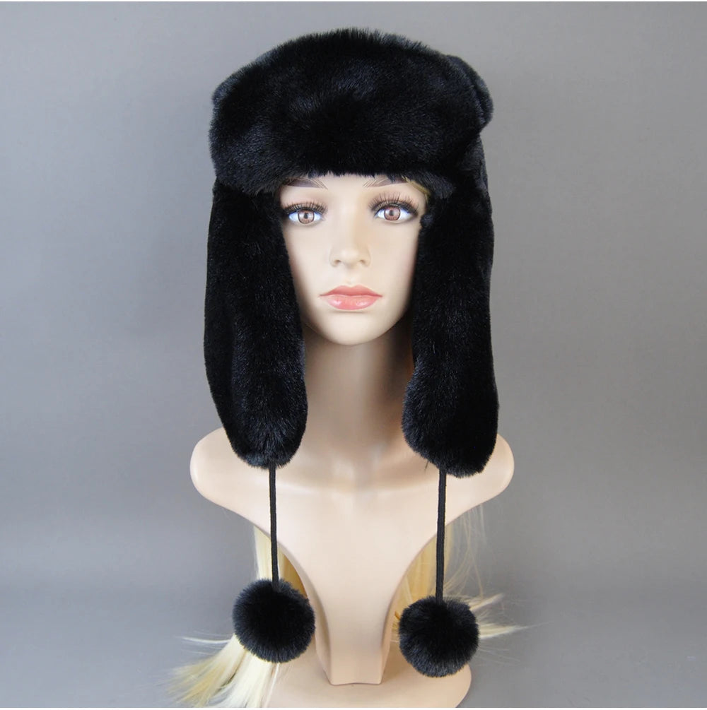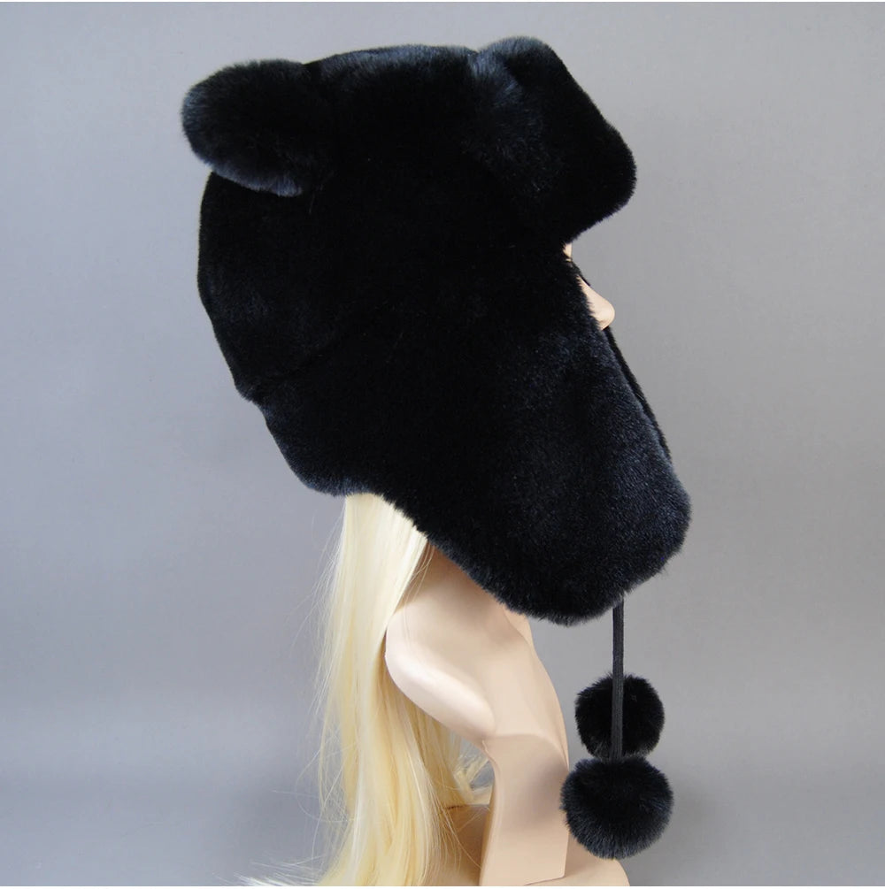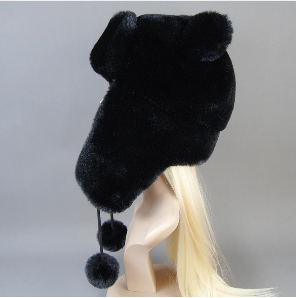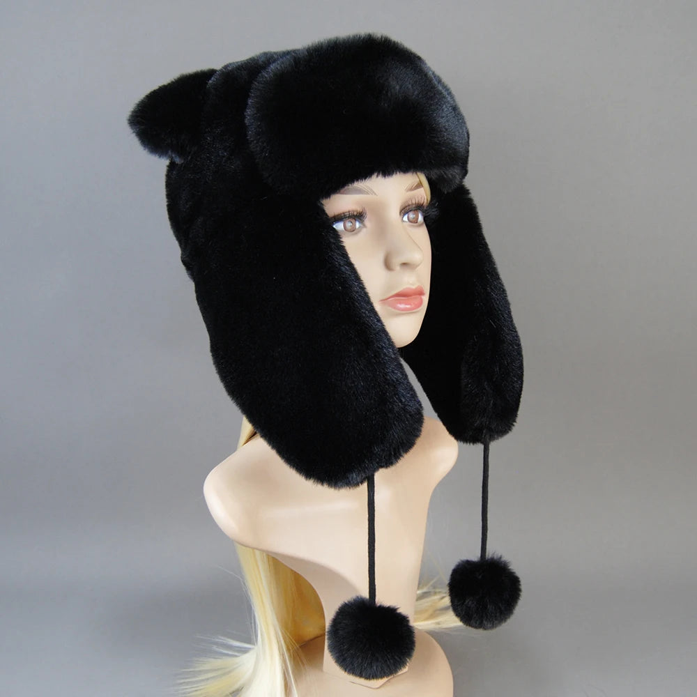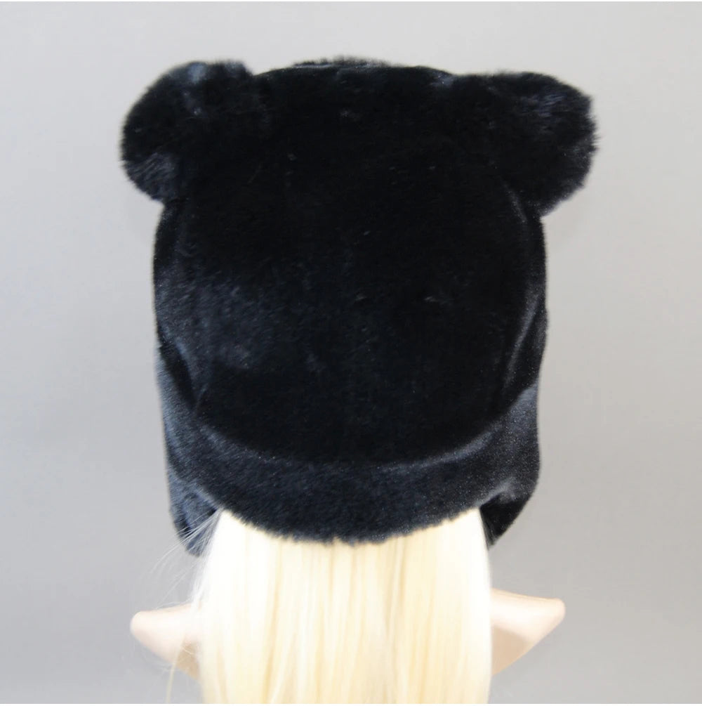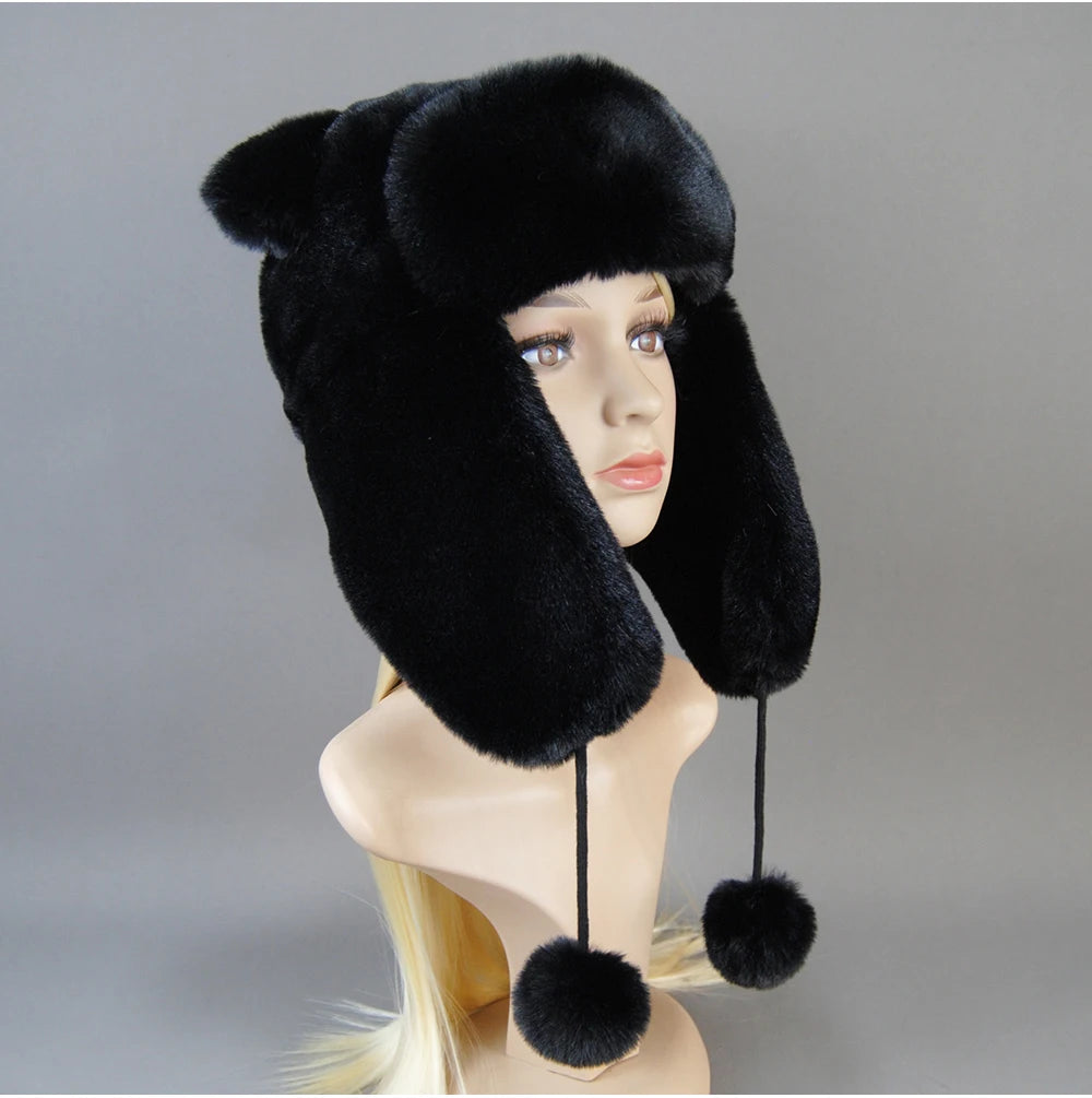 Women False Rex Rabbit False Fur Hat Winter Warm Fur Hat Black and White Pand...