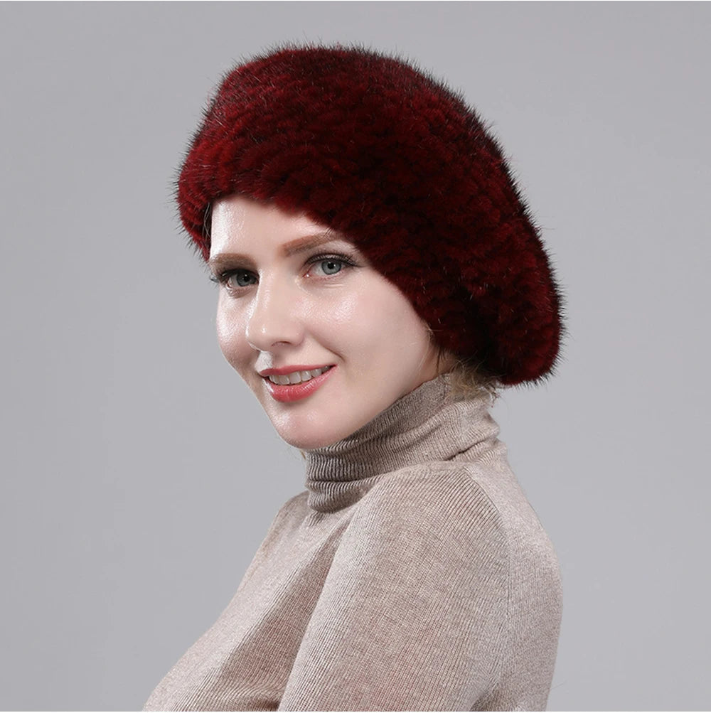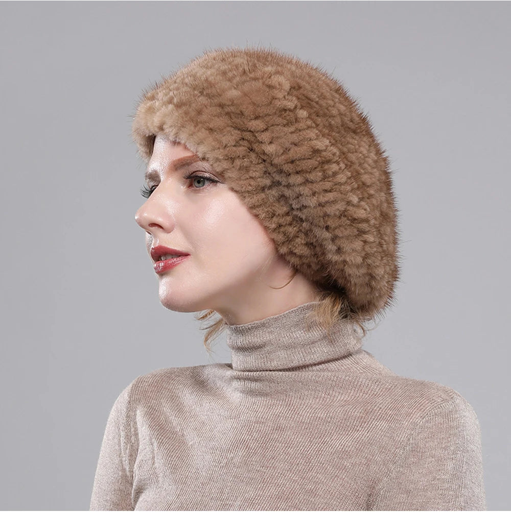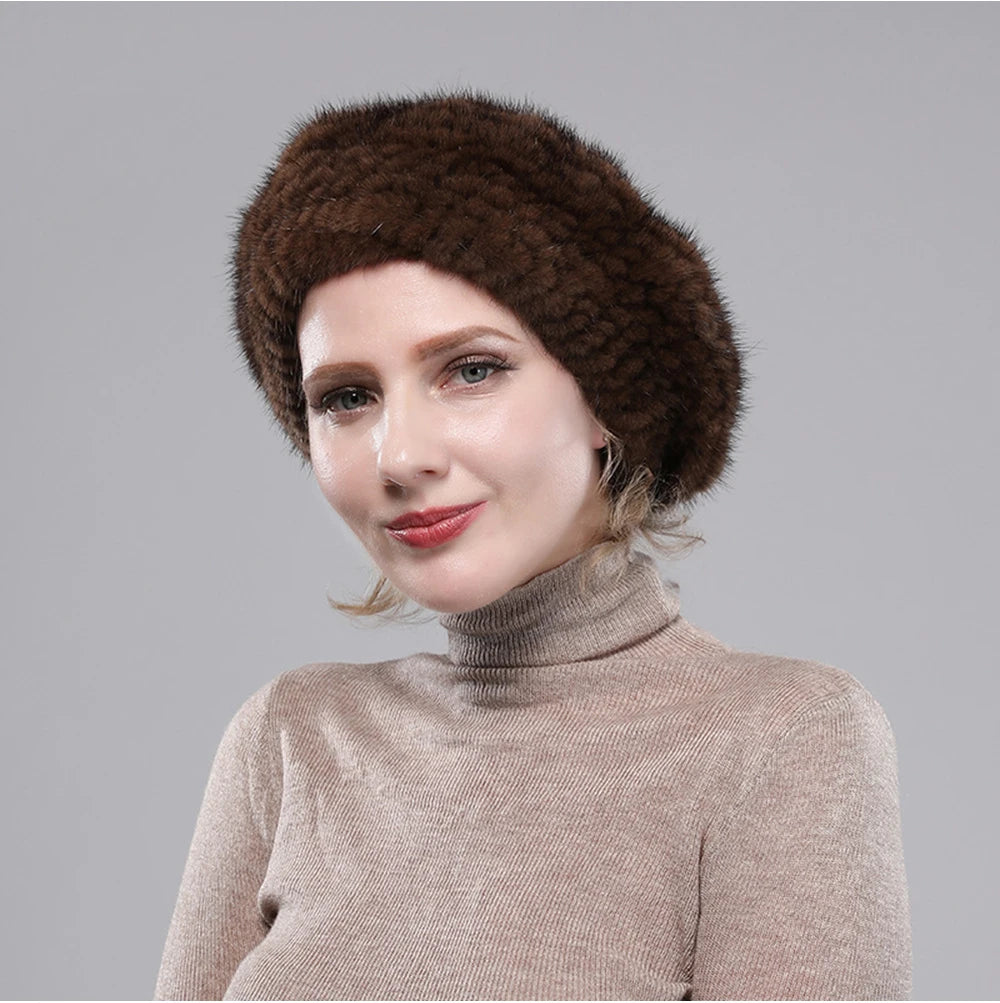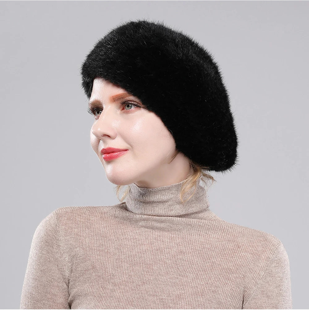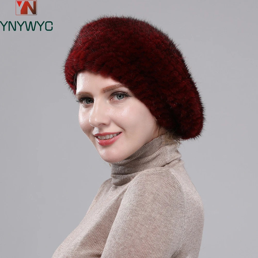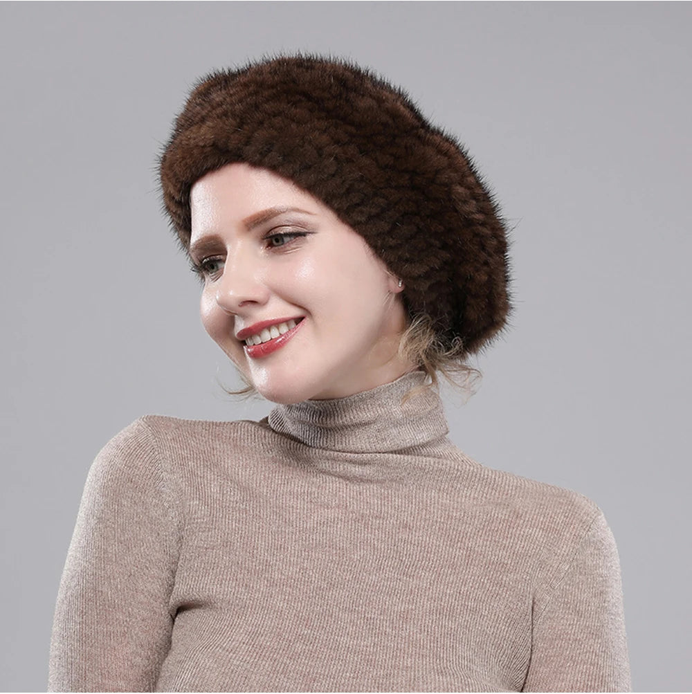 Real Mink Fur Berets Elegant Women s Winter Caps Design Fashion Fur Hats Knit...