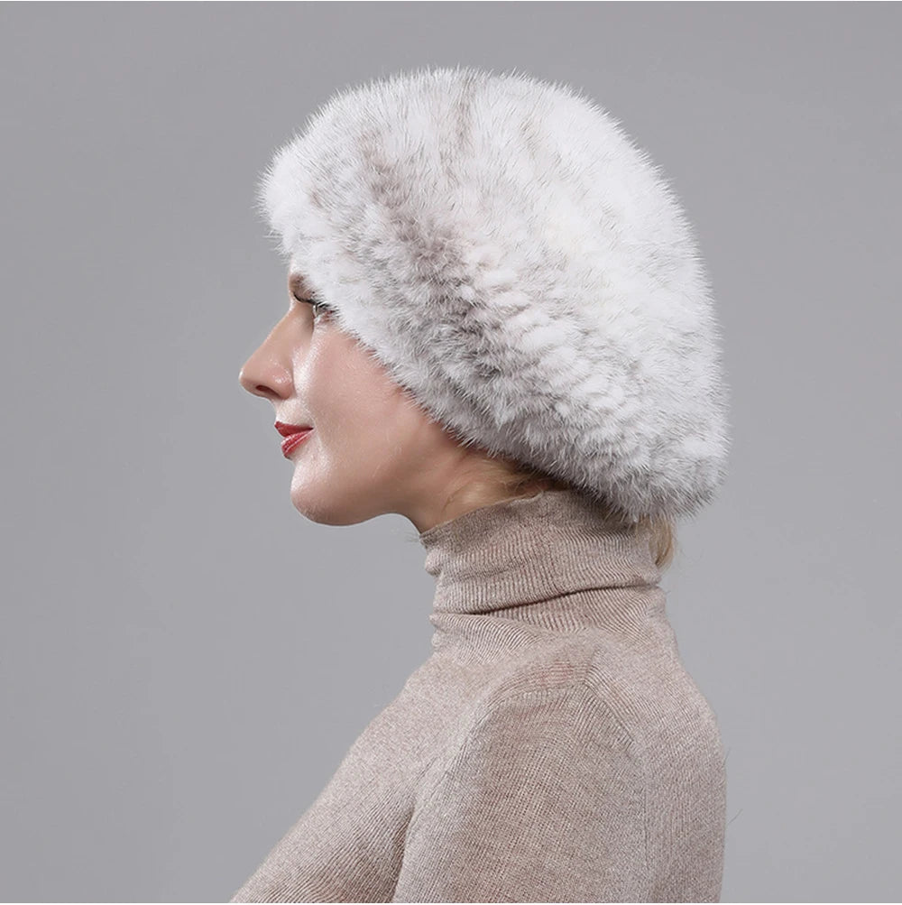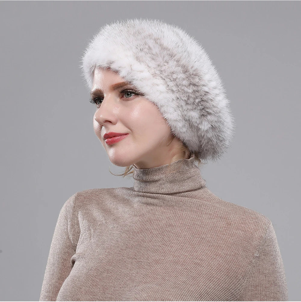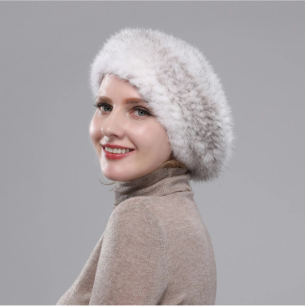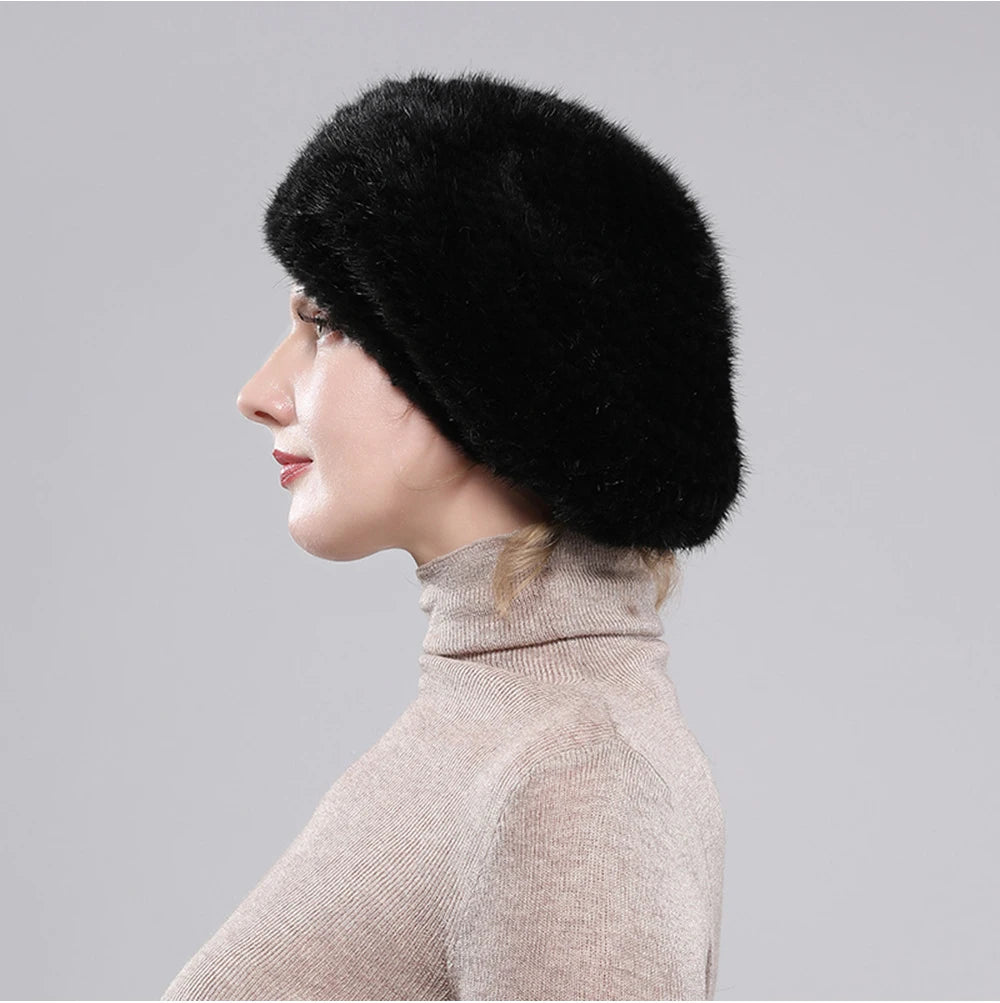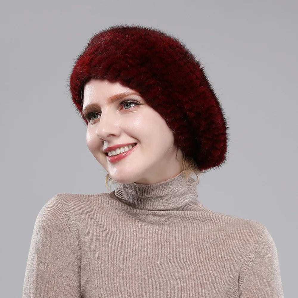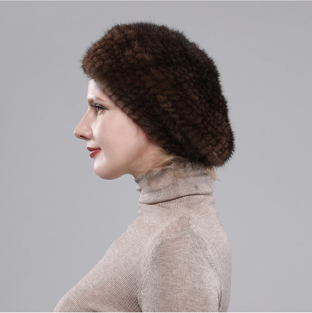 Real Mink Fur Berets Elegant Women s Winter Caps Design Fashion Fur Hats Knit...