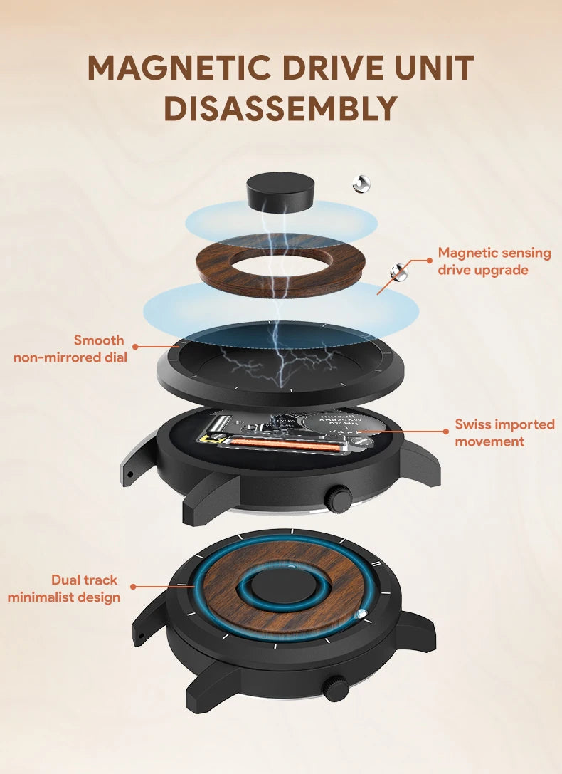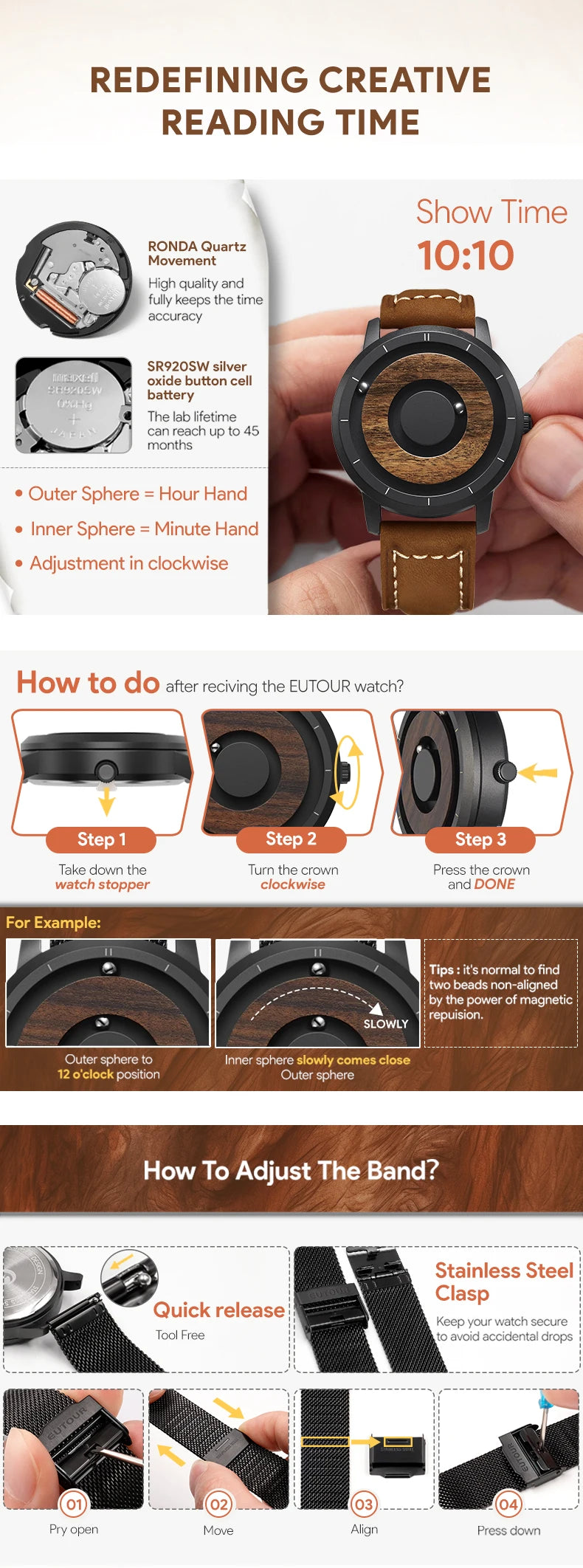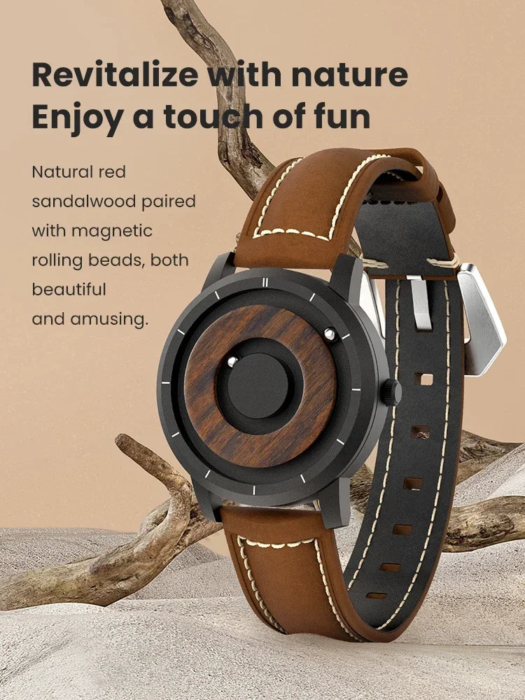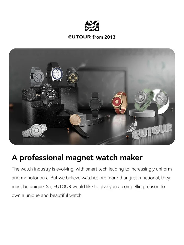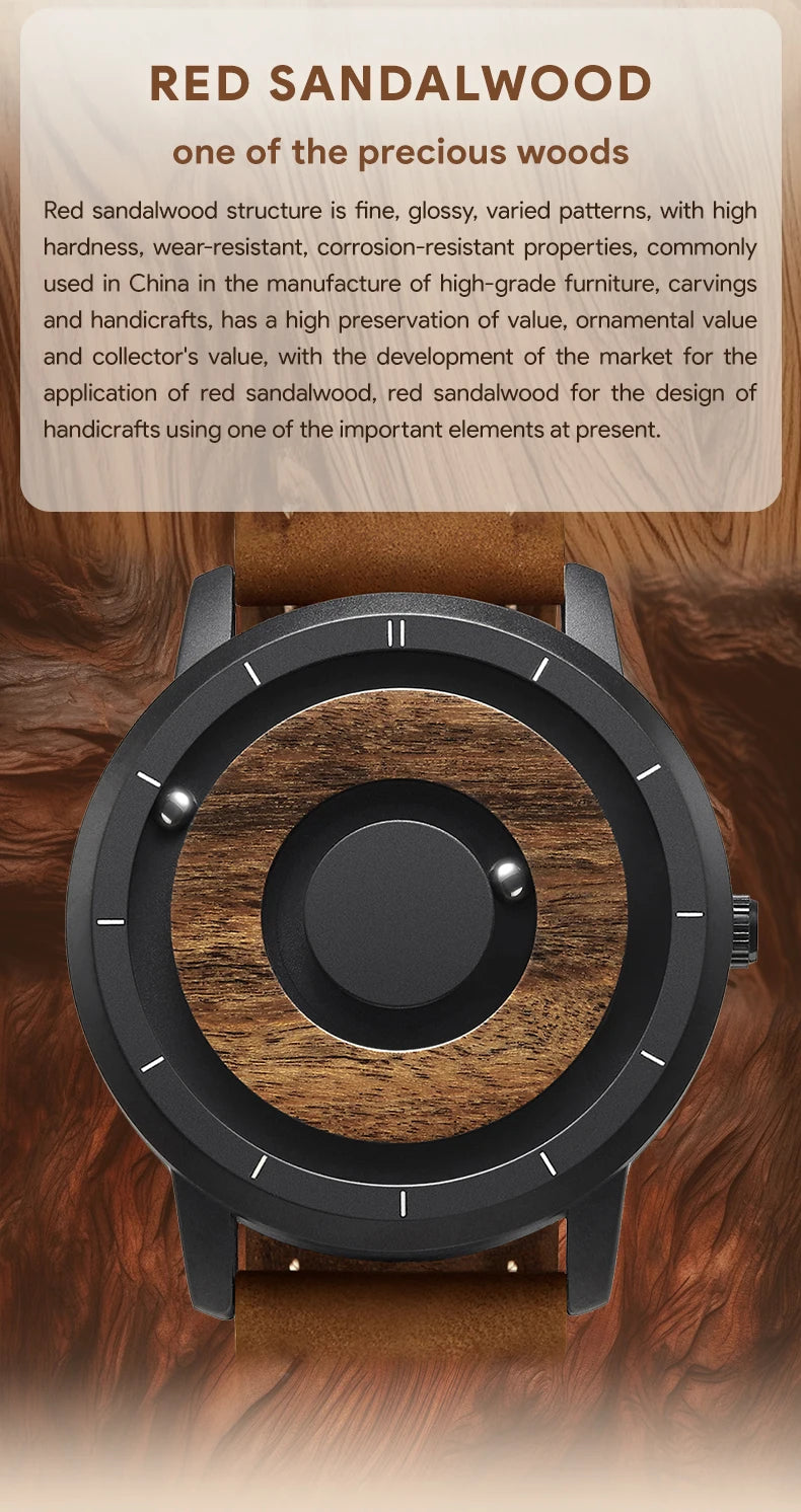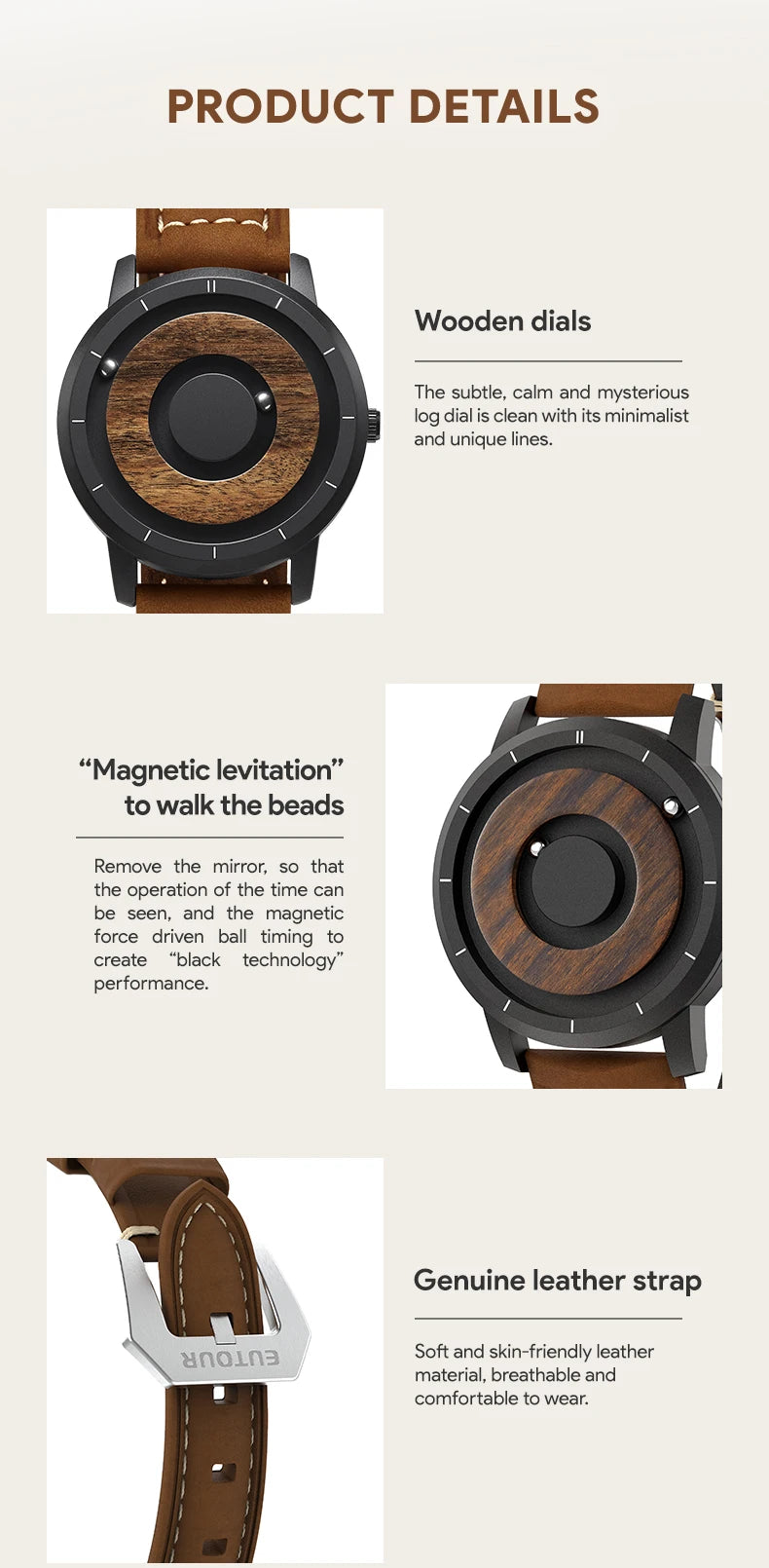 EUTOUR 2025 nieuw origineel magnetische houten wijzerplaat mode casual quartz horloge eenvoudig herenhorloge roestvrij stalen leren band
