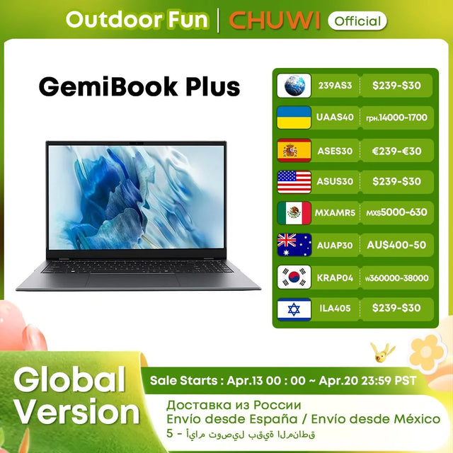 CHUWI GemiBook Plus Laptop 15,6" Intel N100 Graphics voor 12e generatie 1920*1080P 16 GB RAM 512 GB SSD m...