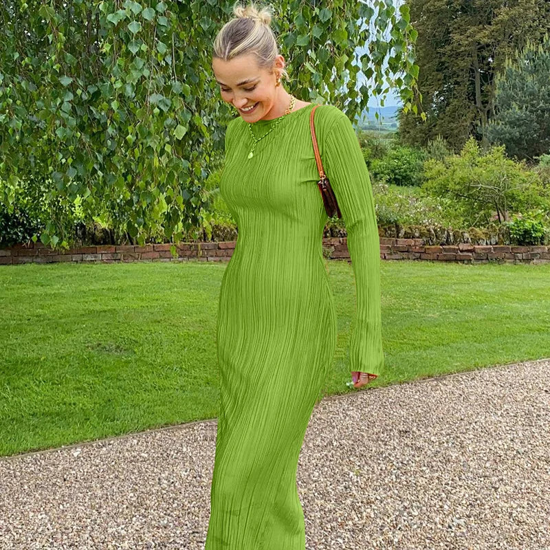 Jurk Dames 2022 Herfst Vrijetijd Effen Kleur O-hals Lange Mouw Hangende Vouw Jurken Casual Vestidos Drops...