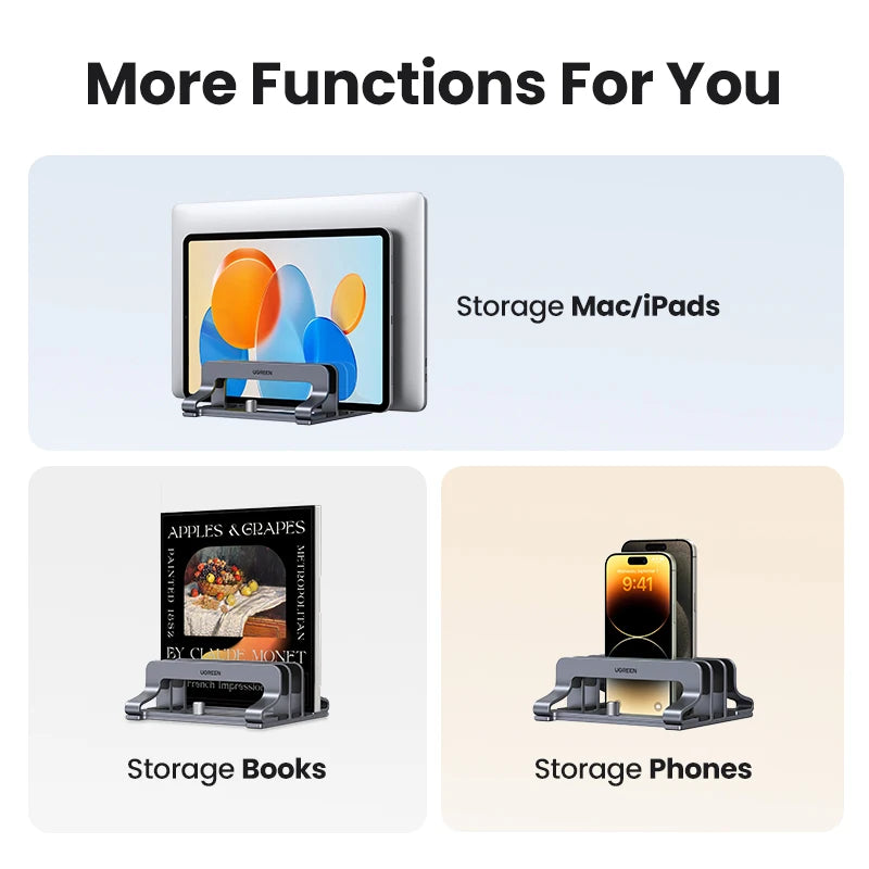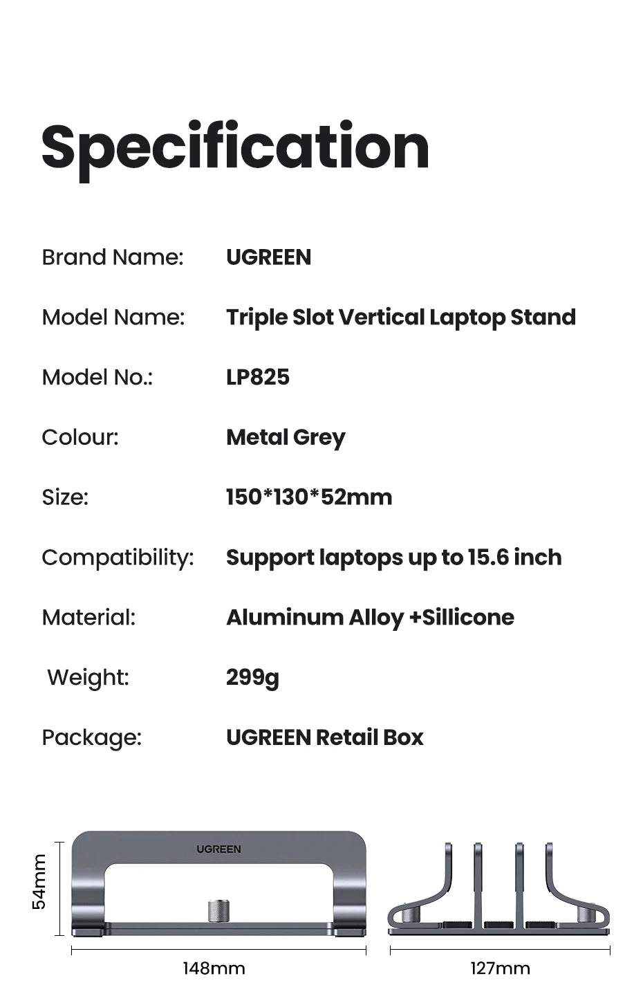 UGREEN verticale laptopstandaard voor MacBook Air Pro, drievoudige sleuven, aluminium notebookstandaard v...