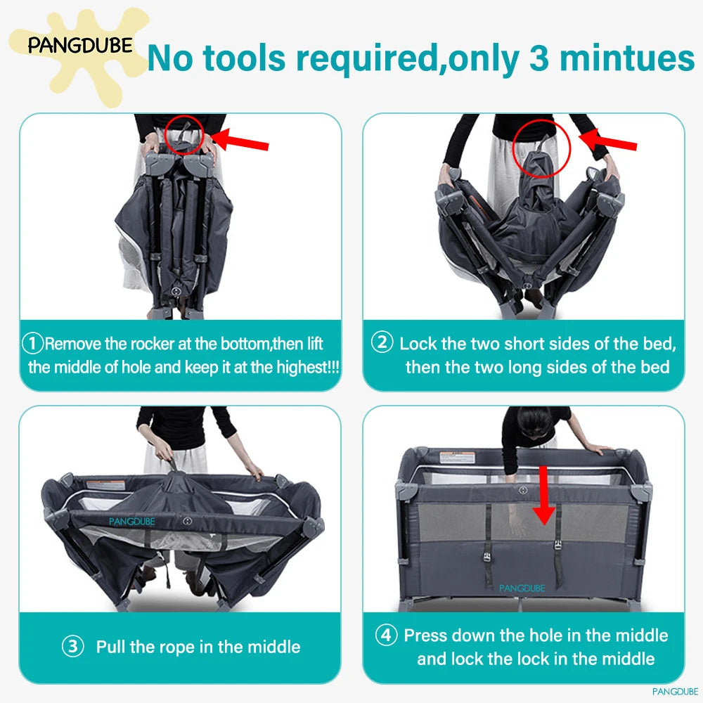 Pangdube Multifunctionele Babywieg 0-4 Jaar Babybed, Babywip, Luier