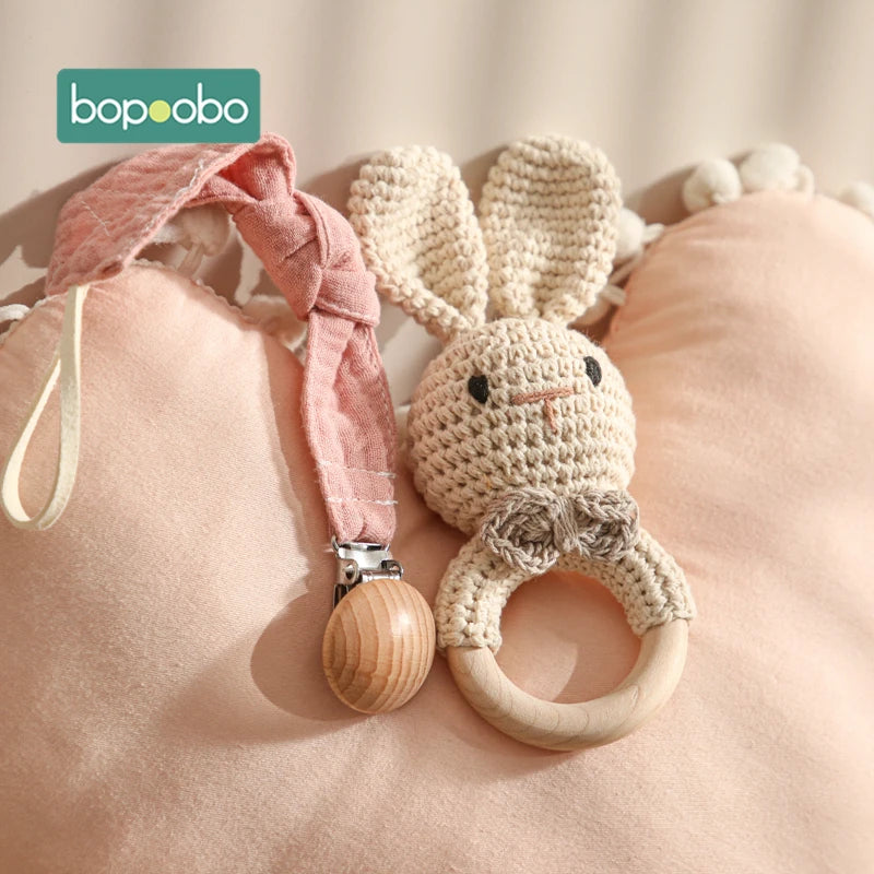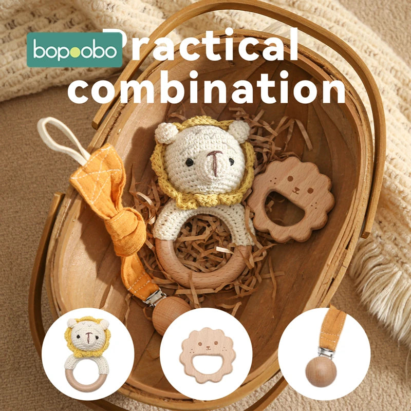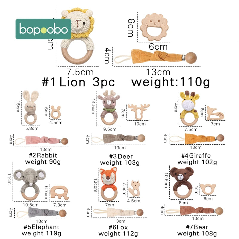 Bopoobo 3pcs 5pcs Crochet Bunny Baby Teether Rattle Animal Beech Wood Teether...