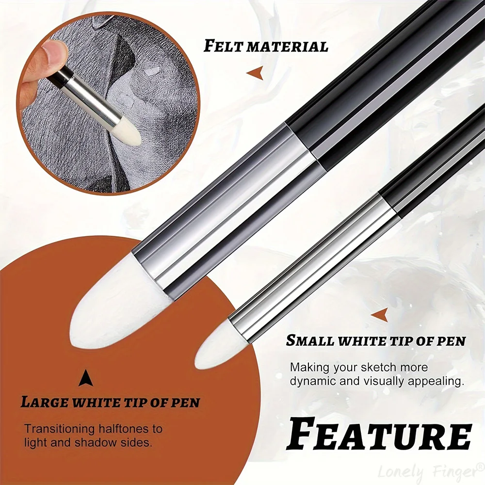 Artist Blending Sponge Pen, 2 maten, dubbelzijdige penseel, tekengereedschap voor scholieren, beginnersbe...
