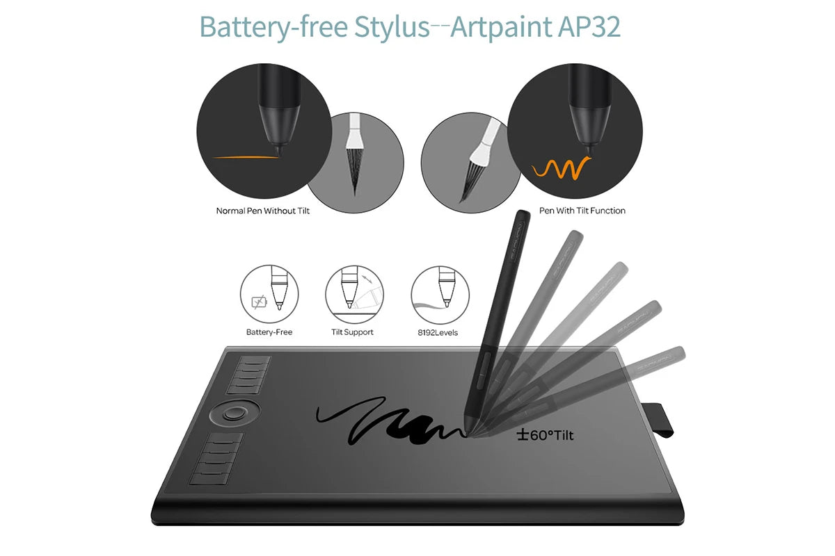 Passieve stylus AP32 met 8192 drukgevoeligheden en een rapportfrequentie van 266 PPS, waarmee u uw inspiratie direct vrij kunt uitdrukken. Dit zorgt voor een nauwkeurige en soepele tekenervaring.
