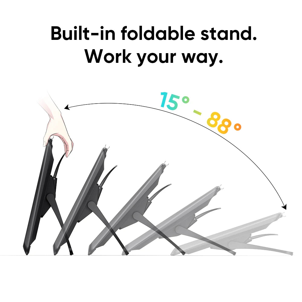 Dankzij de opvouwbare standaard kunt u de stand binnen enkele seconden veranderen van 15° naar 88°, en elke hoek daartussenin.