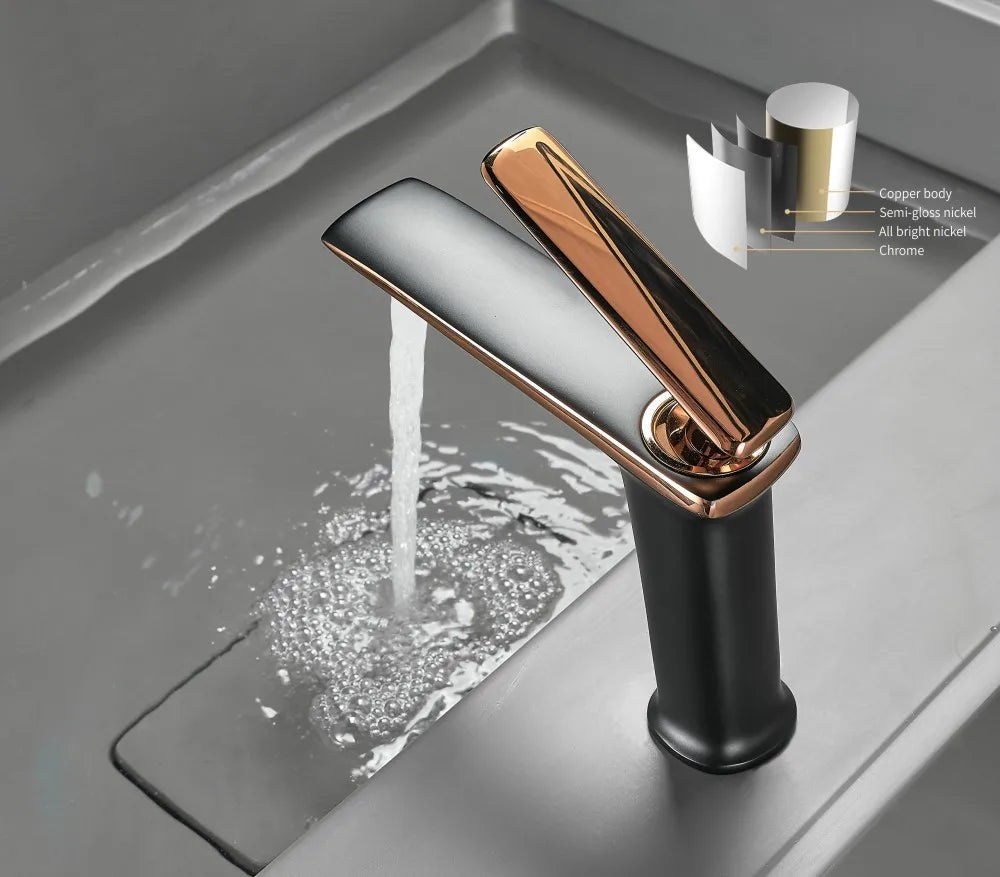 BAKALA Luxe Zwarte Roségouden Wastafelkranen Moderne Witte Kraan Badkamer Luxe Wastafelkranen Warm Koud Water Wastafelkraan
