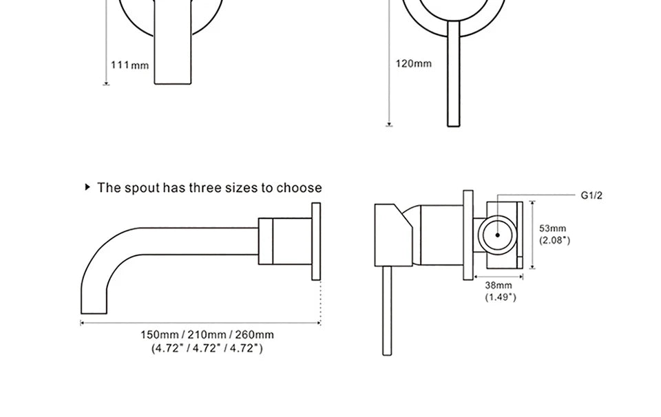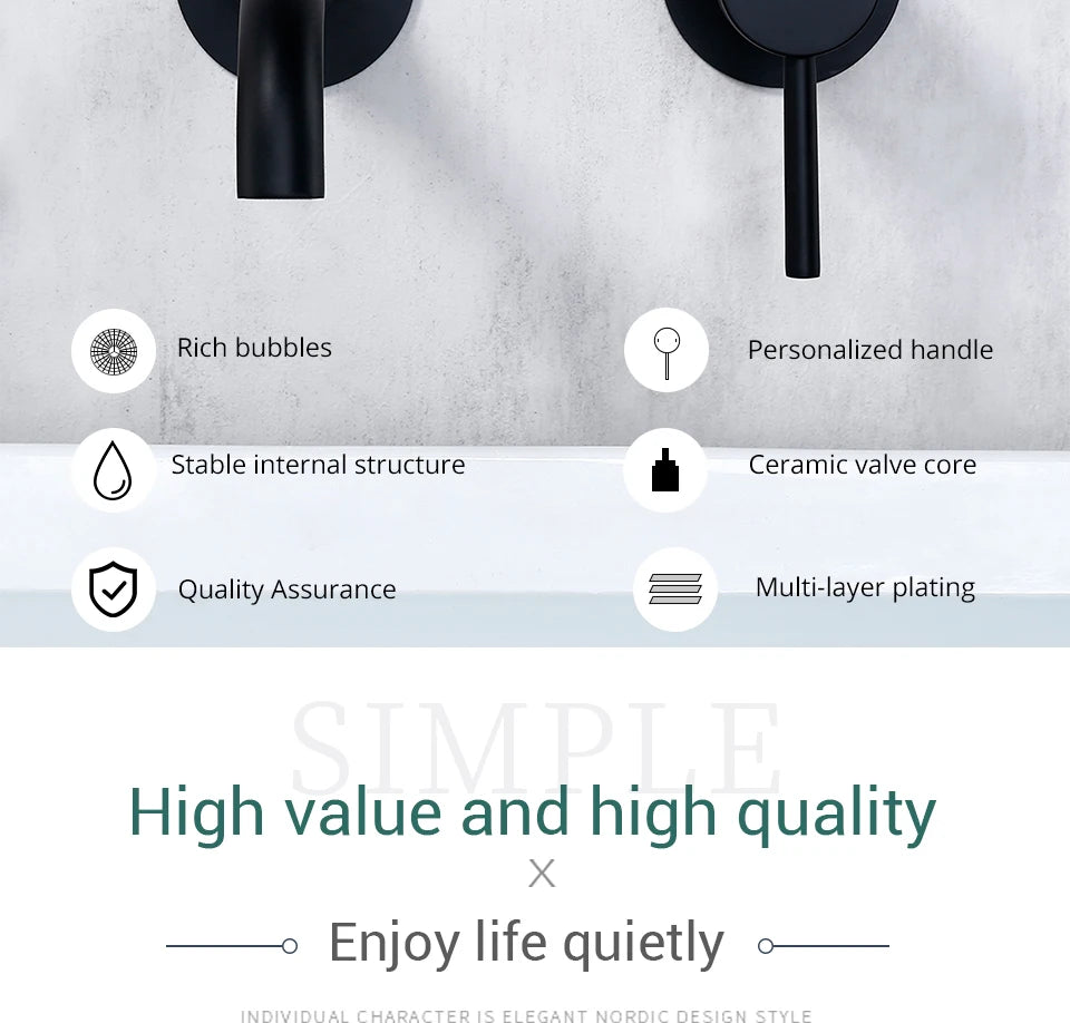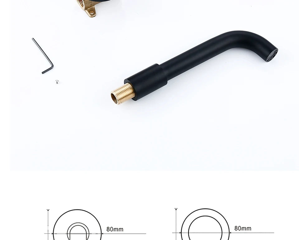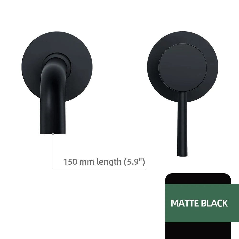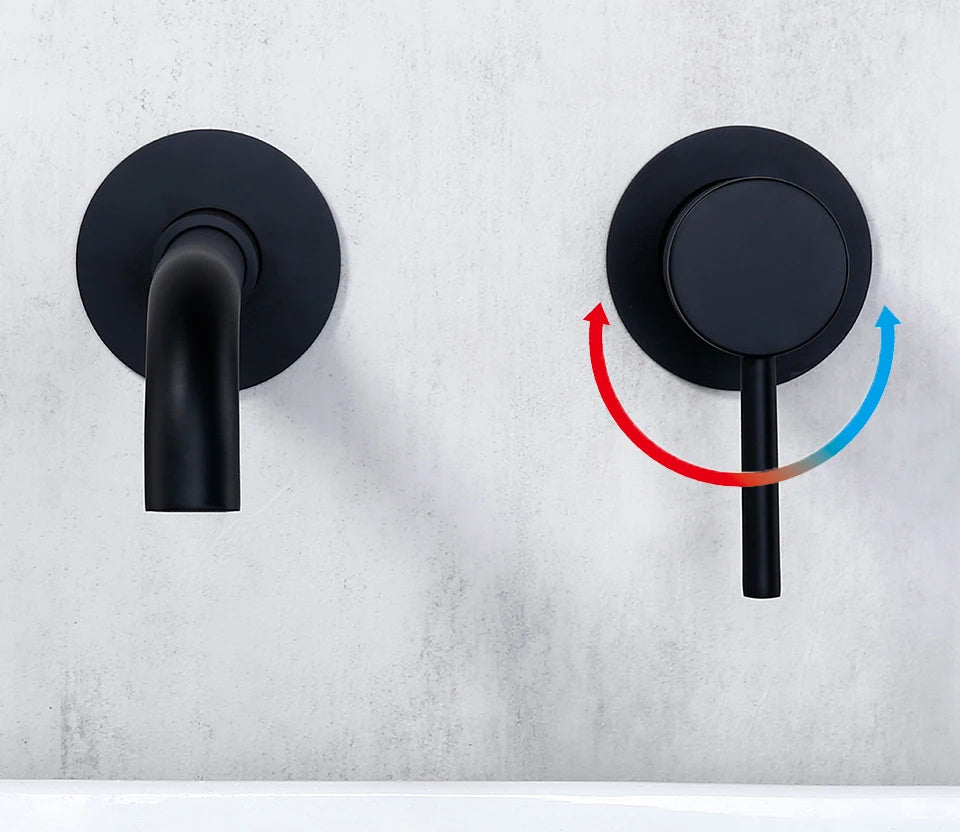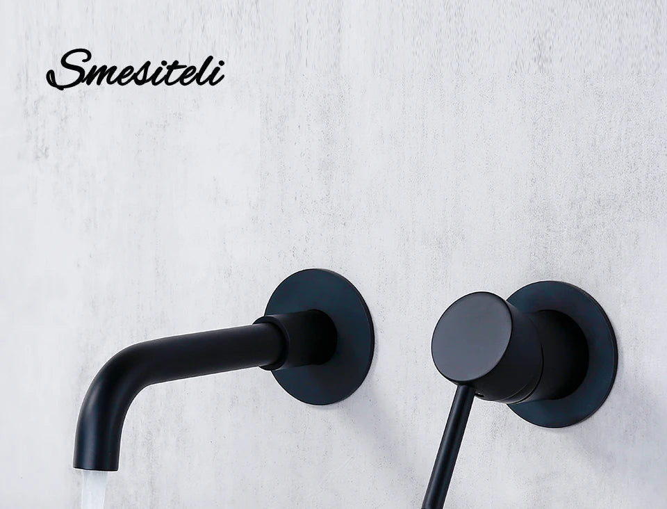 Wastafelkraan Badkamermengkraan Wandmontage Messing Mat Zwart Met Enkele Handgreep Warm Koud Water Wit Ro...