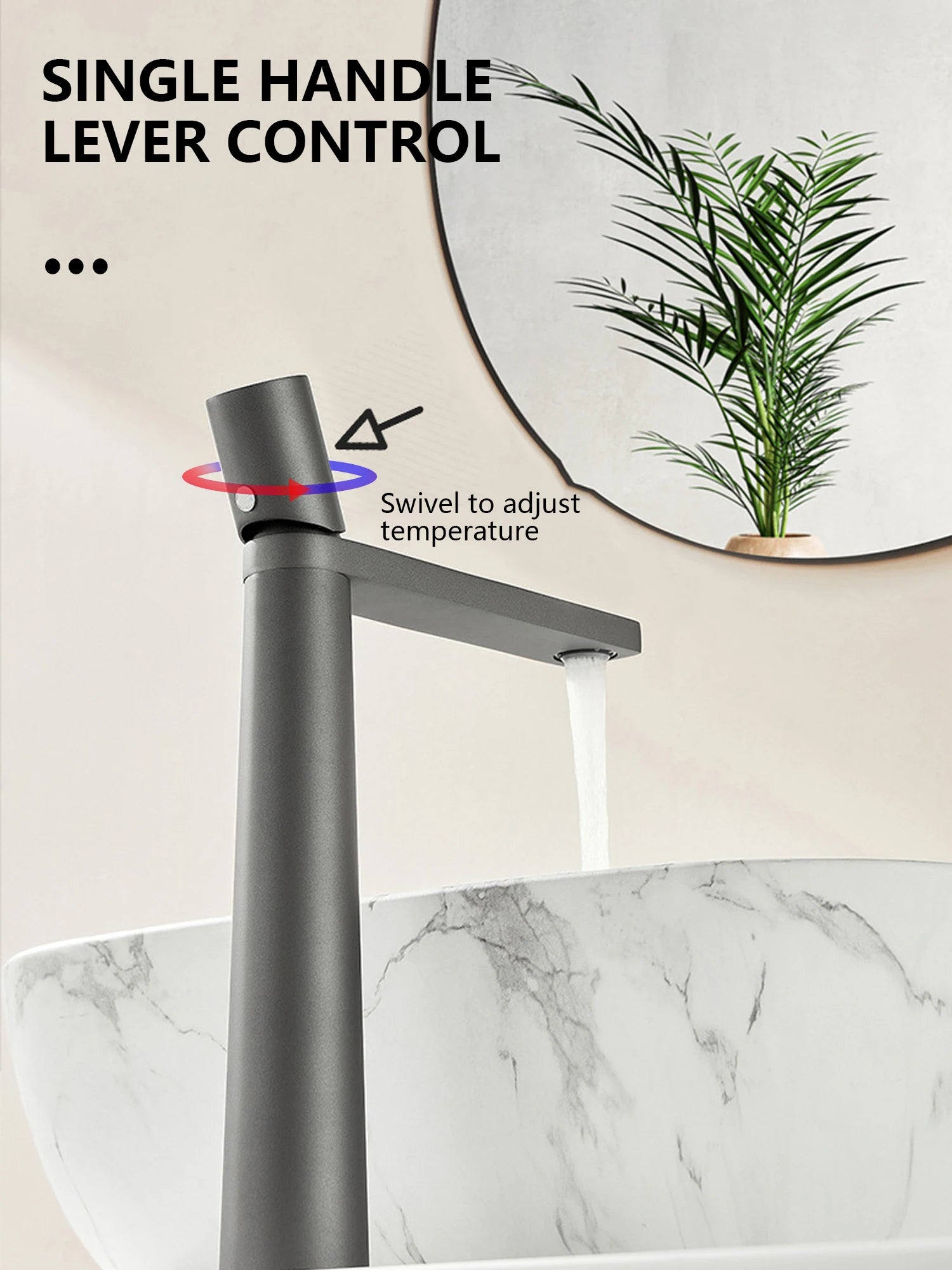 Badkamer wastafelkraan met één gat, hoge wastafel, wastafelmengkraan, commerciële moderne commerciële waskom