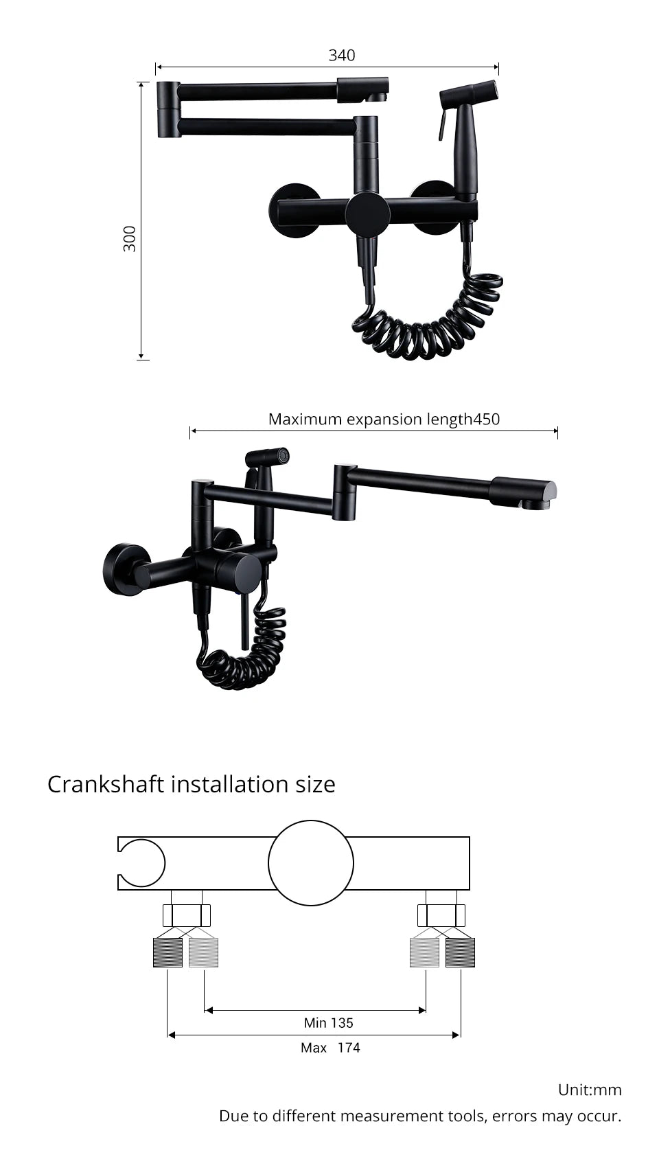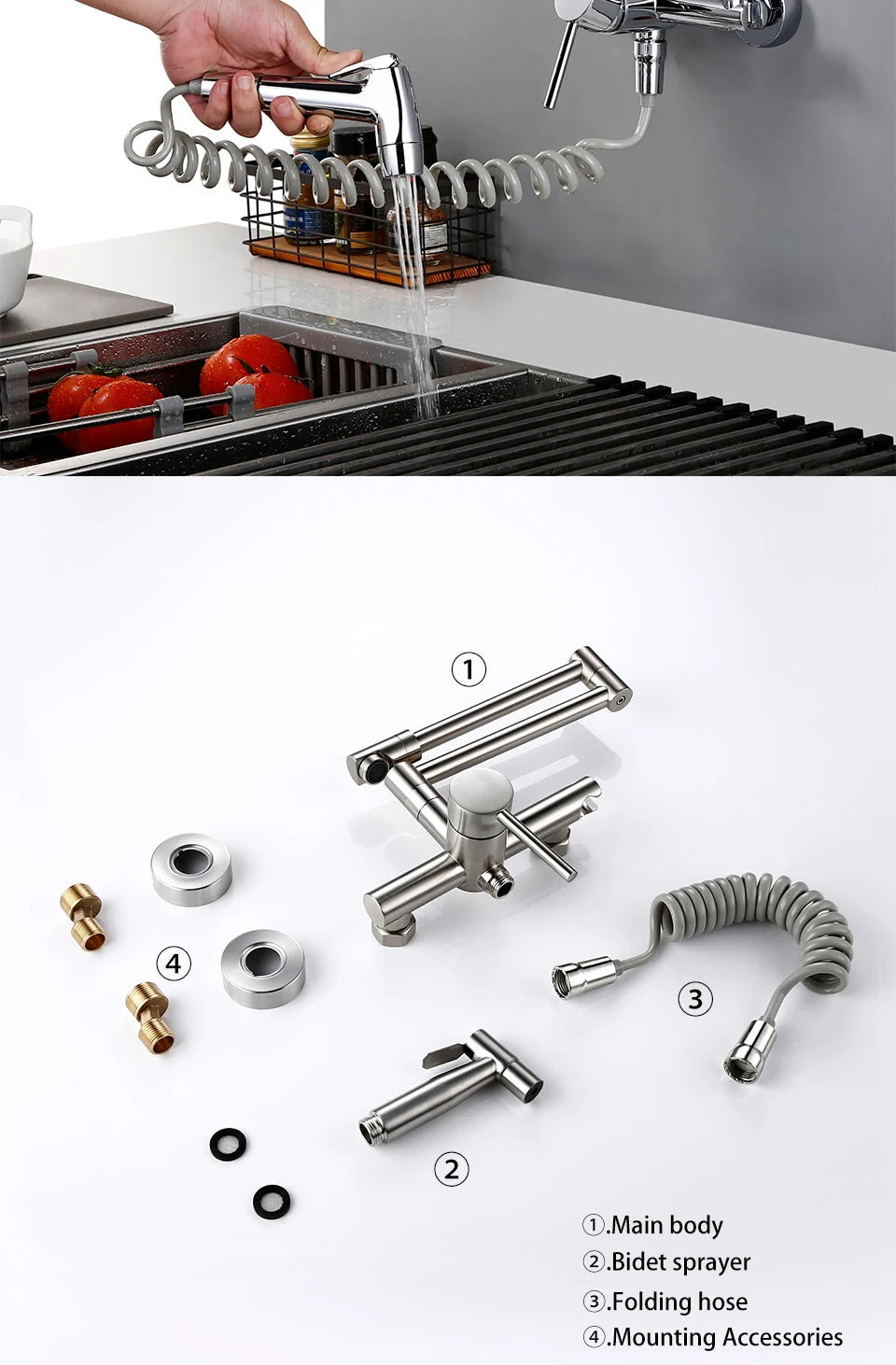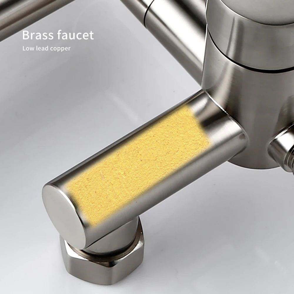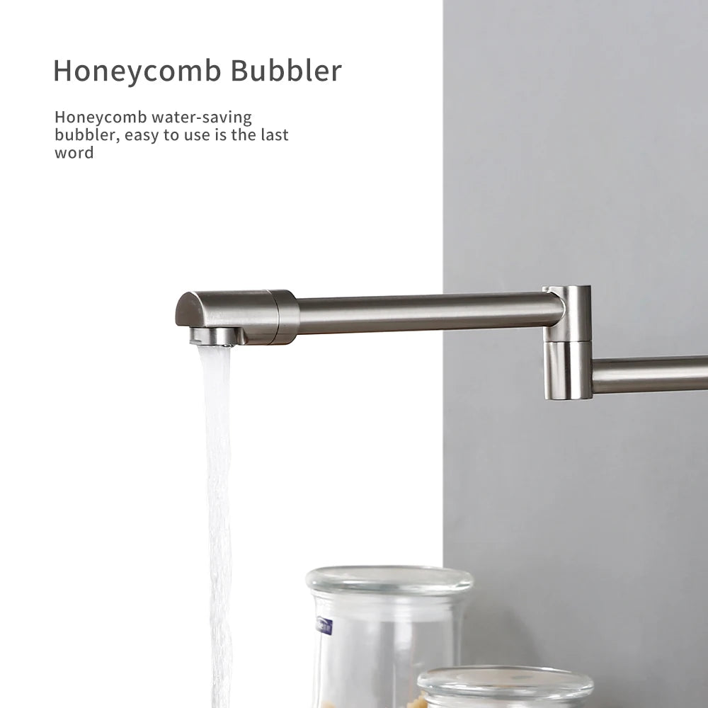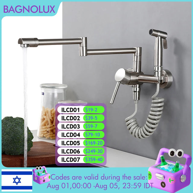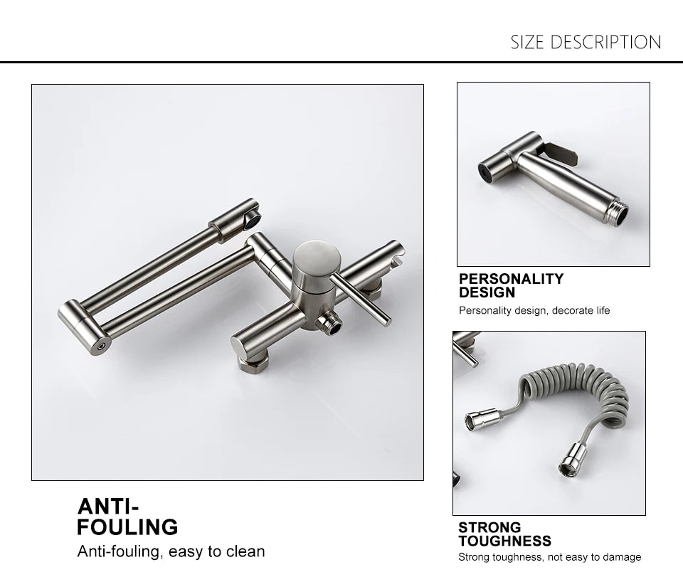 Keukenmengkraan met sproeier, warme en koude straal, wandmontage, potvuller, uittrekbare tweegatskraan, g...
