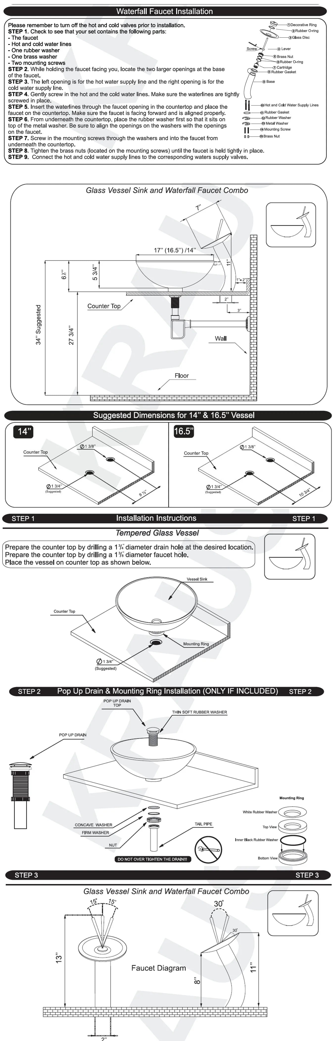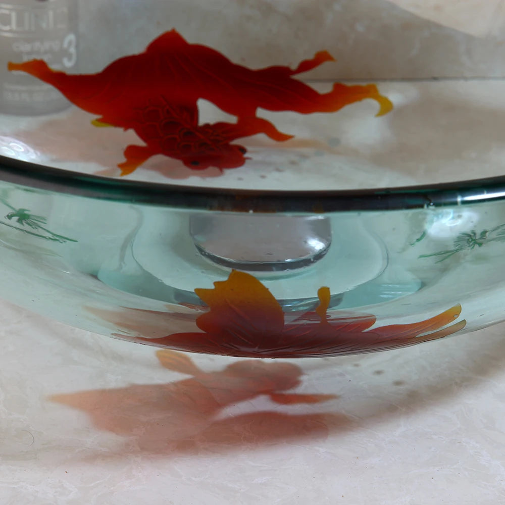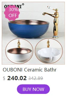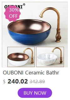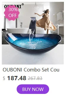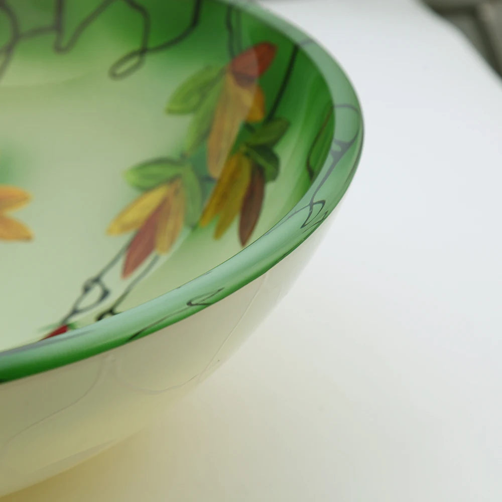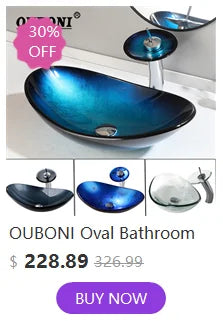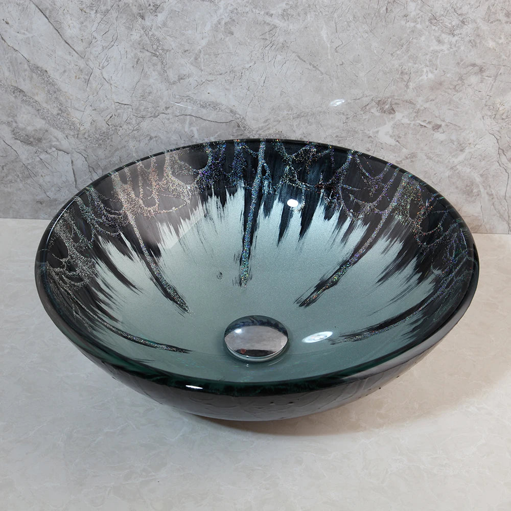 OUBONI Gehard glazen badkamer wastafelkraanset, handbeschilderde ronde kunstwastafel met warm-koudmengkra...