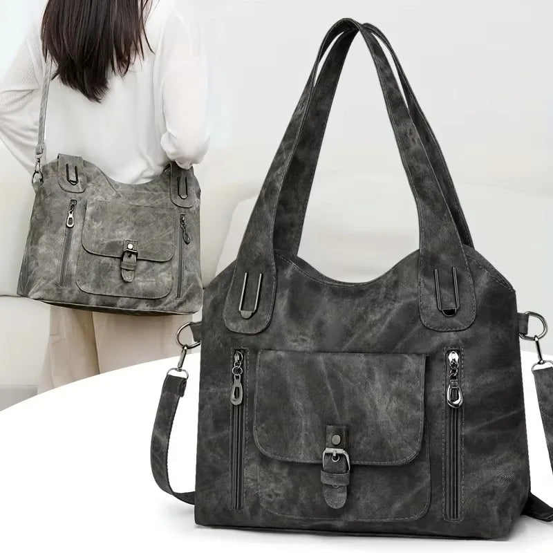 Retro schoudertas voor dames van zacht synthetisch leer met meerdere vakken v...
