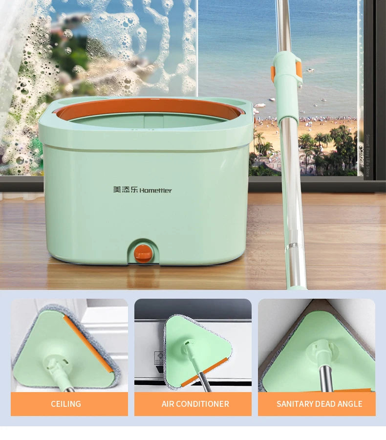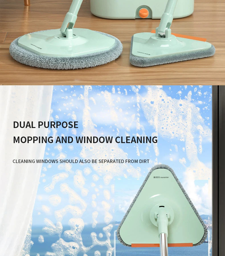 Microvezel dweil met centrifuge emmer set Automatische waterafscheiding Vloerreinigingsdweilen Roterende driehoekige dweil 360 Raamwisser Gereedschap