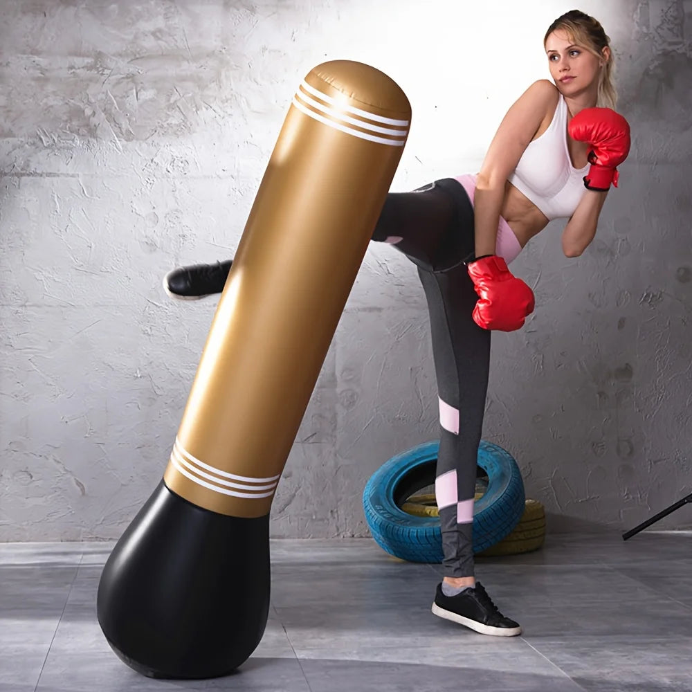 1 stuk gestreepte opblaasbare PVC bokszak voor karate en taekwondo trainingsporten