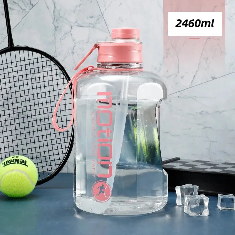 2 liter sportwaterfles met rietje, grote capaciteit, fitness met schaalverdeling, waterkoker, draagbare w...