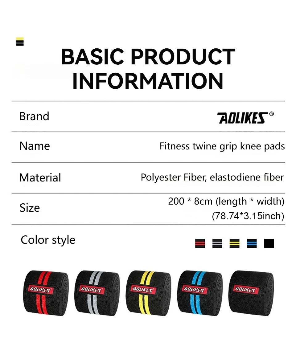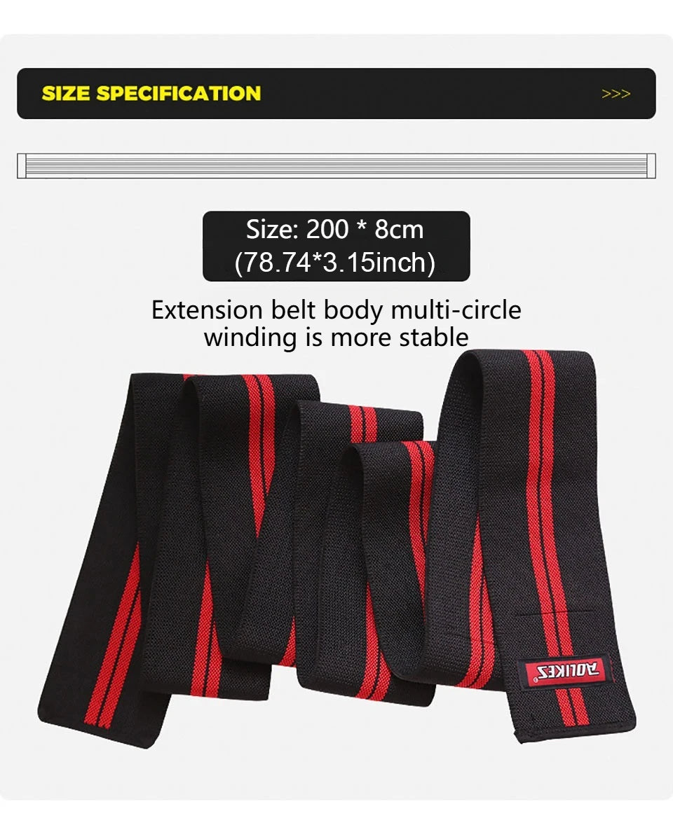 AOLIKES 1 STUKS Kniebandages voor Gewichtheffen - 78,7" Elastische Kniebanden voor Squats en Gewichtheffen - Kniebandages voor het tillen in de sportschool