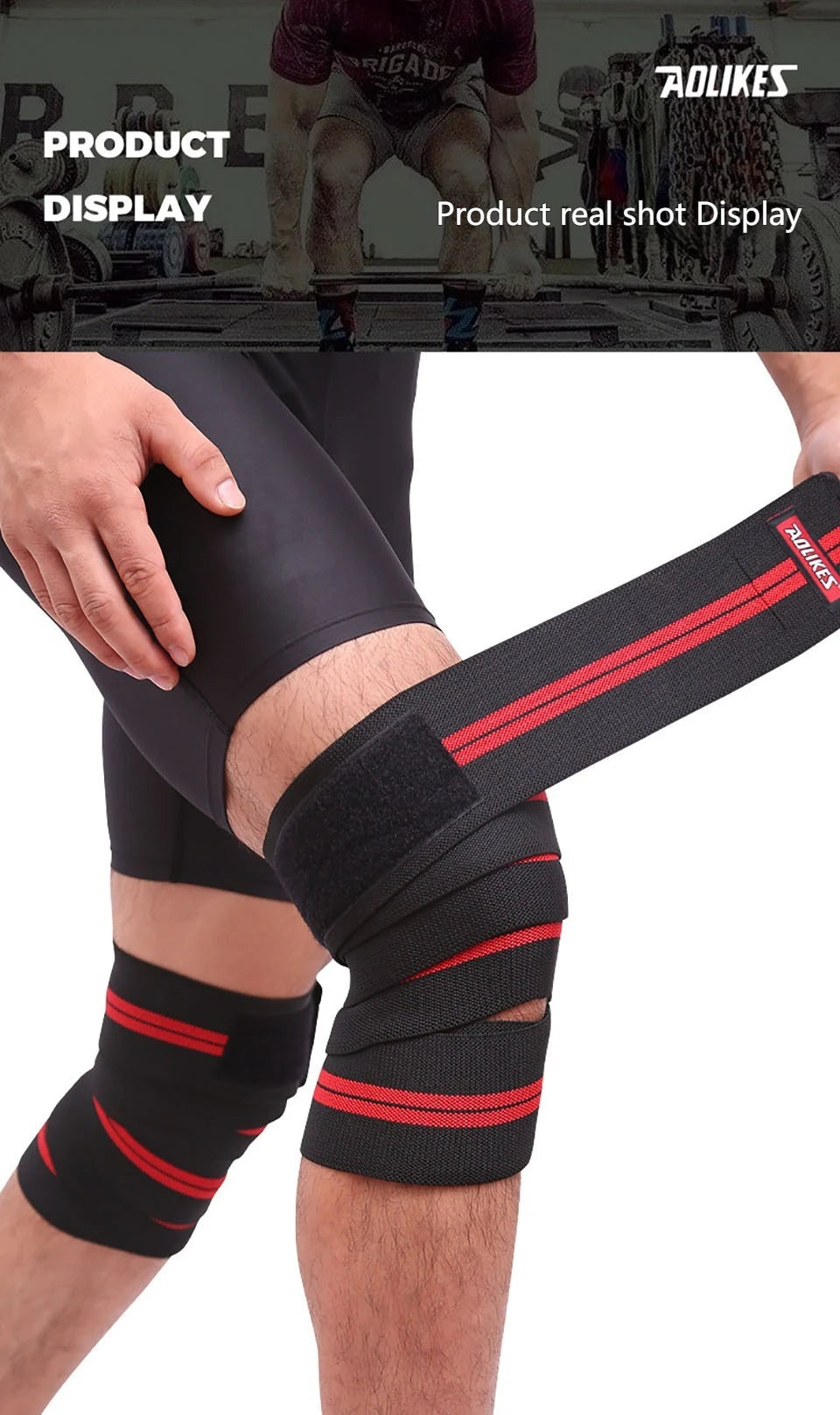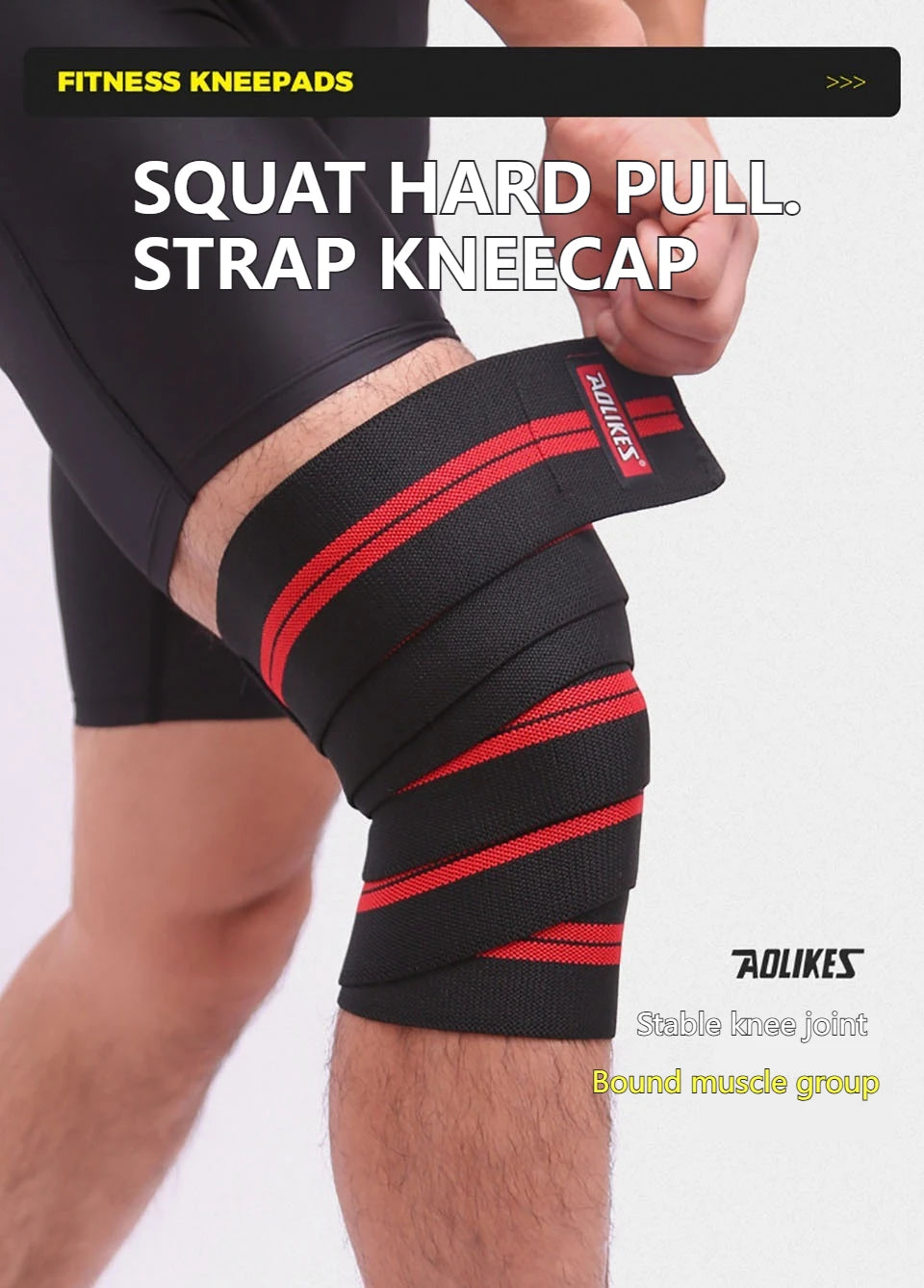 AOLIKES 1 STUKS Kniebandages voor gewichtheffen - 78,7" Elastische kniebanden voor squats en gewichtheffen - Kniebandages voor krachttraining en compressiebandage - Knieondersteuning voor squats, powerlifting, sportschool