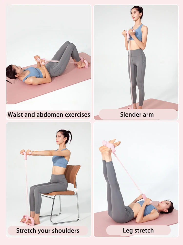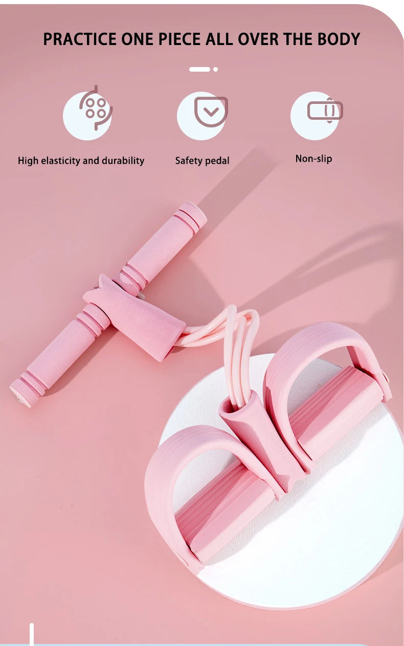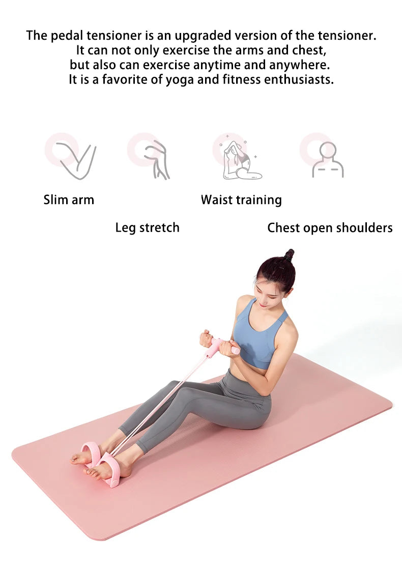 Multifunctioneel spankoord met 6 buizen, elastisch yogapedaal, weerstandsband en spankoord voor beenstrek...
