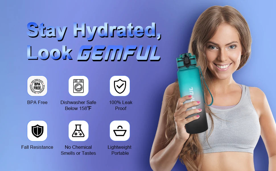 Sportwaterfles met shakerbal 1000 ml BPA-vrije Tritan-poedermengbeker Draagbaar lekvrij voor fitnesstrain...