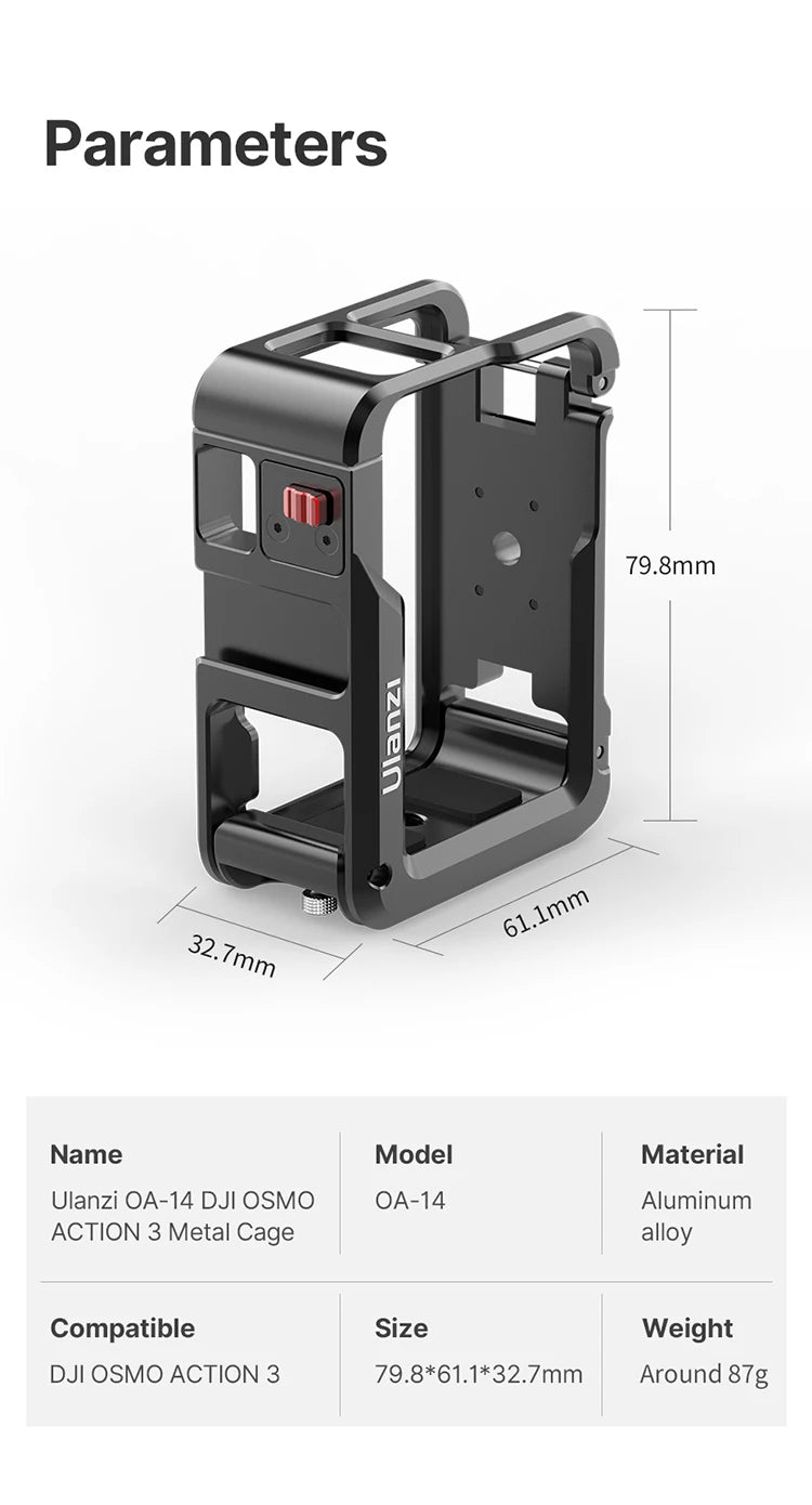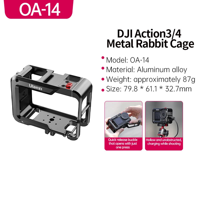 Ulanzi OA-14 Aluminium Kooi voor DJI Osmo Action 3 Action Camera Beschermend Frame Mount Case Sport Camera Rabbit Kooi Accessoires