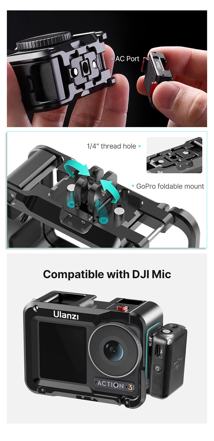 Ulanzi OA-14 Aluminium Kooi voor DJI Osmo Action 3 Action Camera Beschermend Frame Mount Case Sport Camer...