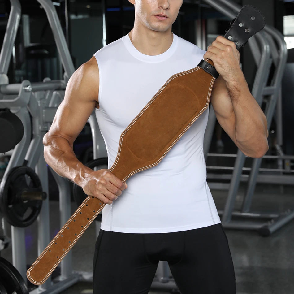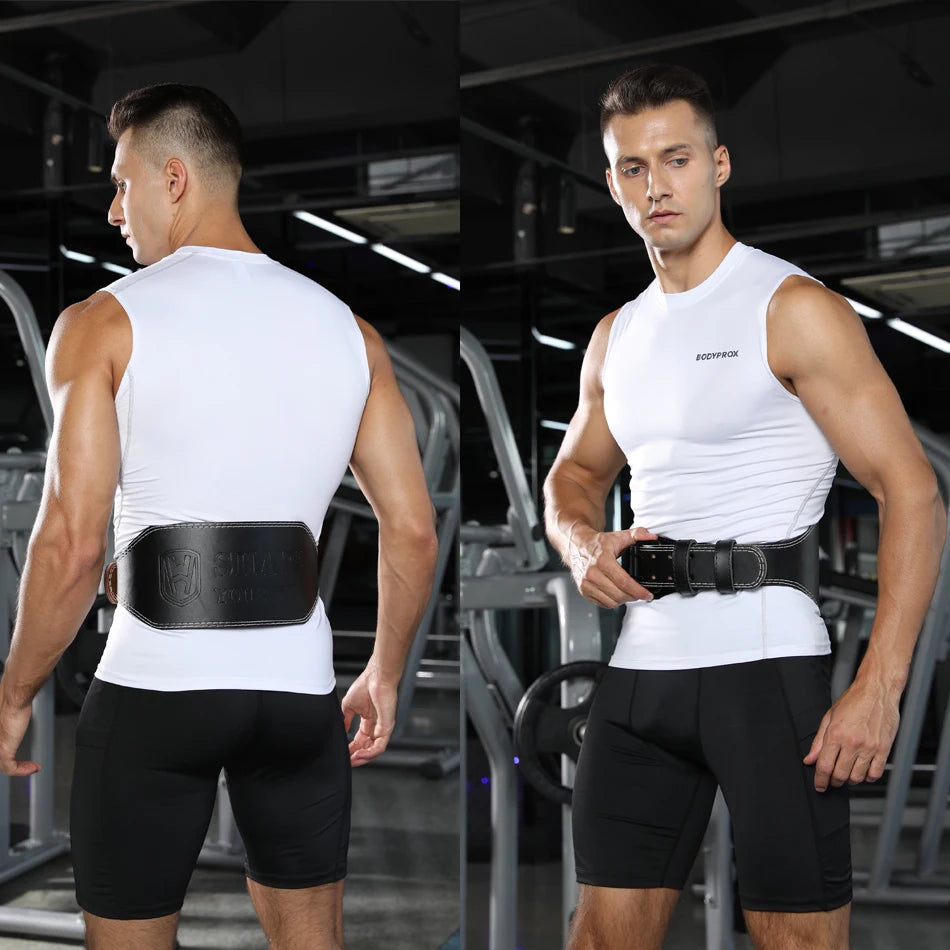 WOSWEIR - Heren gym gewichthefgordel van runderleer, lendensteun, tailletrainer voor krachttraining