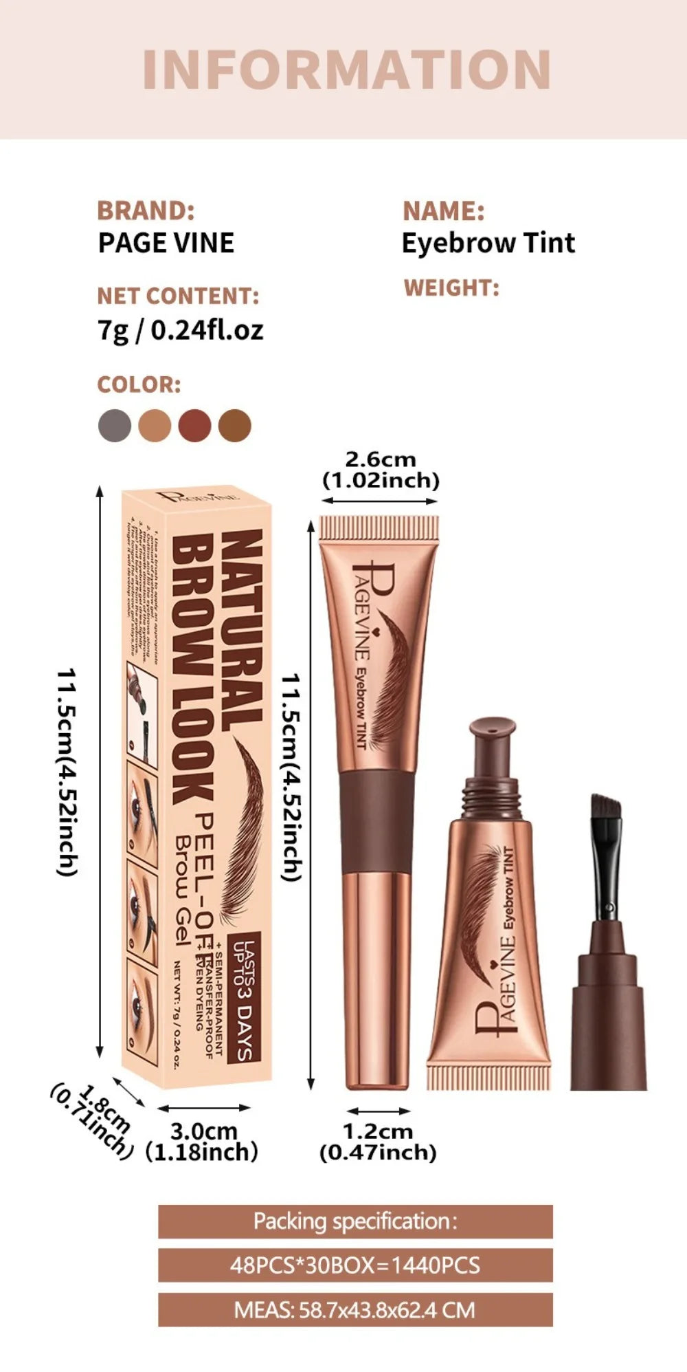4 kleuren peel-off wenkbrauwgel, waterdicht, langdurig, semi-permanent, natuurlijk bruin, vloeibare wenkb...