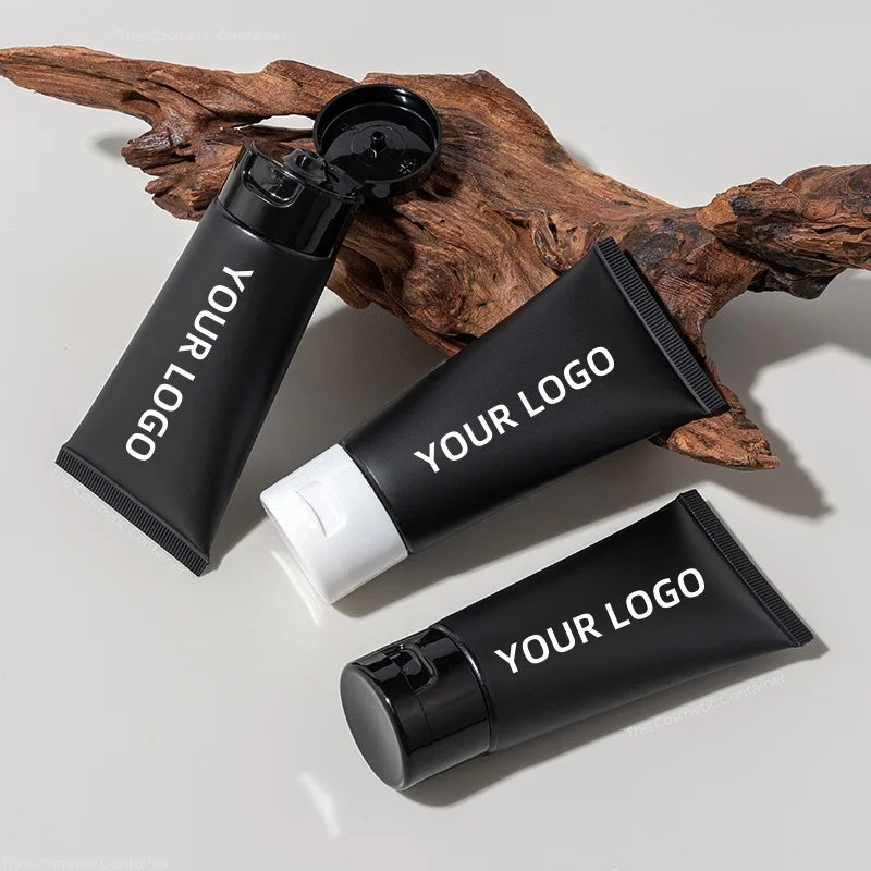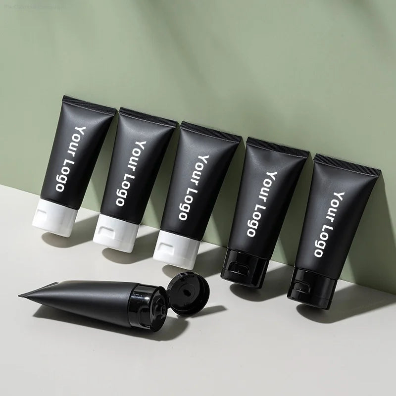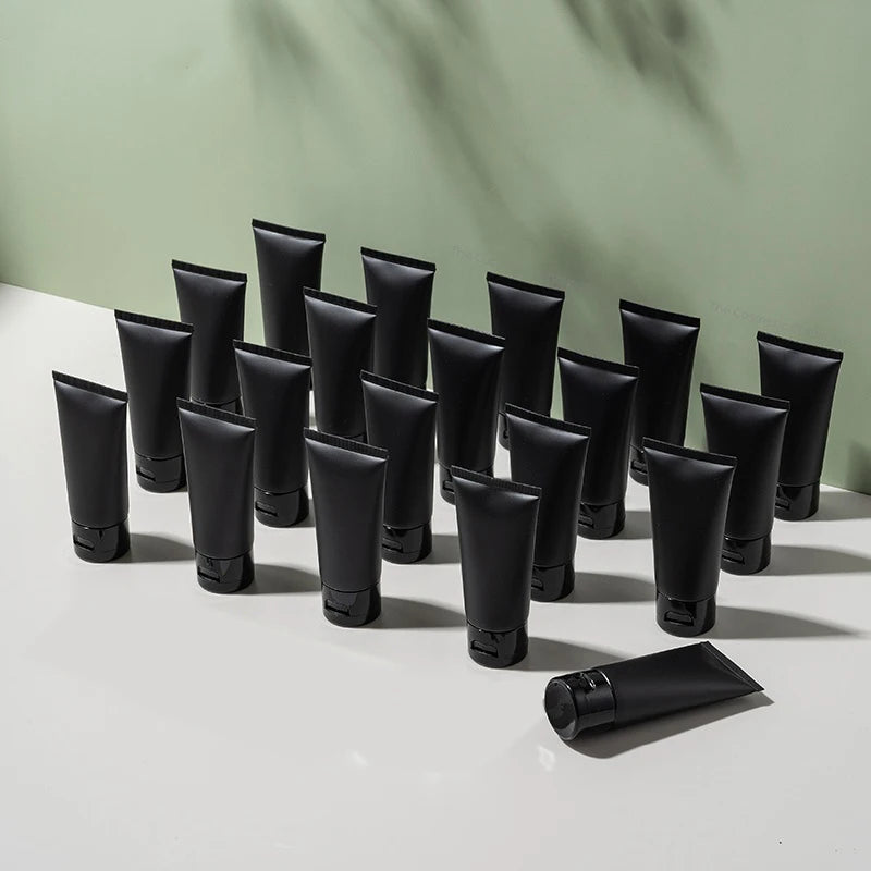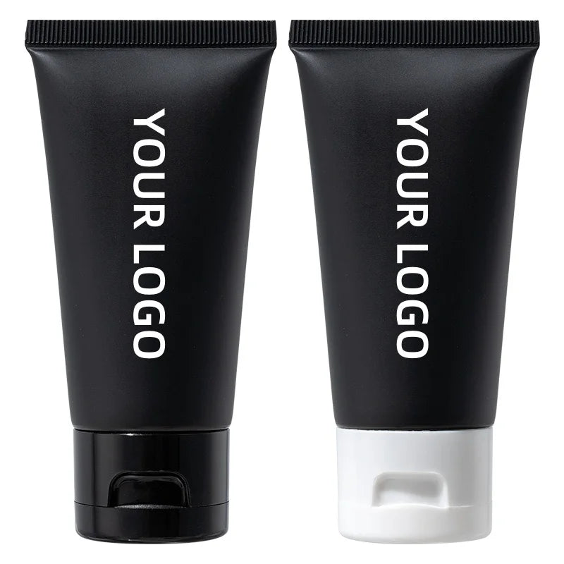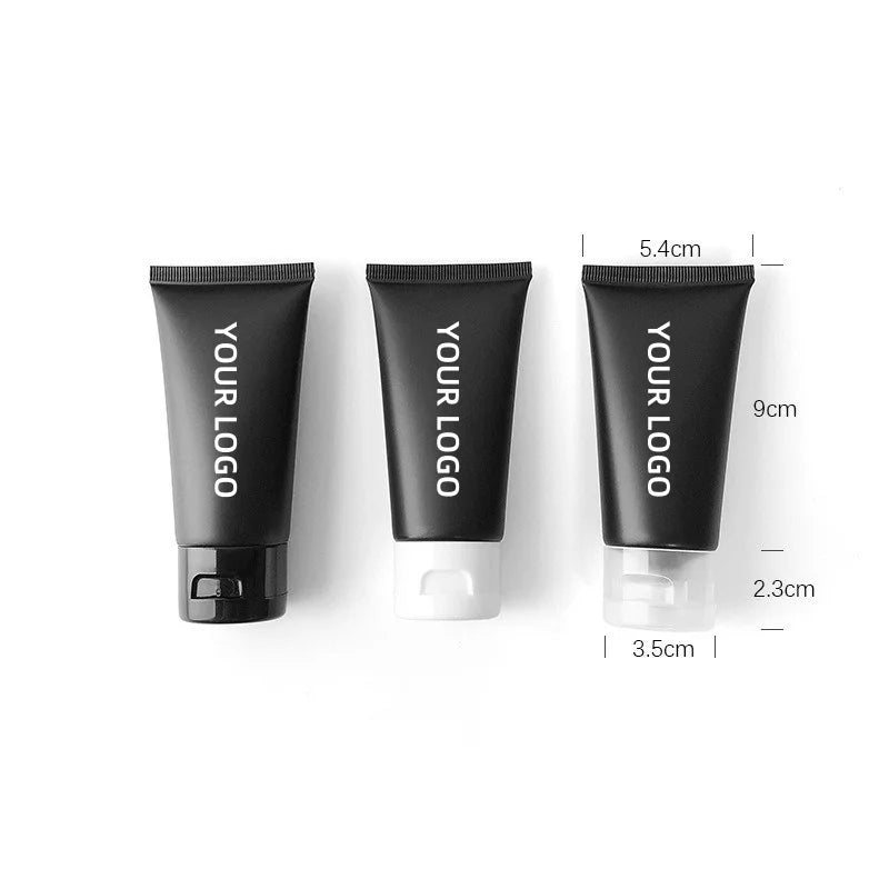 【Logo-aanpassing】50 stuks 50 ml matzwarte plastic knijpflessen lege cosmeticacontainer crème lotion verpakking groothandel
