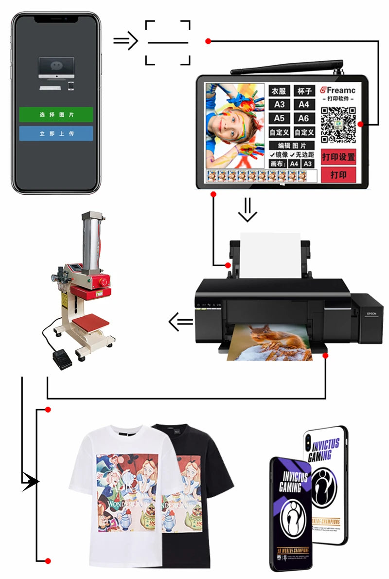 Automatische continue werk pneumatische sublimatie label printmachine, DIY telefoonhoesje, kussen, 800W, ...
