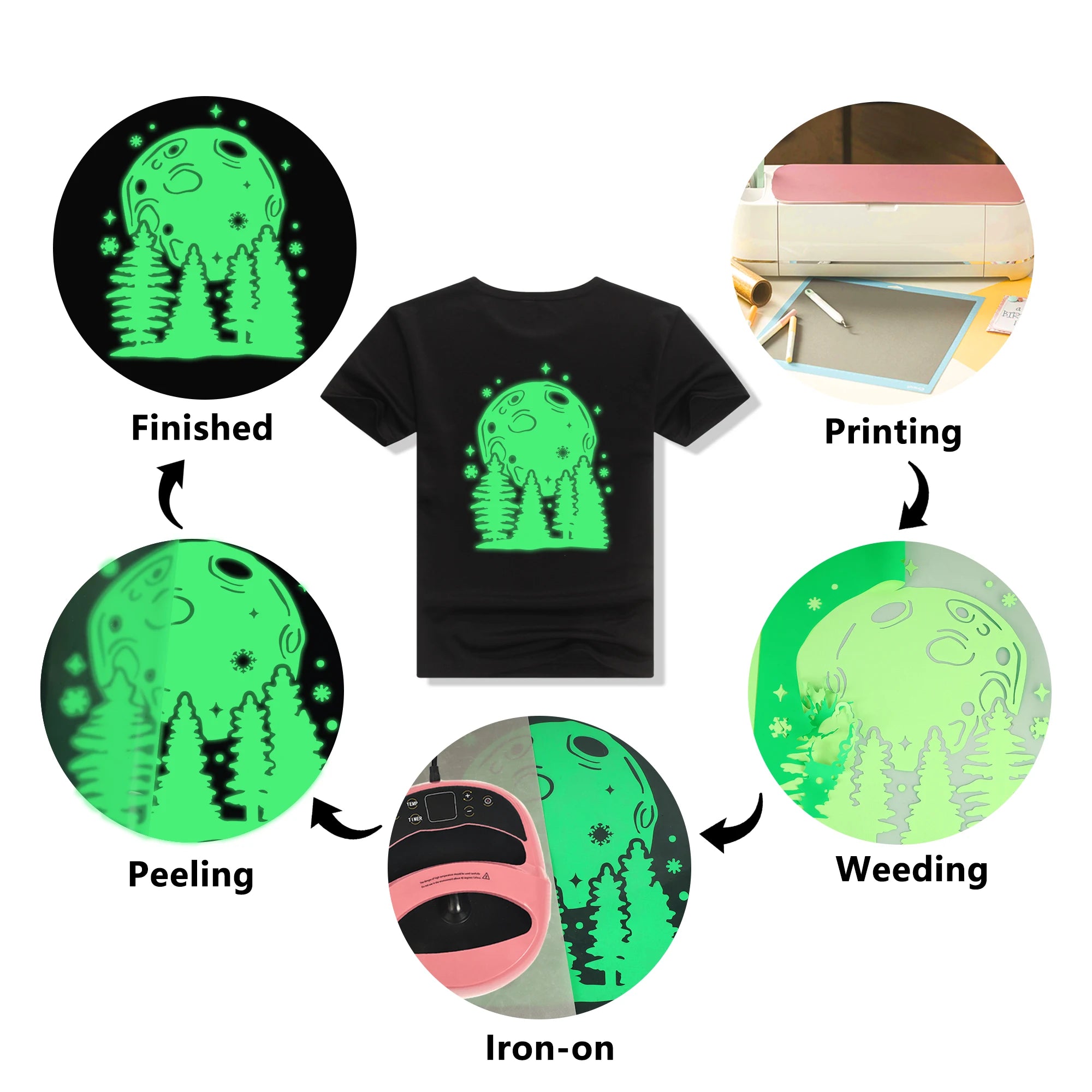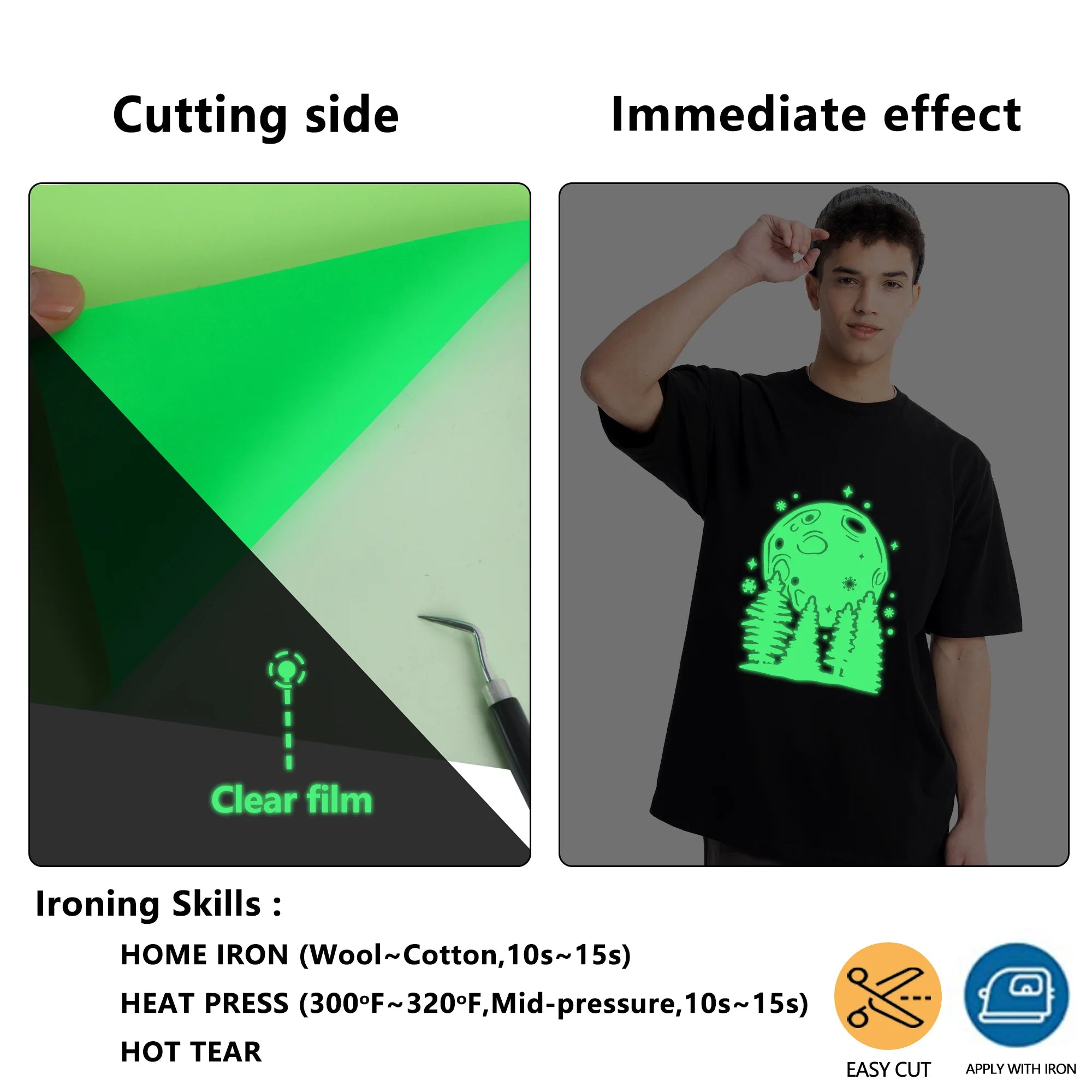 Glow in the Dark HTV, warmteoverdrachtsvinyl voor T-shirts, PU-elastisch vinyl, strijkvinyl voor alle sni...