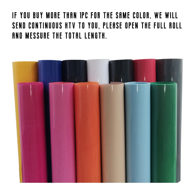 Als u meer dan 1 stuk vinyl van dezelfde kleur bestelt, sturen wij u doorlopend warmteoverdrachtsvinyl. Open de volledige rol en meet de totale lengte.