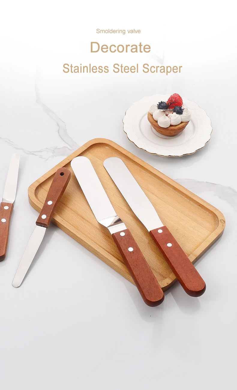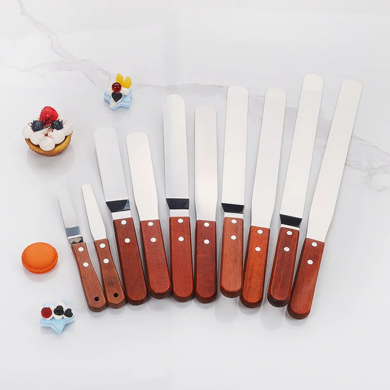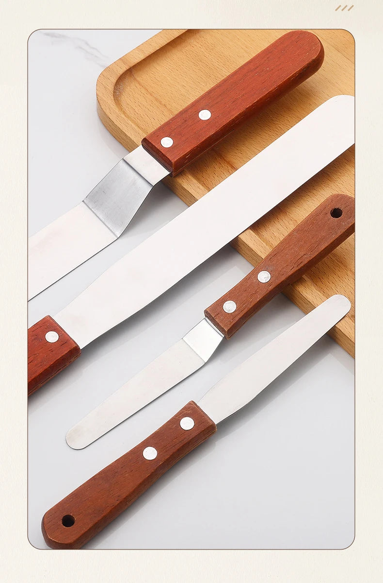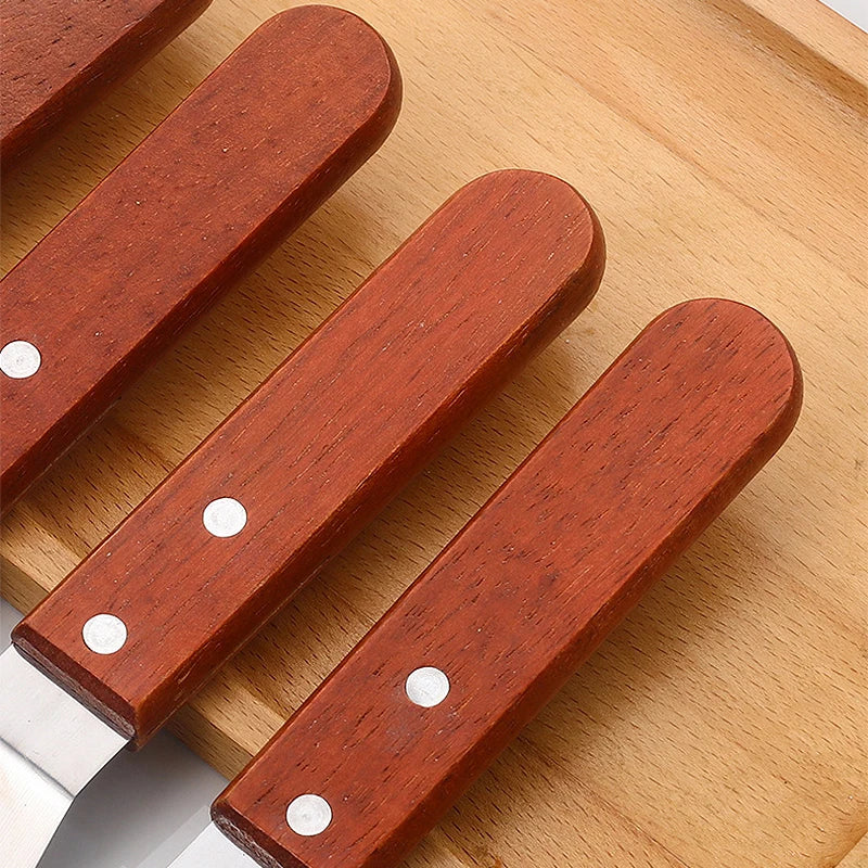 4/6/8/10/12Inch Roestvrij Staal Met Houten Handvat Taart Spatel Botercrème Glazuur Glazuur Keukenmes DIY ...