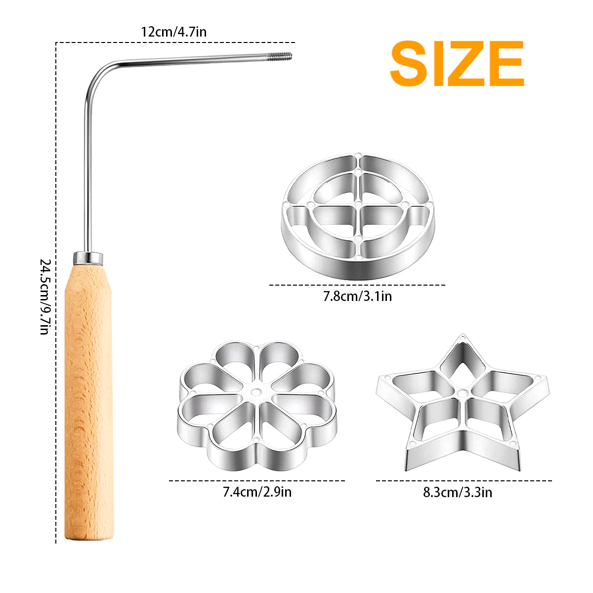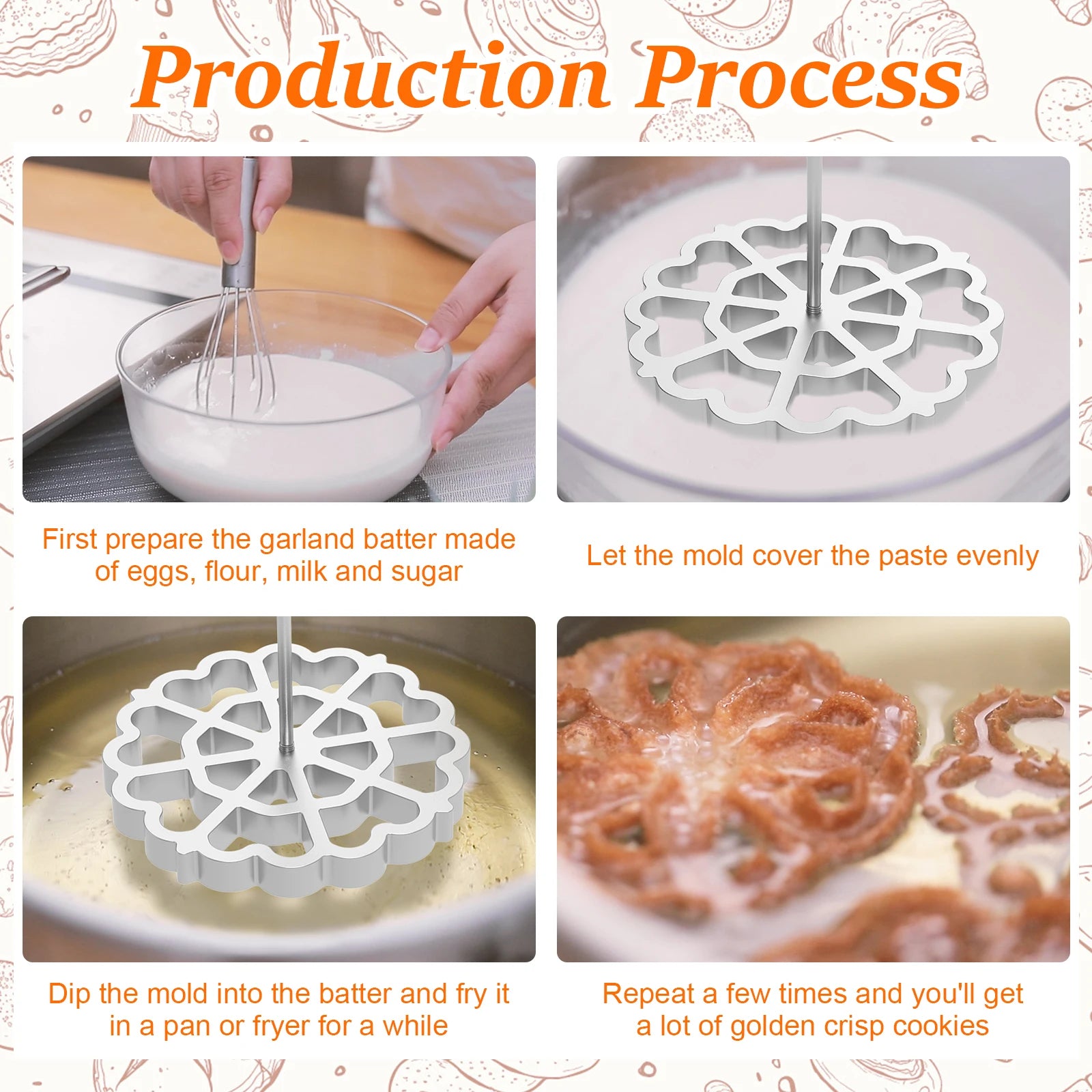 [Eenvoudig te gebruiken] Doop de vormpjes in het deeg, frituur het, haal het afgewerkte deeg uit de vormpjes en bestrooi met suiker (niet inbegrepen) om heerlijke knapperige koekjes te maken.