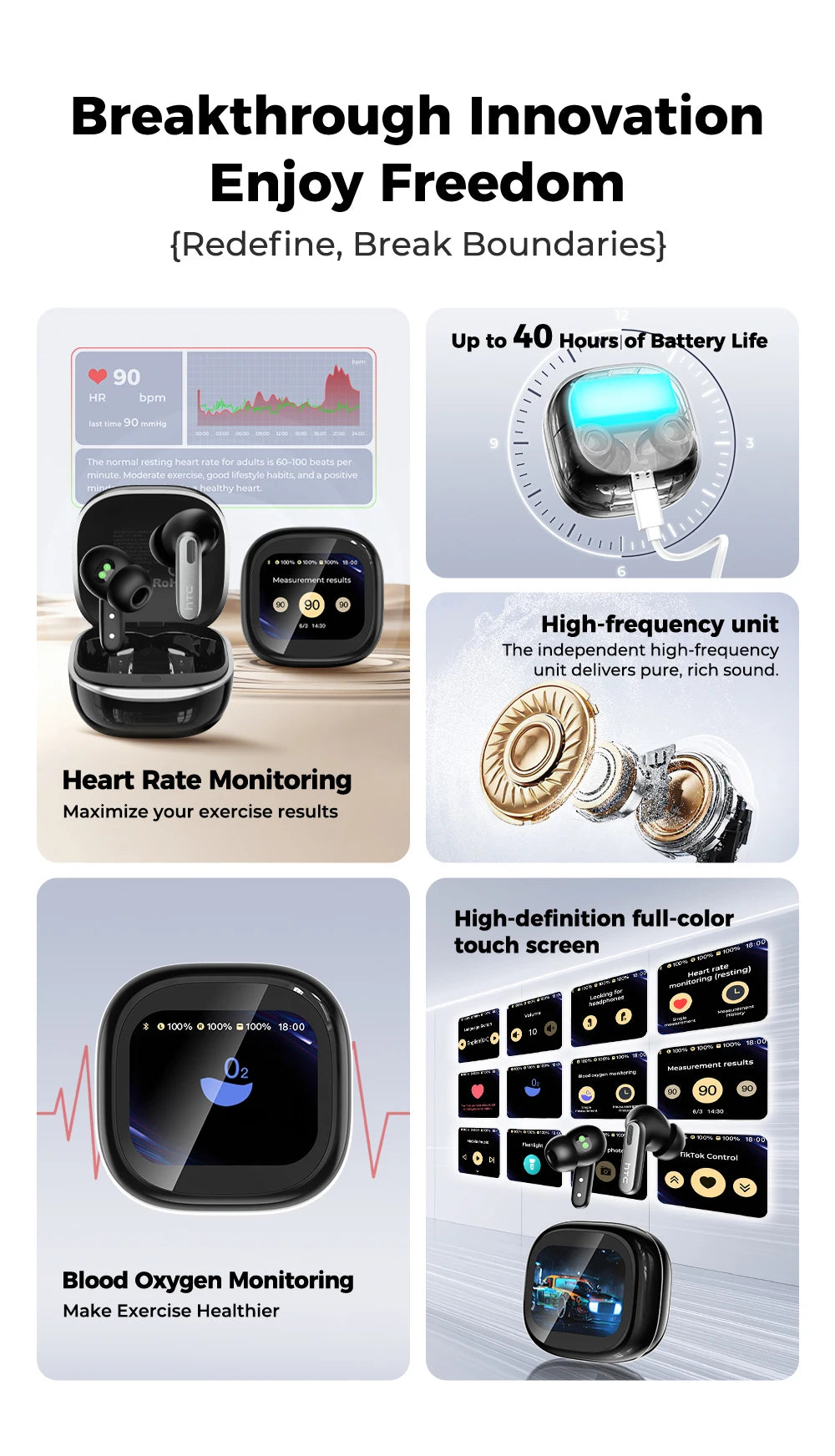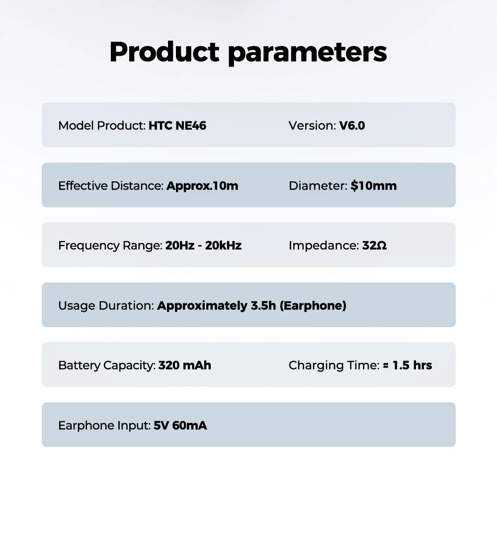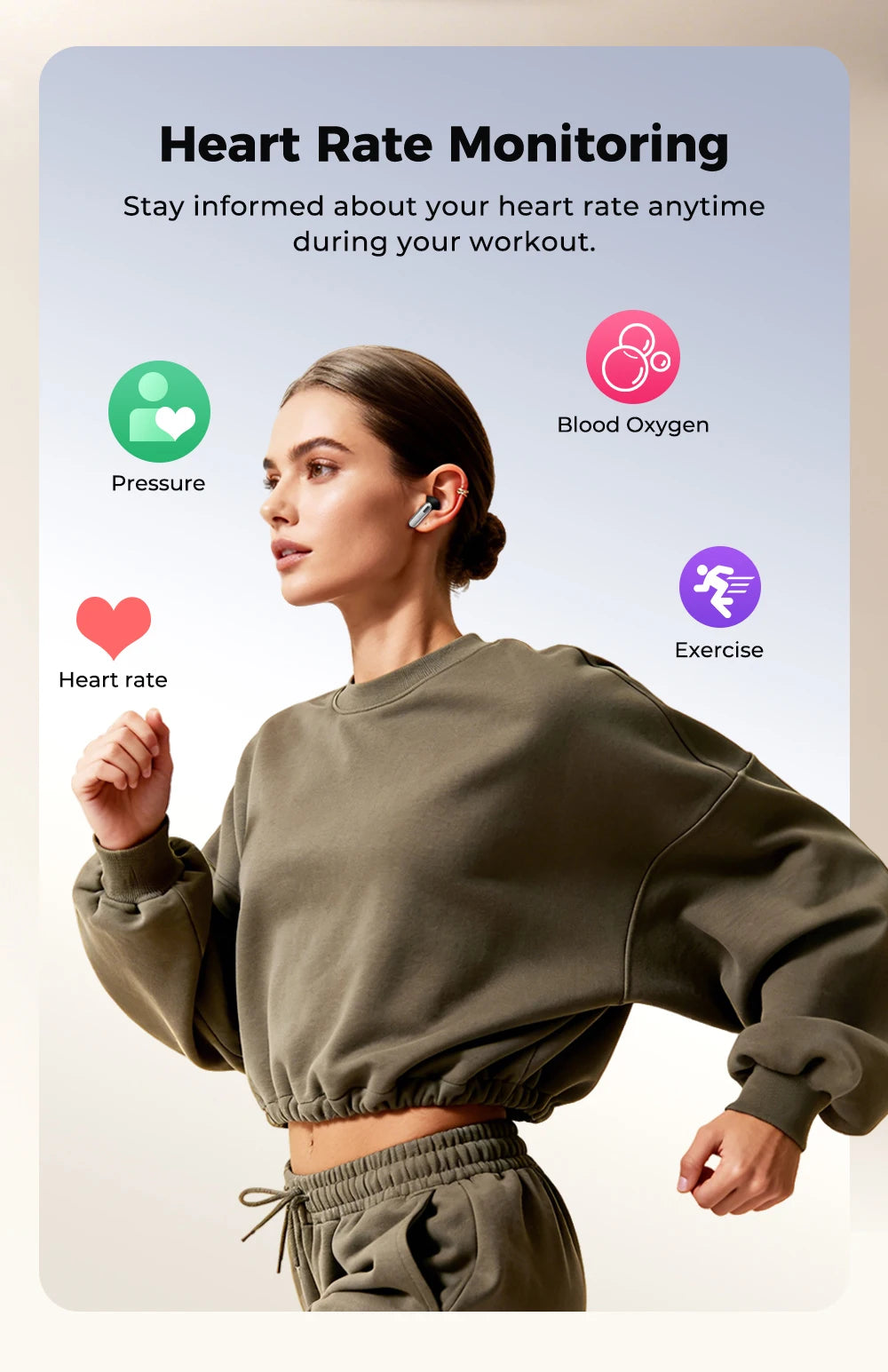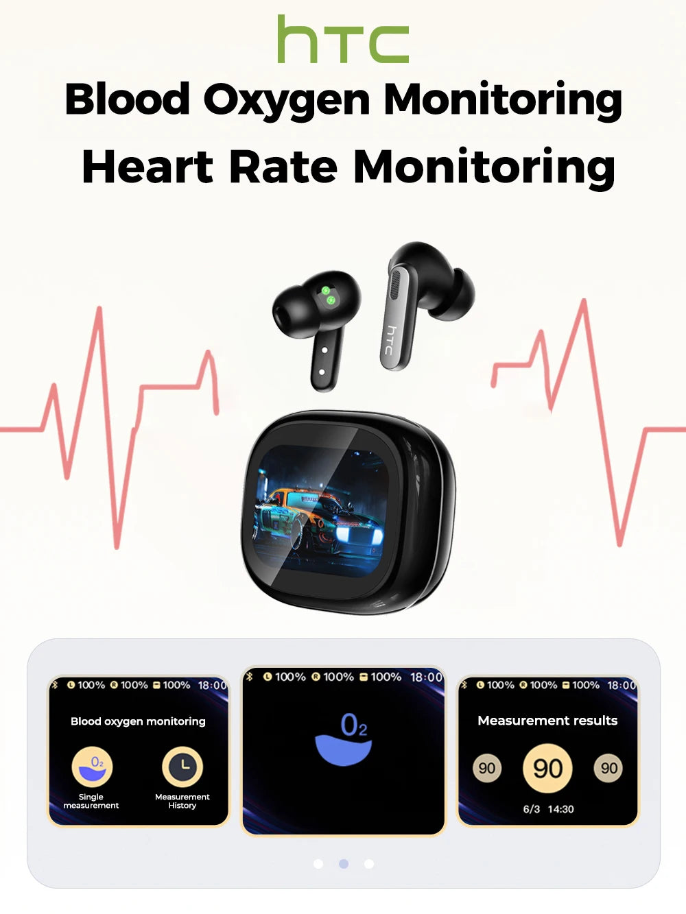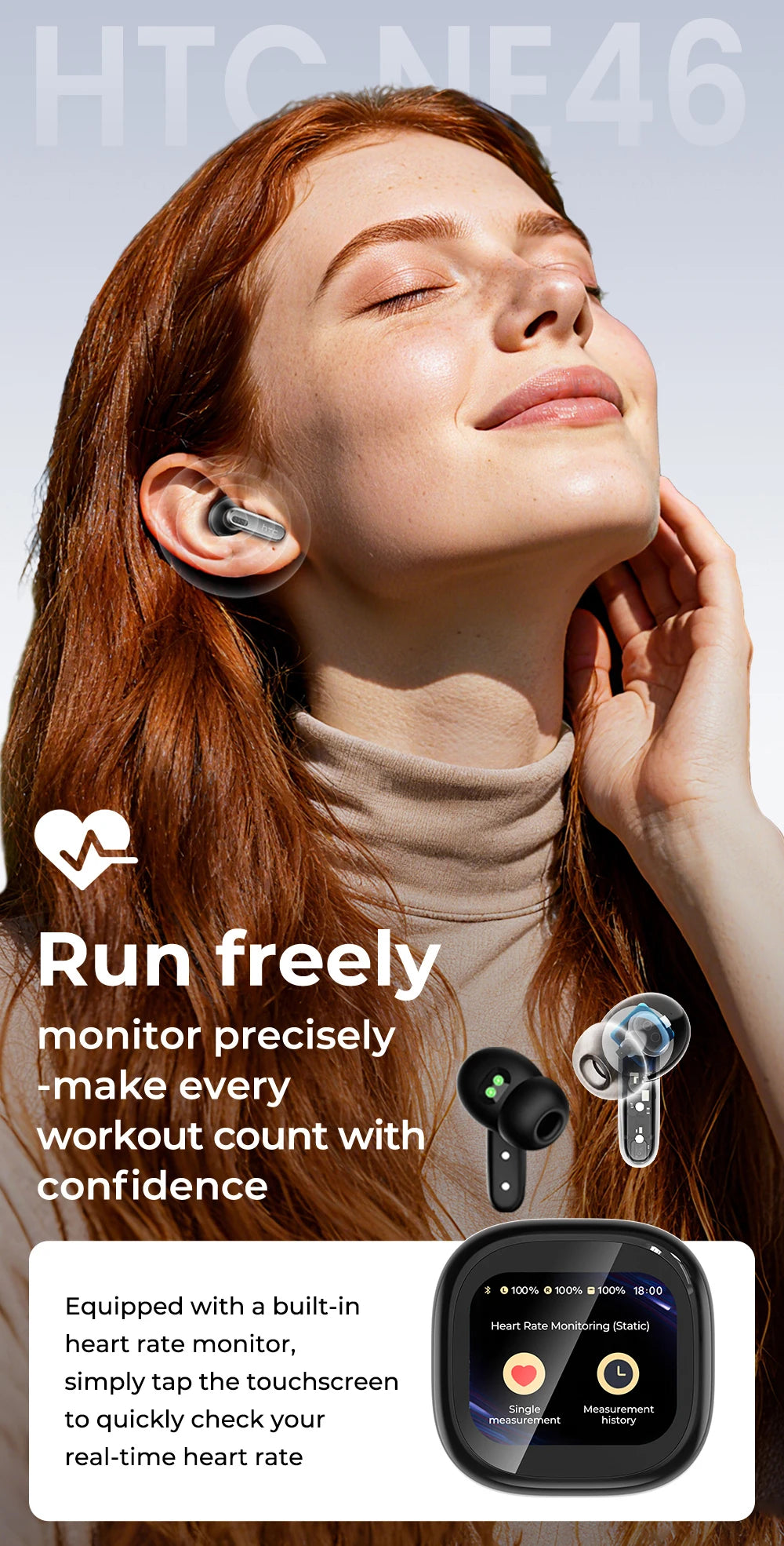 HTC Ne46 Sports draadloze Bluetooth-koptelefoon met hartslagmeter, LED-touchs...