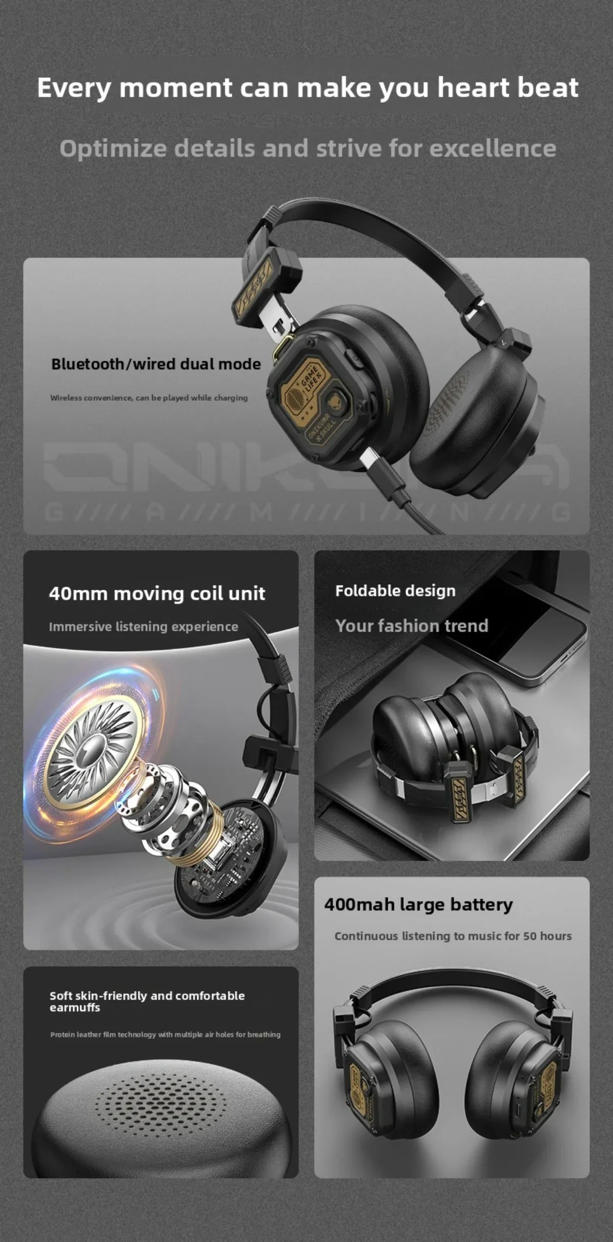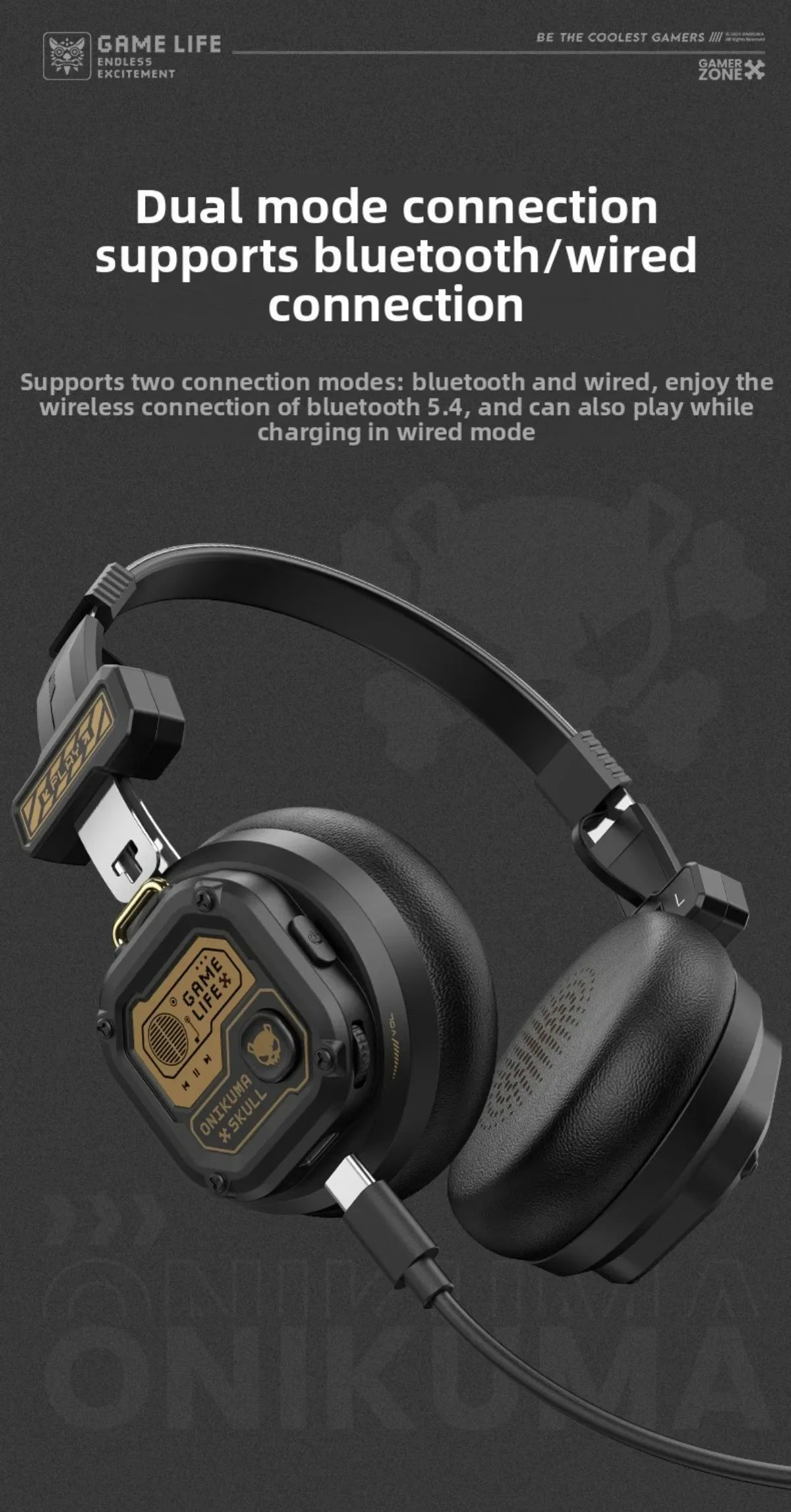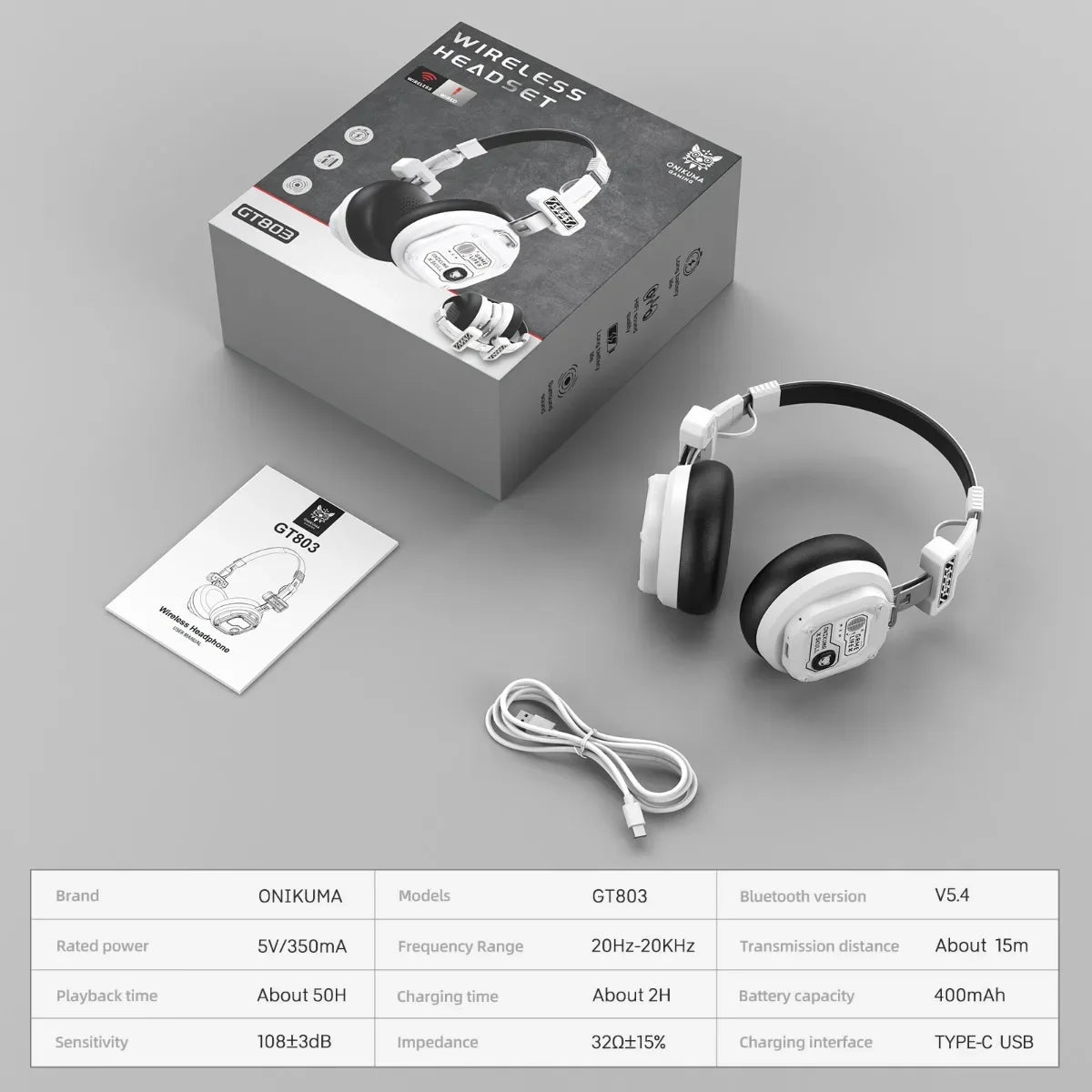 Onikuma draadloze gamingheadset met Bluetooth 5.4, batterijcapaciteit 400 mAh...